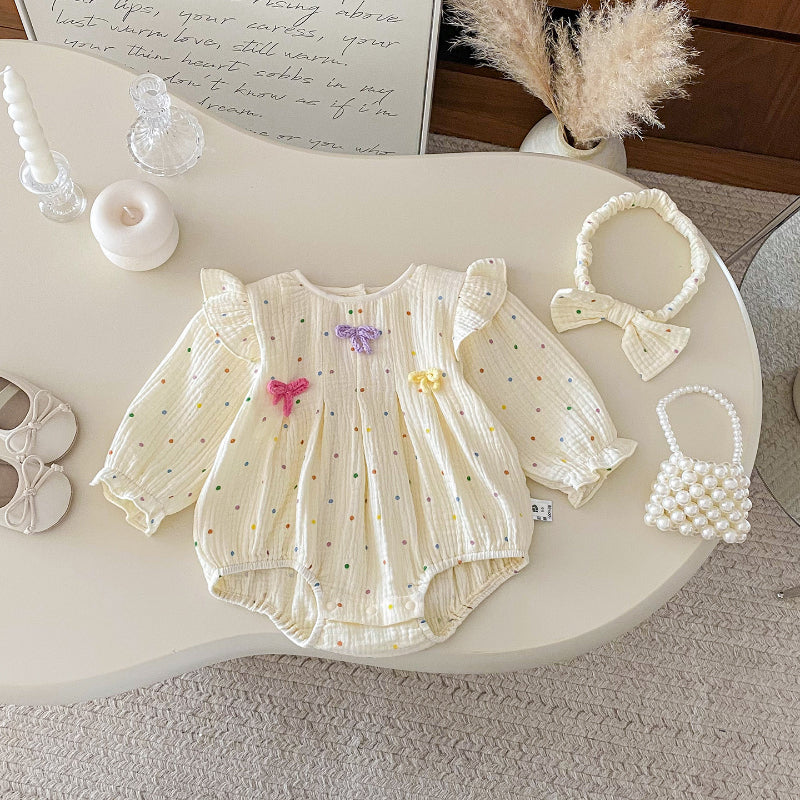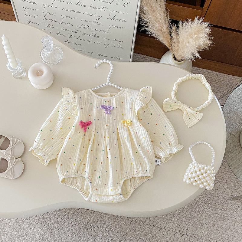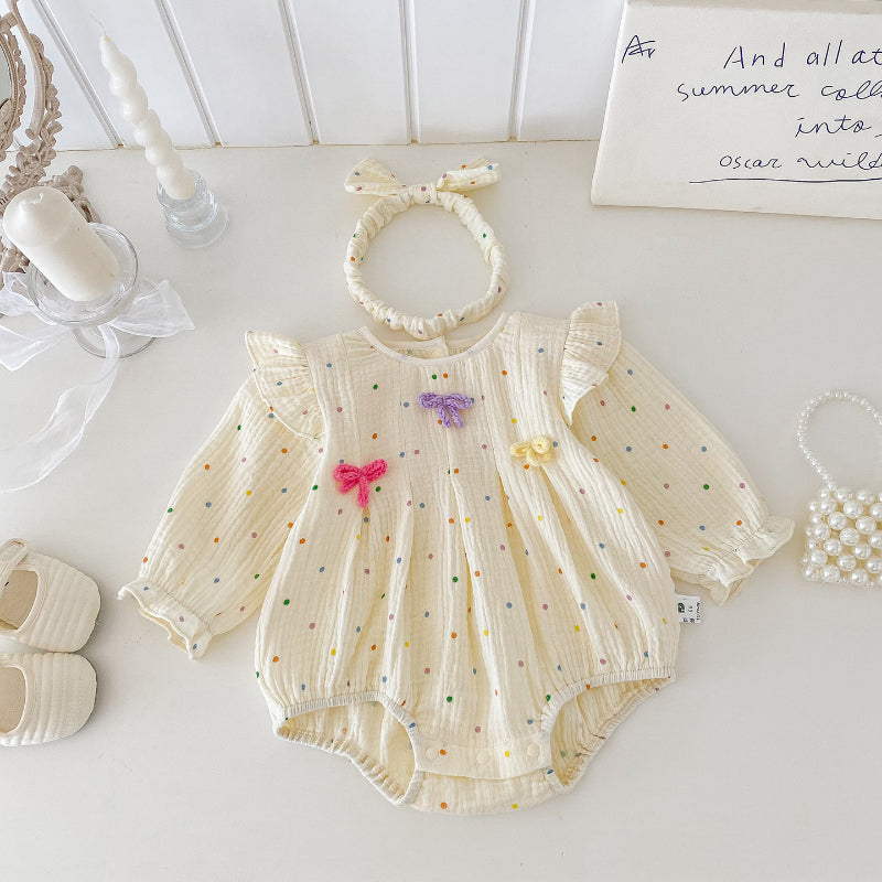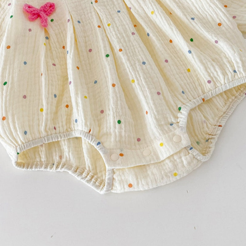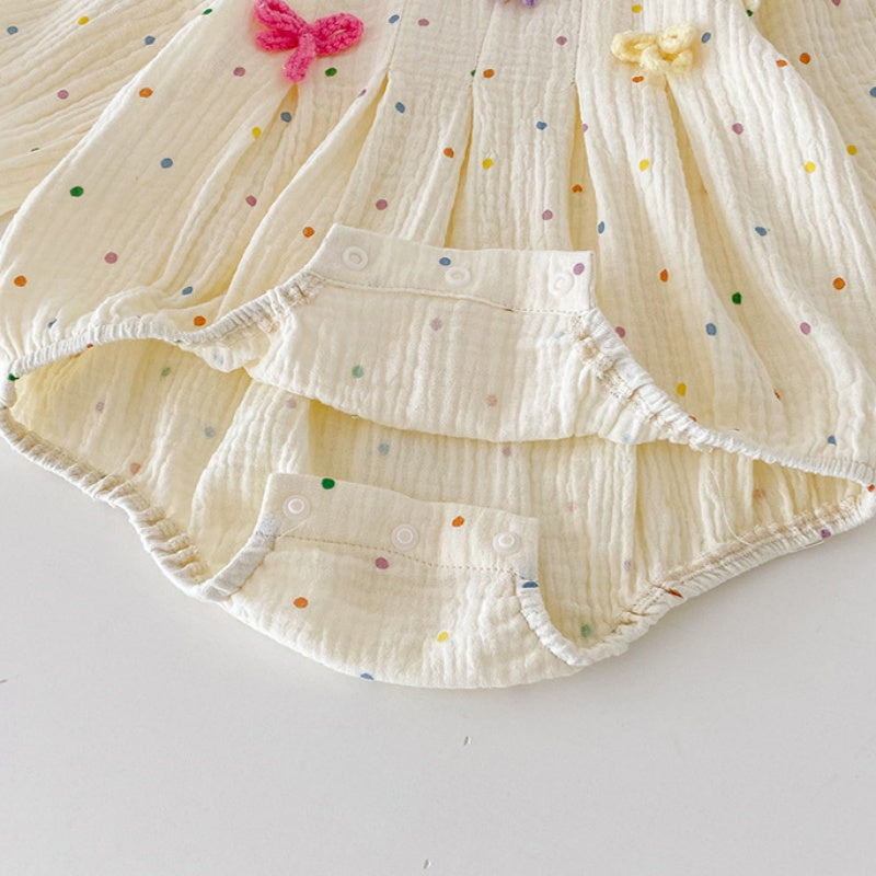 【BABY】ダブルガーゼ 蝶結びドットロンパースSK093001