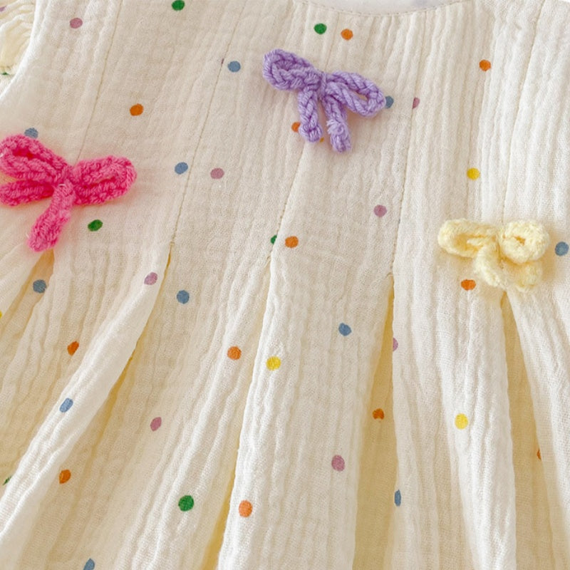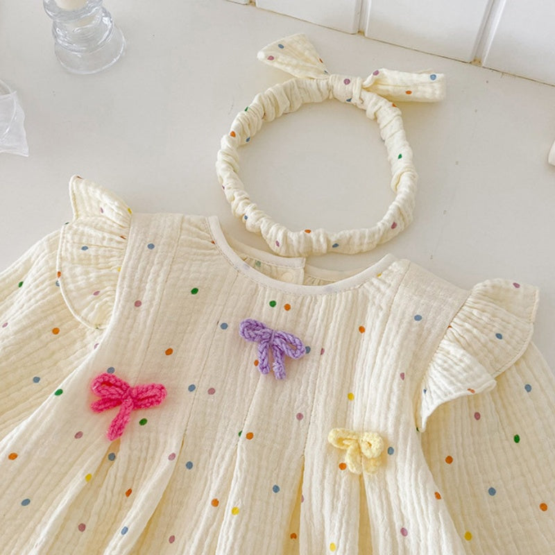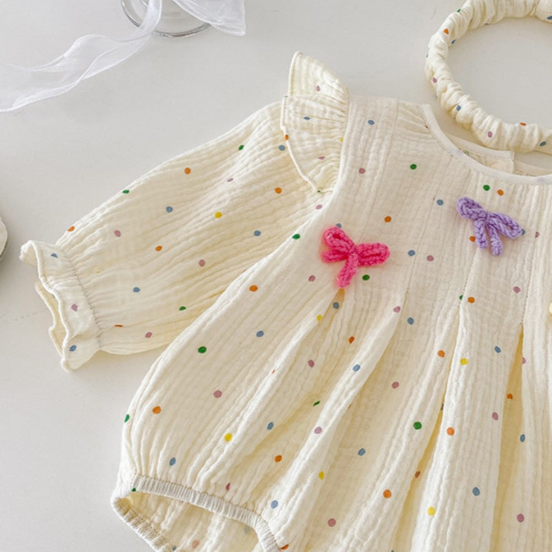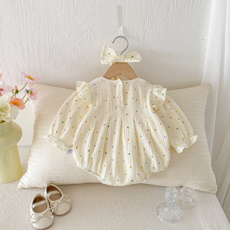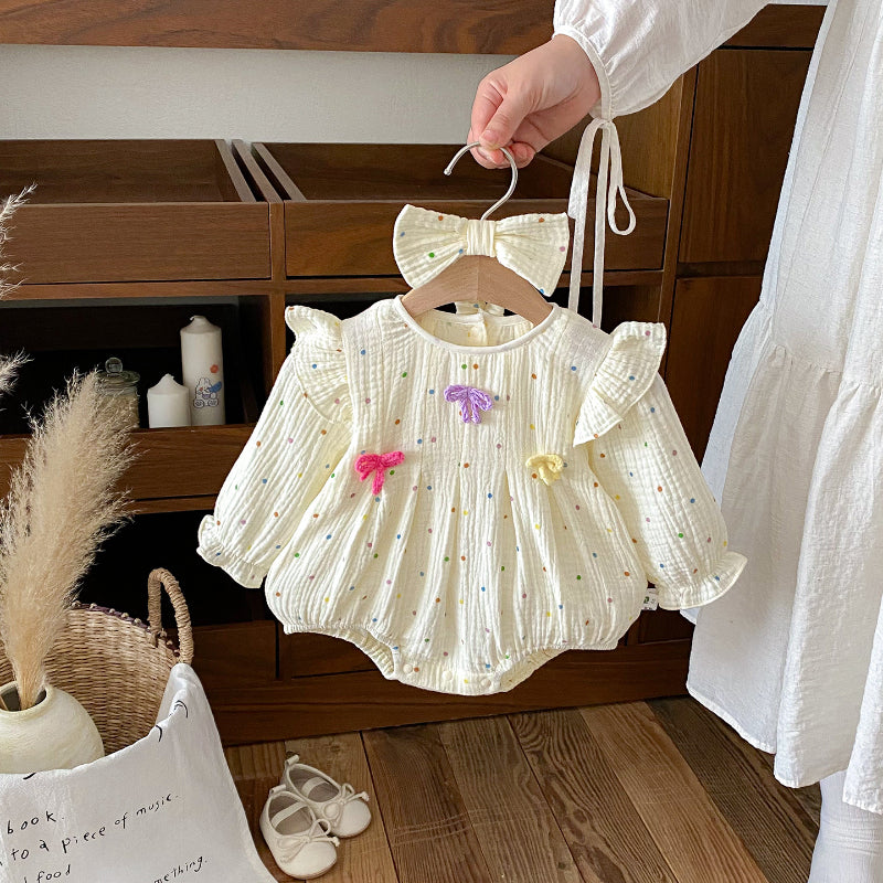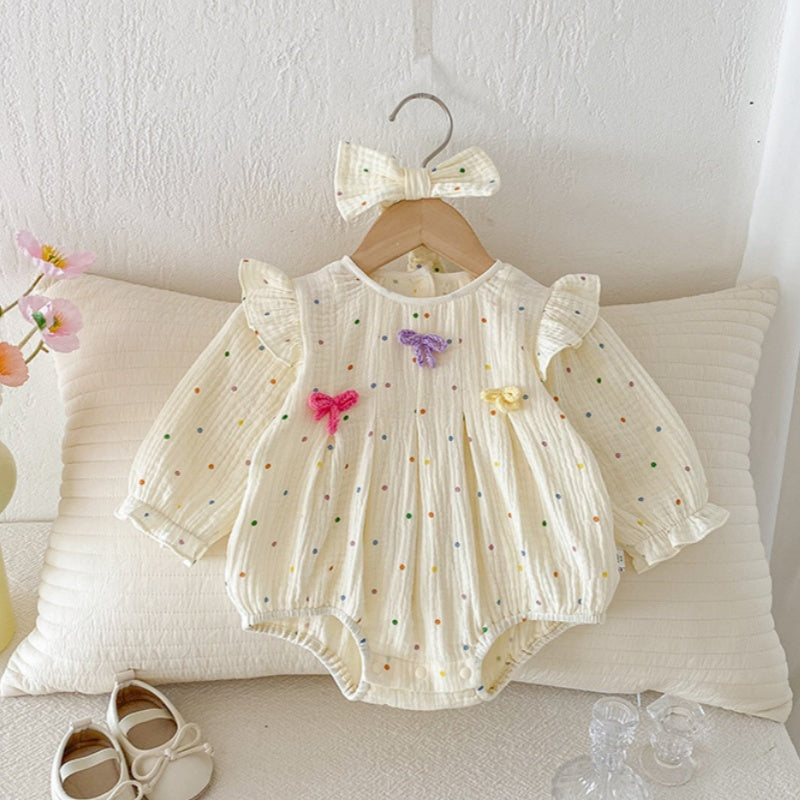 【BABY】ダブルガーゼ 蝶結びドットロンパースSK093001