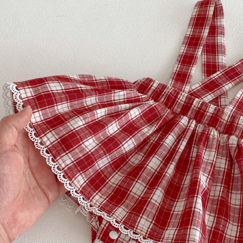【BABY】チェックサロペットロンパース&うさぎ刺繍SK103618