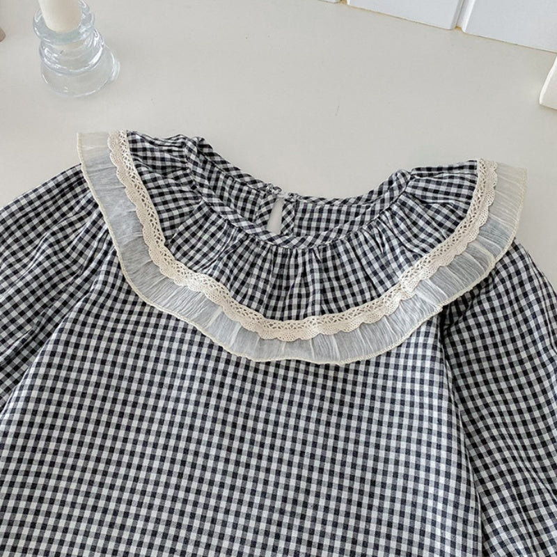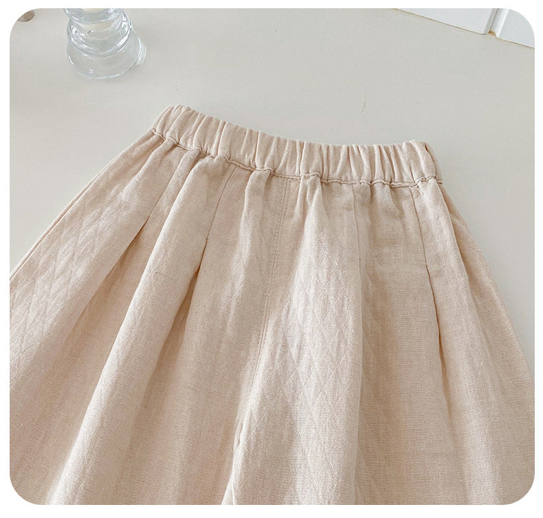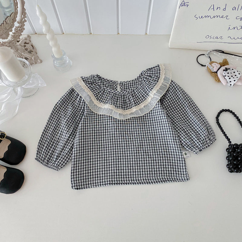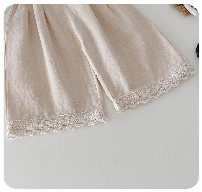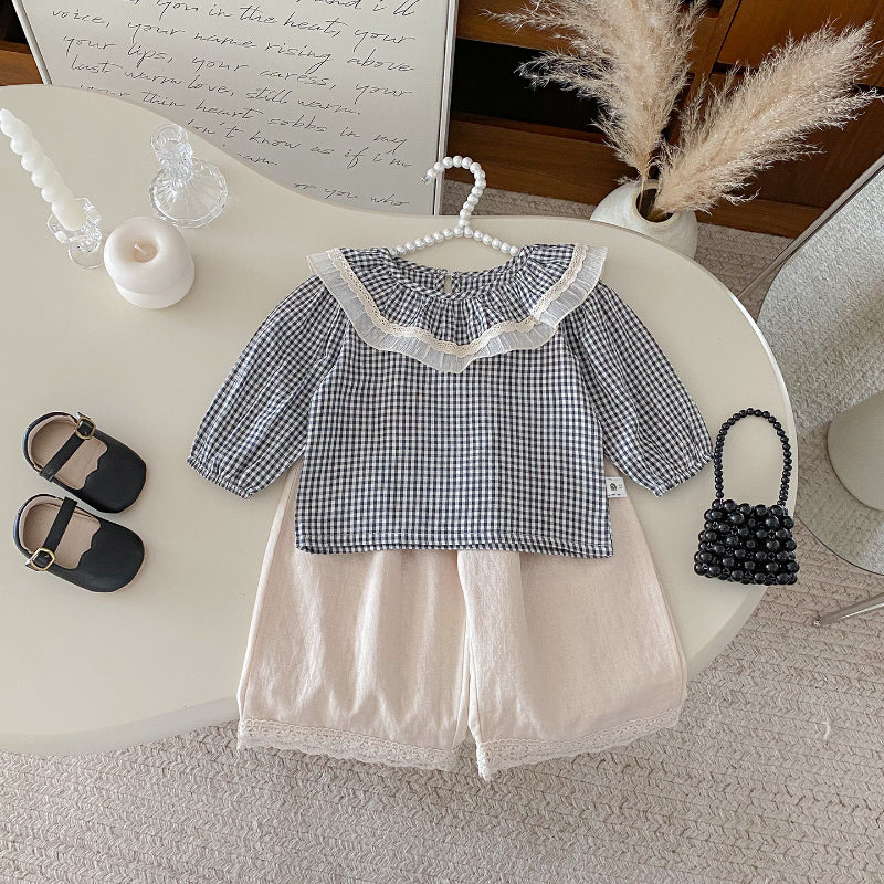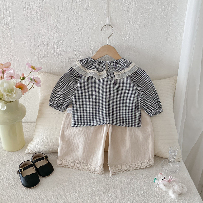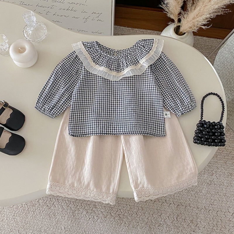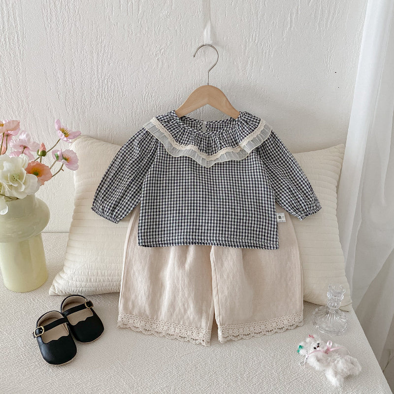 【BABY】チェックレースブラウス、ベージュワイドパンツSK101430