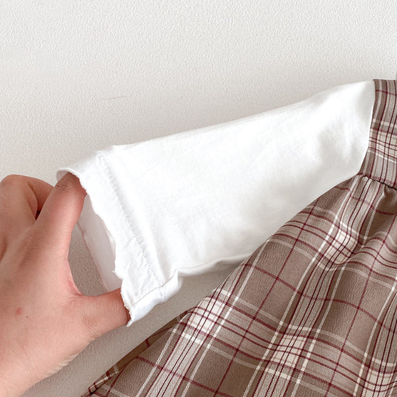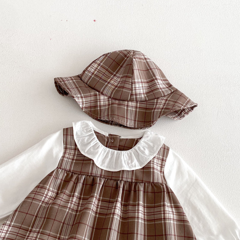 【BABY】チェックロンパースワンピ&帽子SK103624