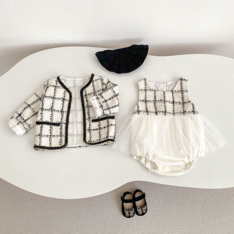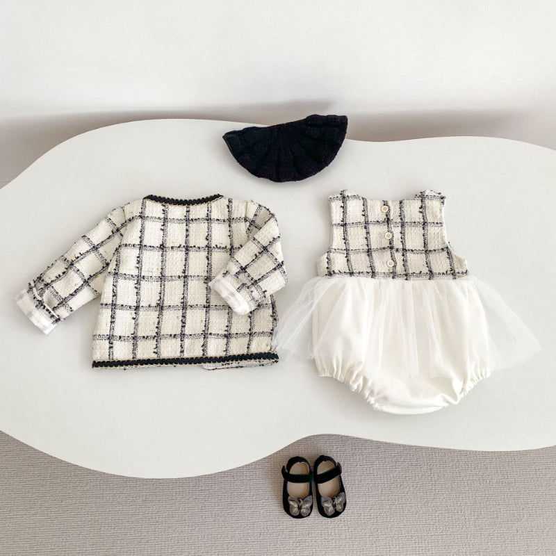 【BABY】ツイード風チュールロンパース、アウターSK100736