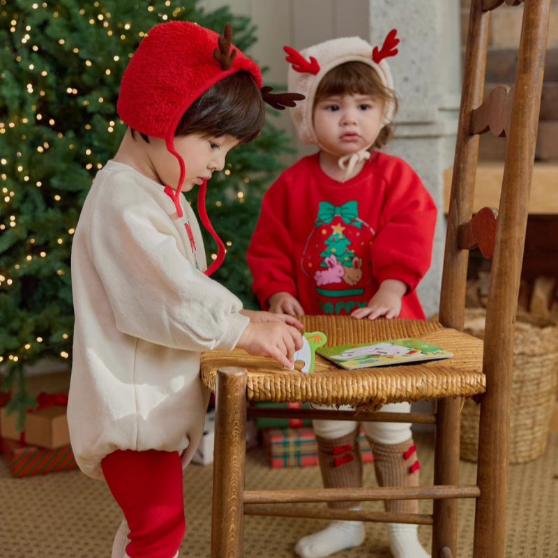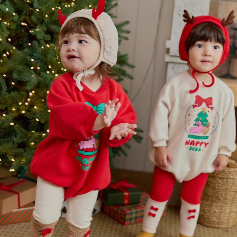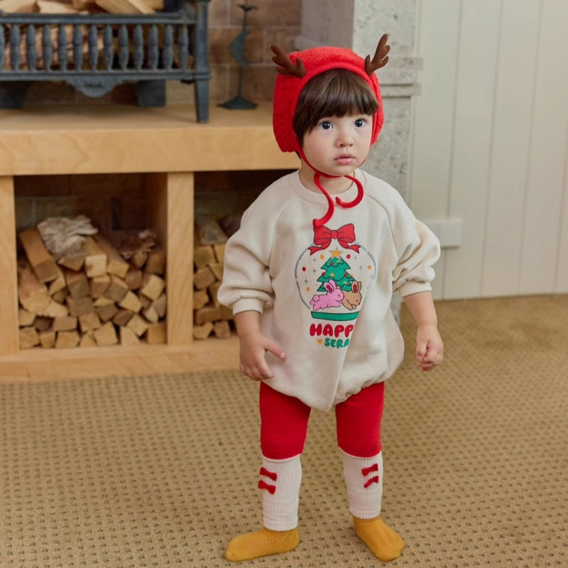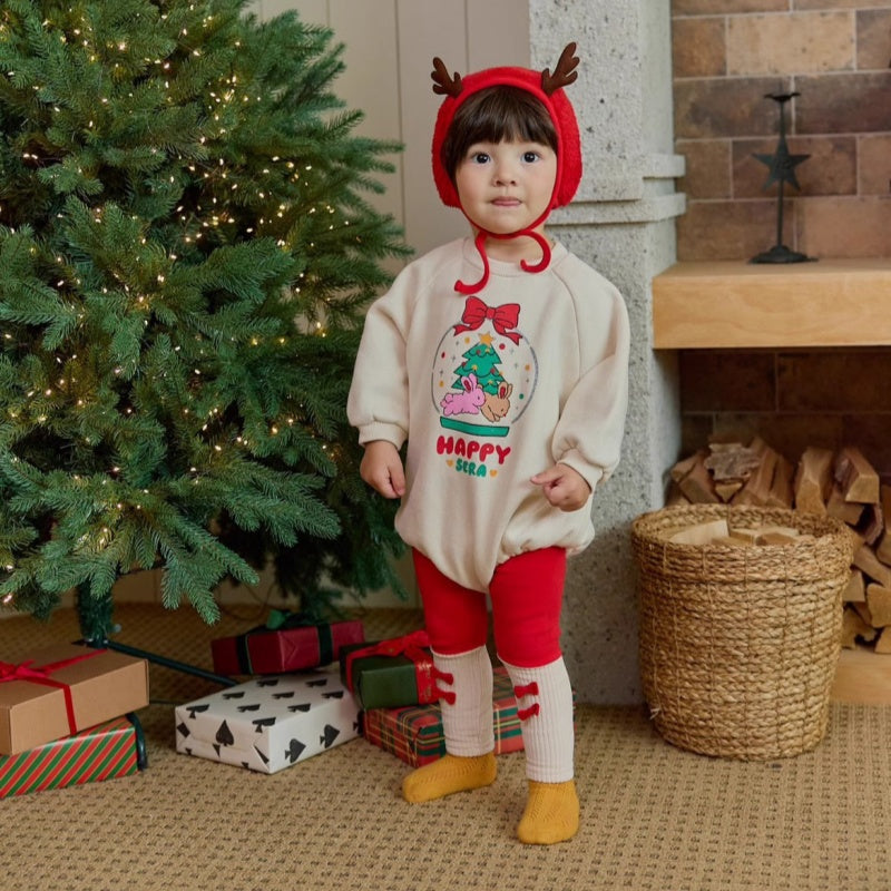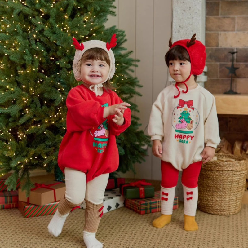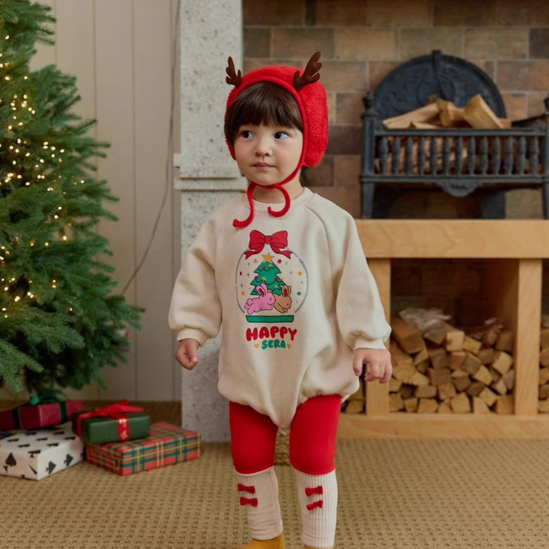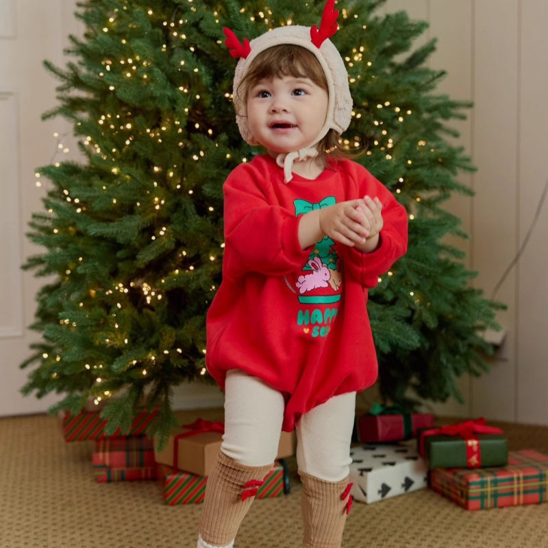 【BABY】ツリー&うさぎ柄ロンパース、蝶結びレギンス、角帽子SK102816