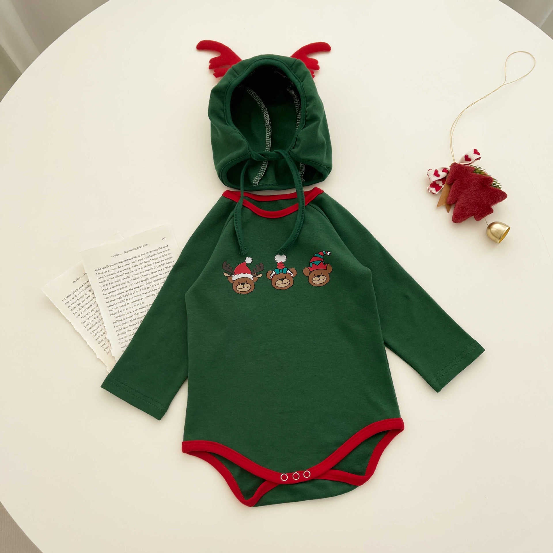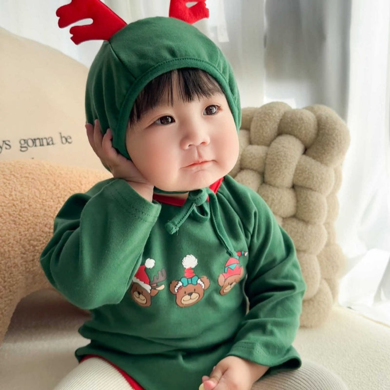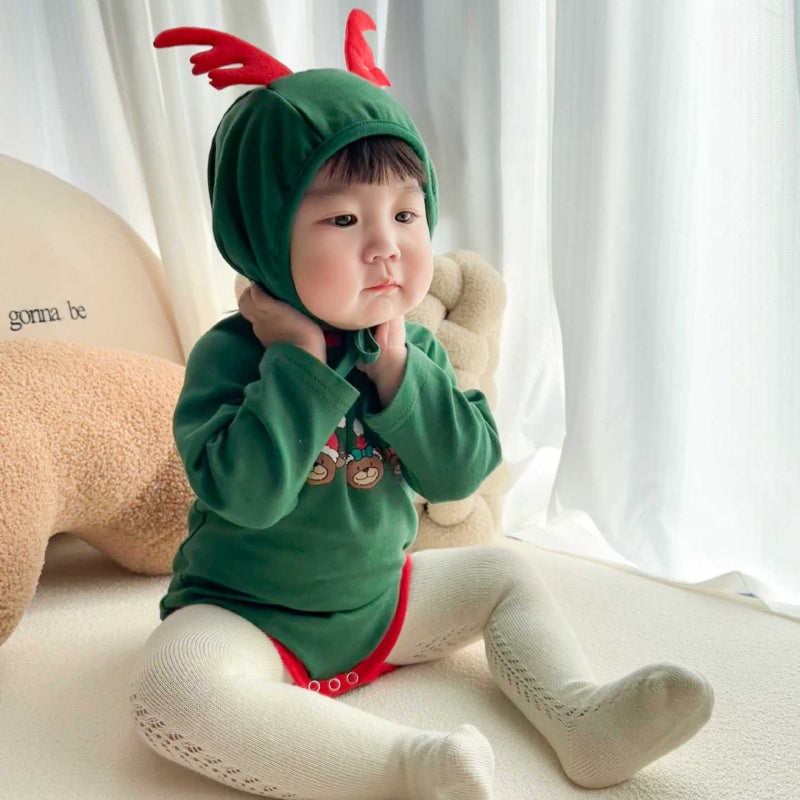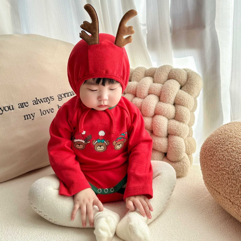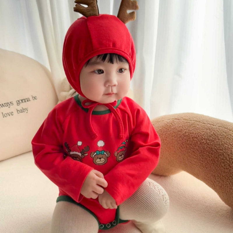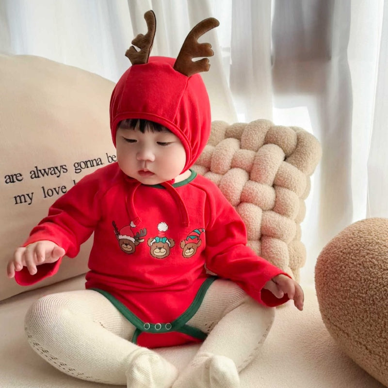 【BABY】トナカイプリントカバーオール&角付き帽子セットSK102813