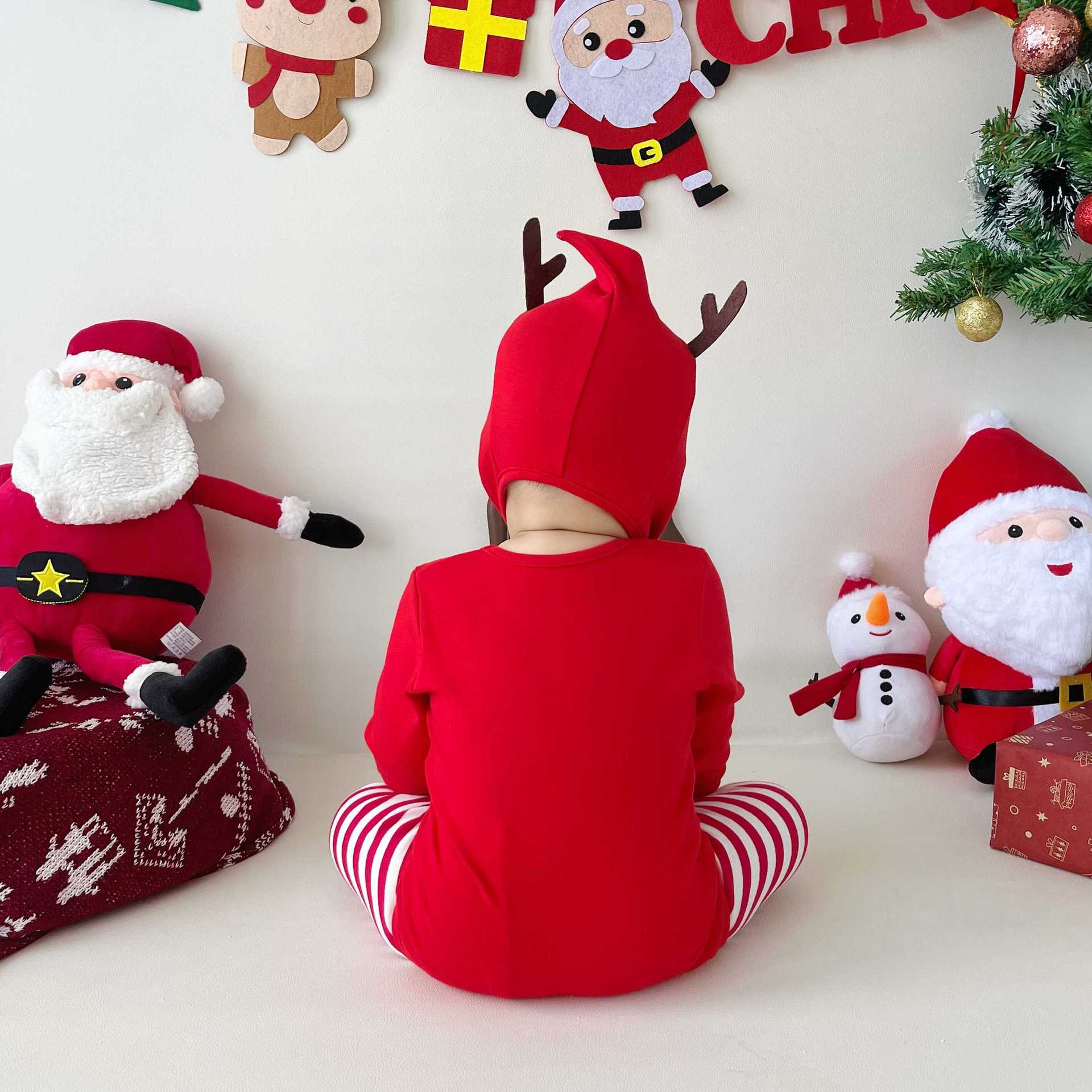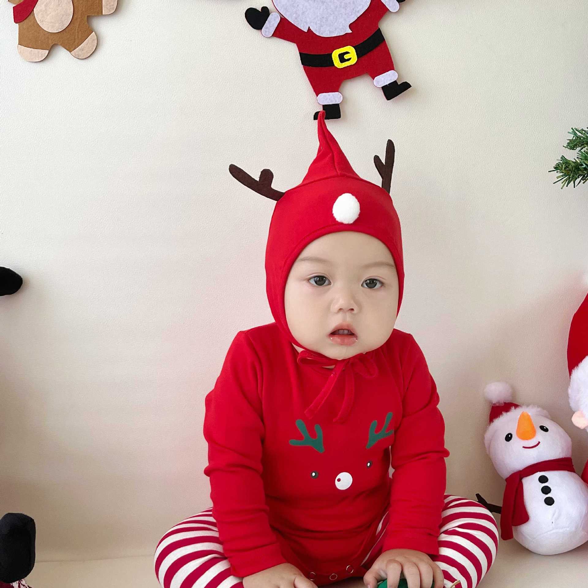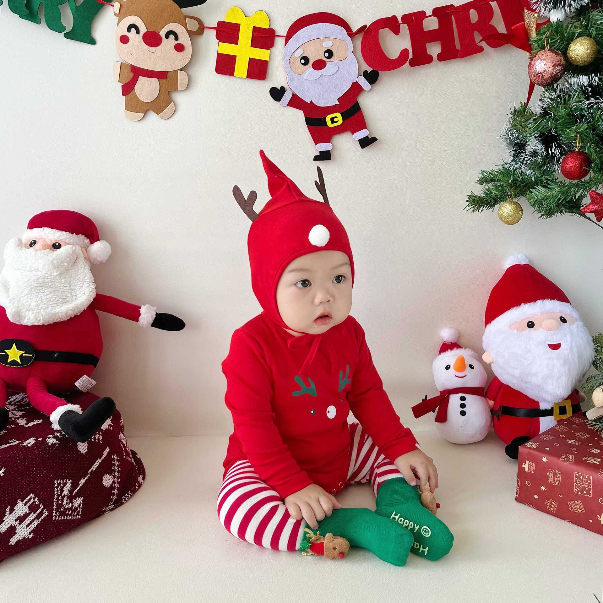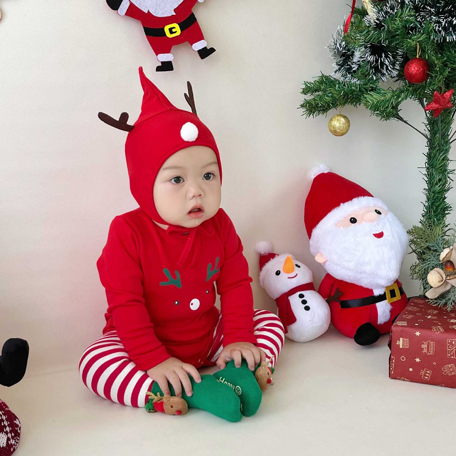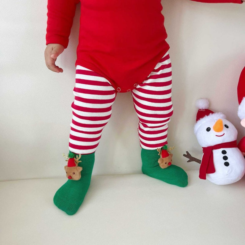 【BABY】トナカイ柄ロンパース、ボーダーレギンスセットSK102822