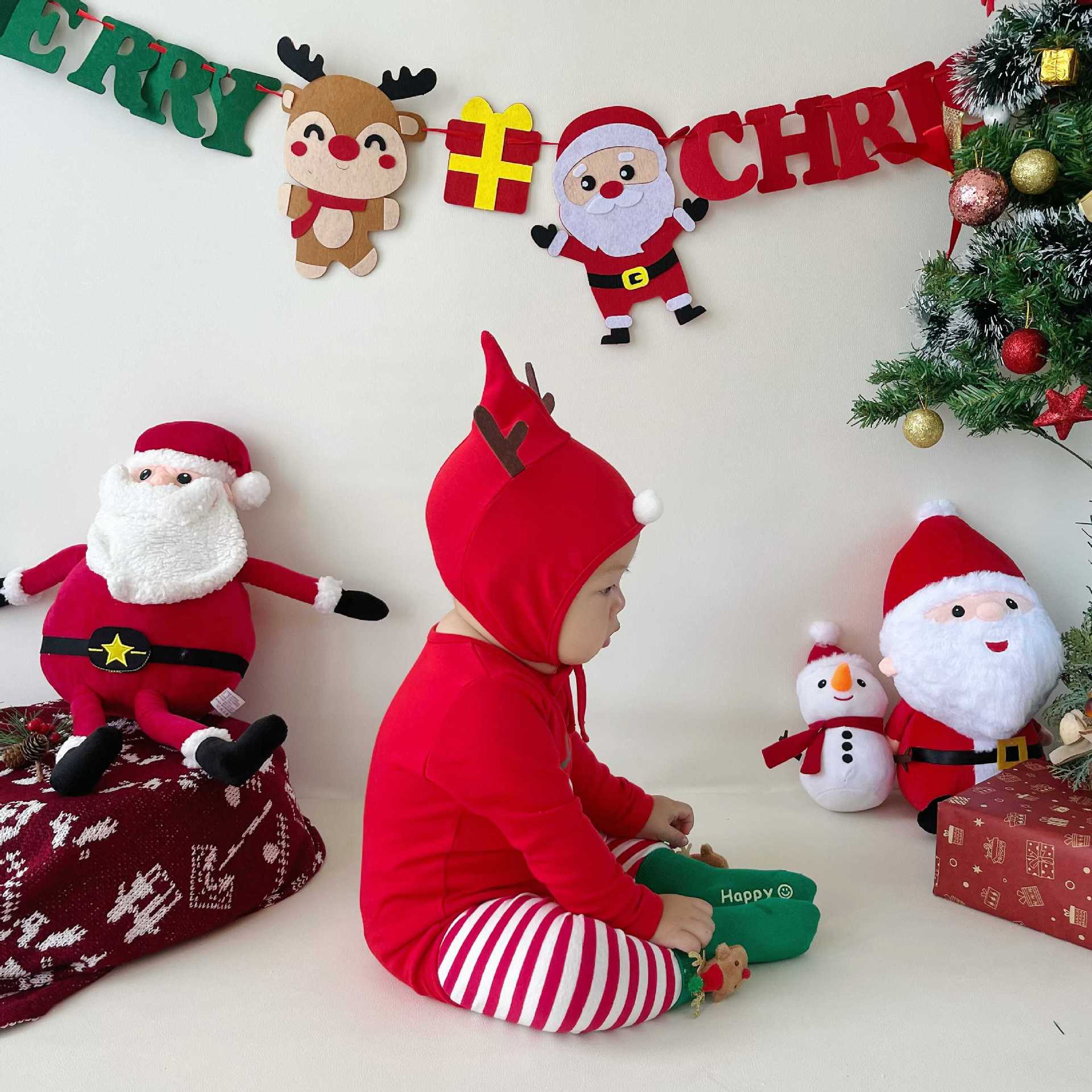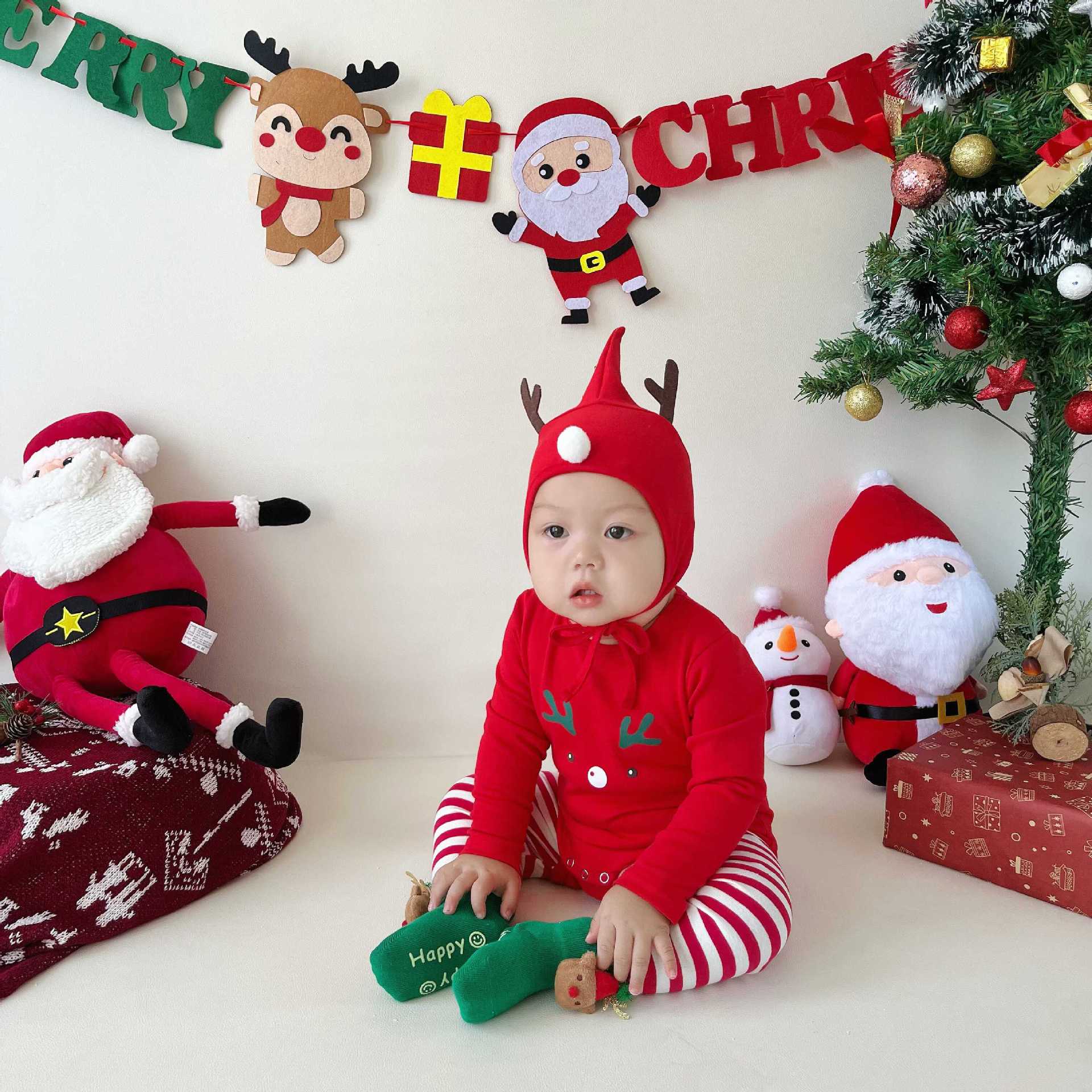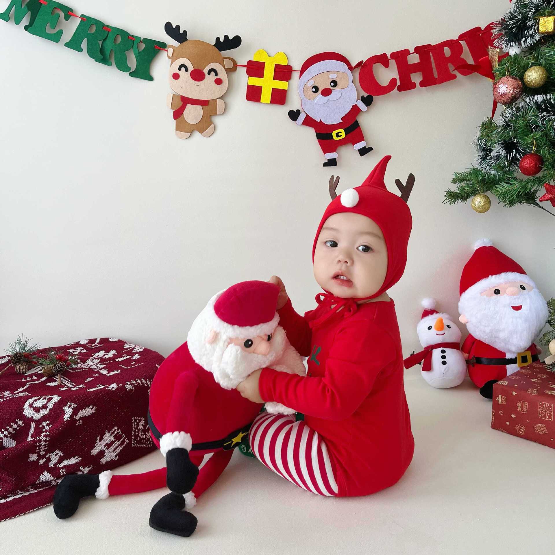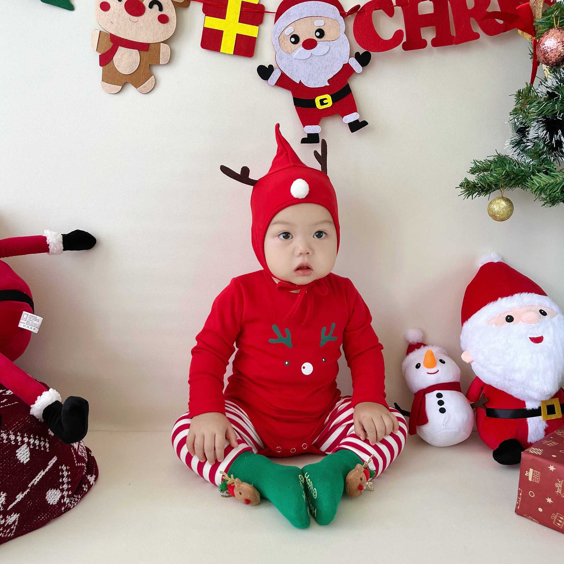 【BABY】トナカイ柄ロンパース、ボーダーレギンスセットSK102822