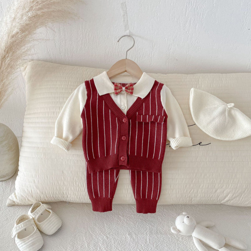 【BABY】ニット素材の紳士風スーツセットSK092404