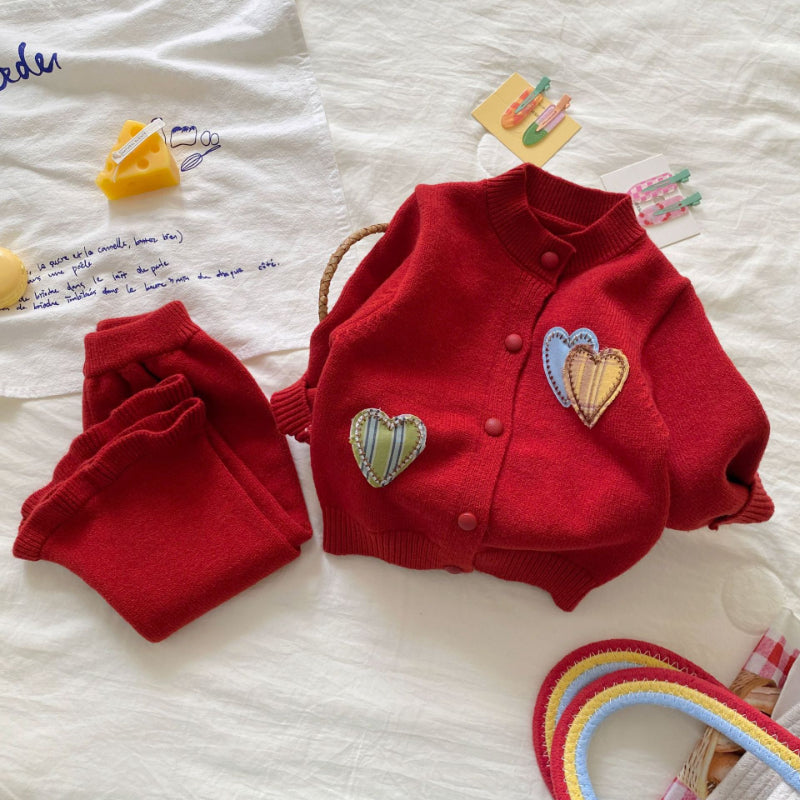 【BABY】ハートカーディガン&ニットパンツセットアップSK092907
