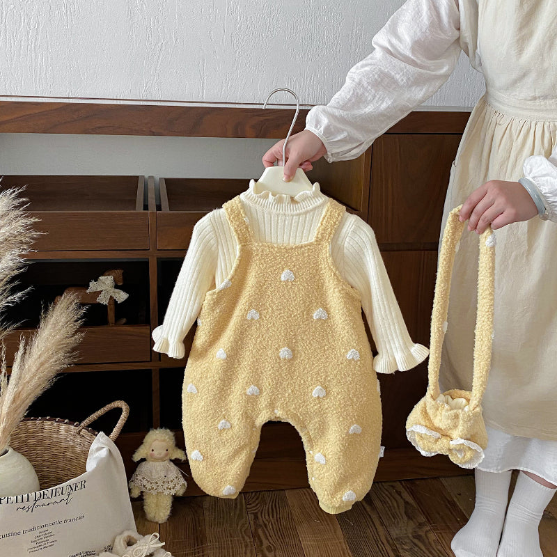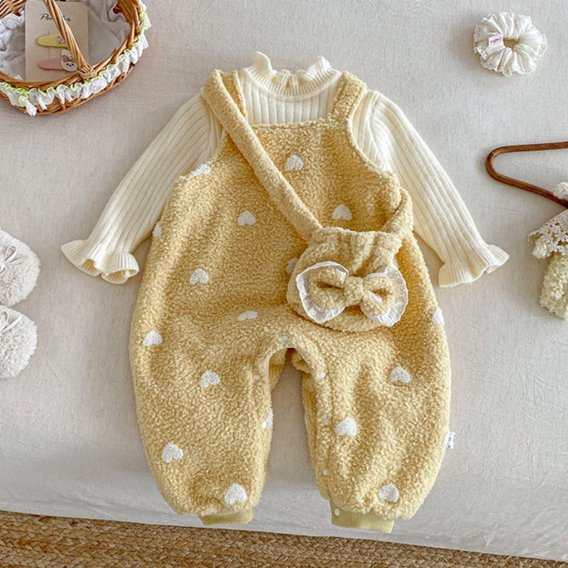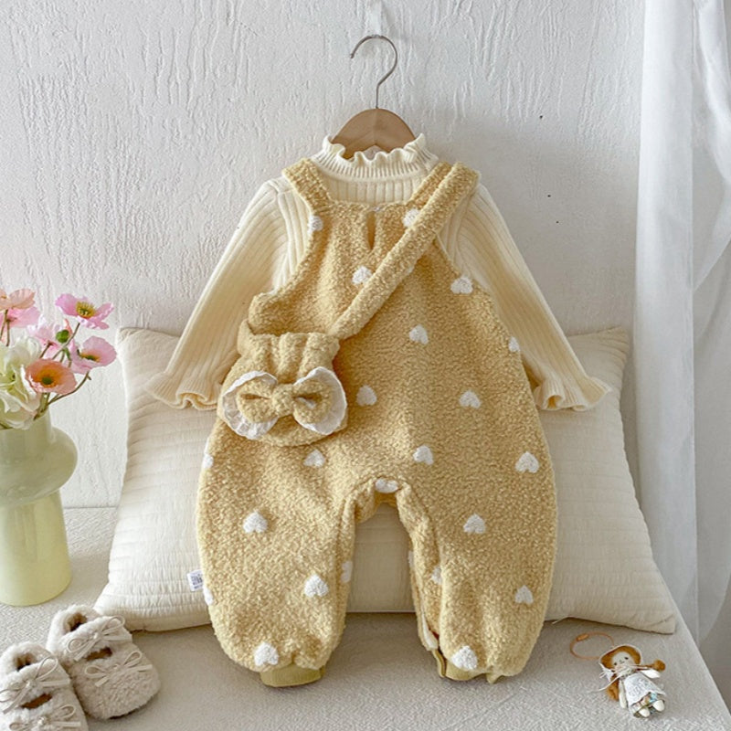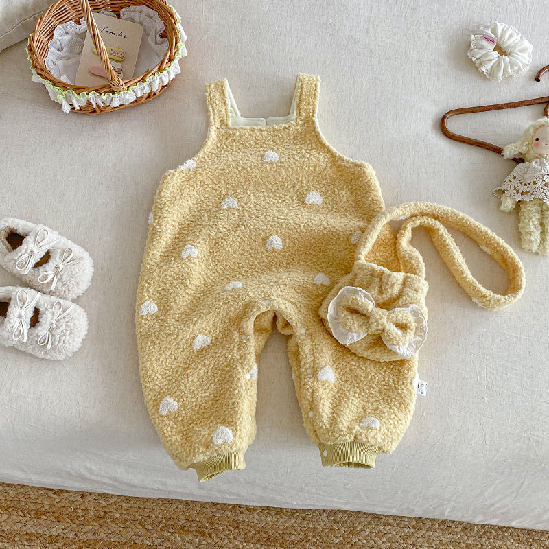 【BABY】冬新作 ハート柄サロペットカバーオール&バッグSK102108