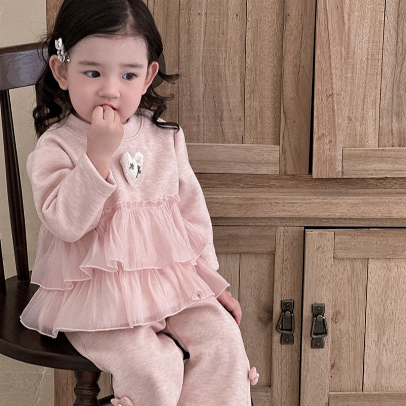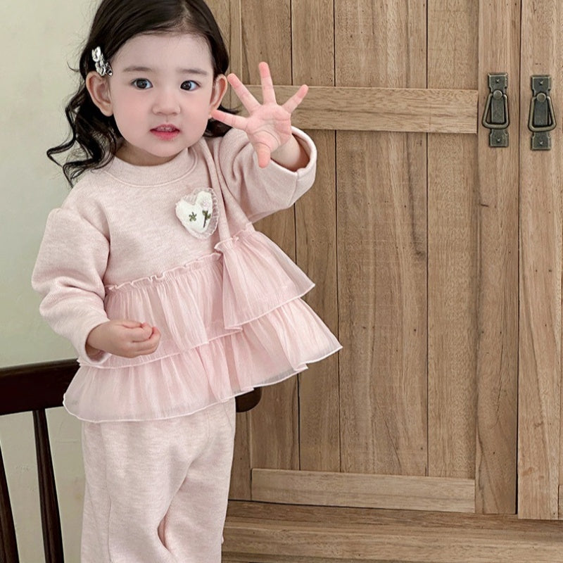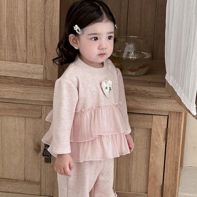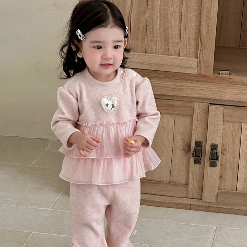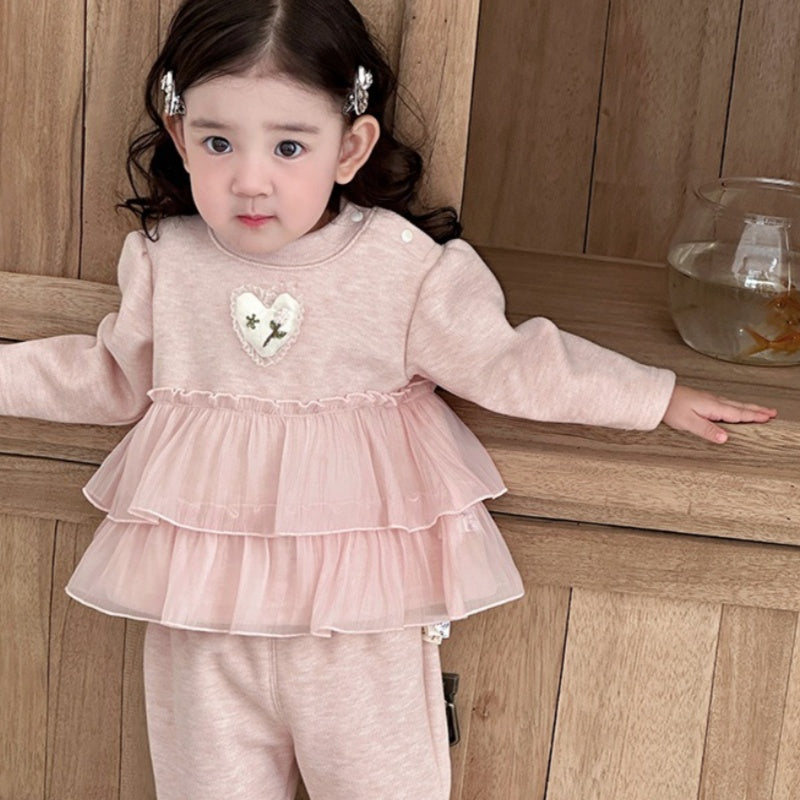 【BABY】冬新作 ピンク裏起毛スイートセットアップSK102116