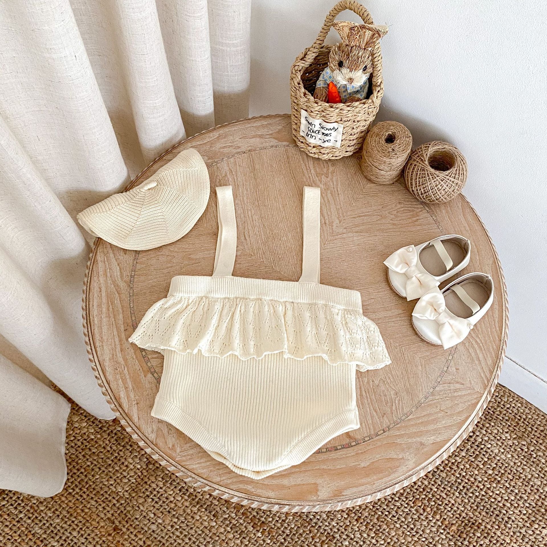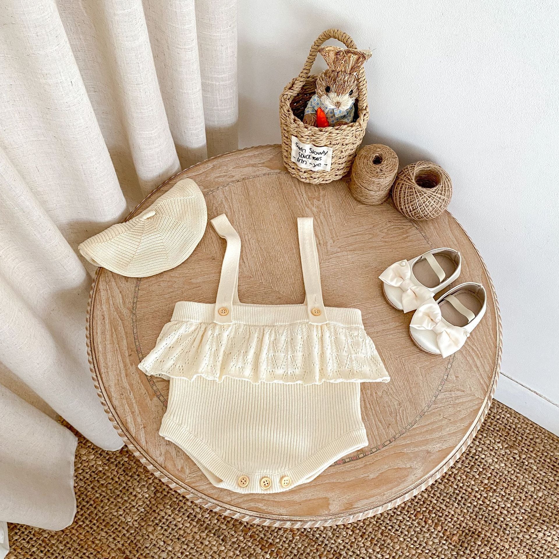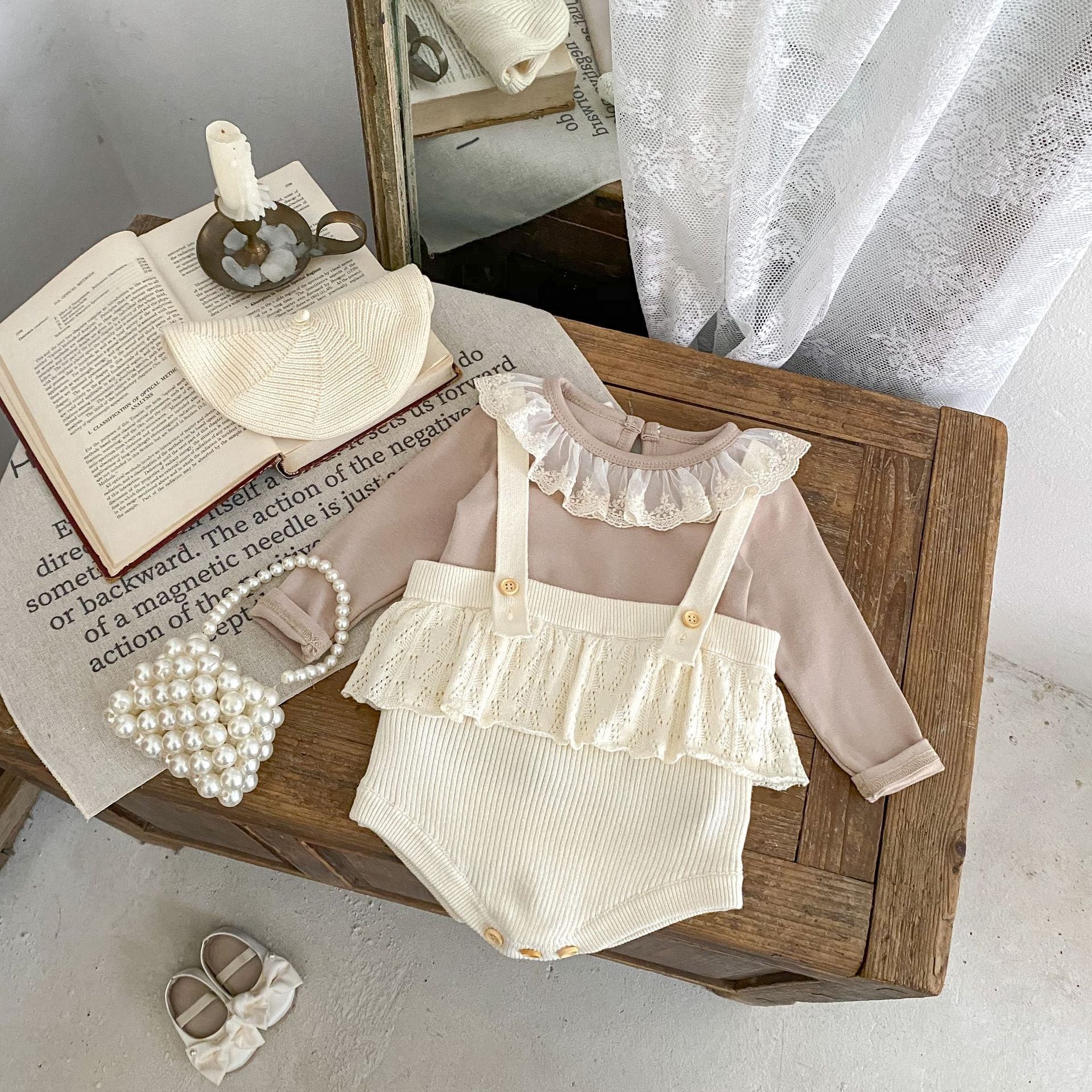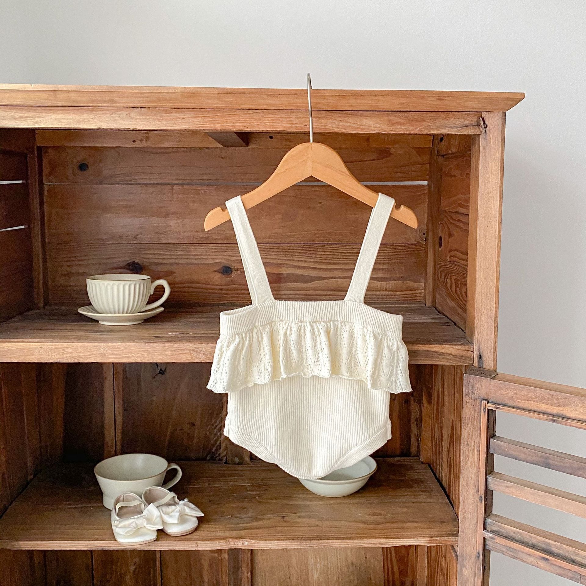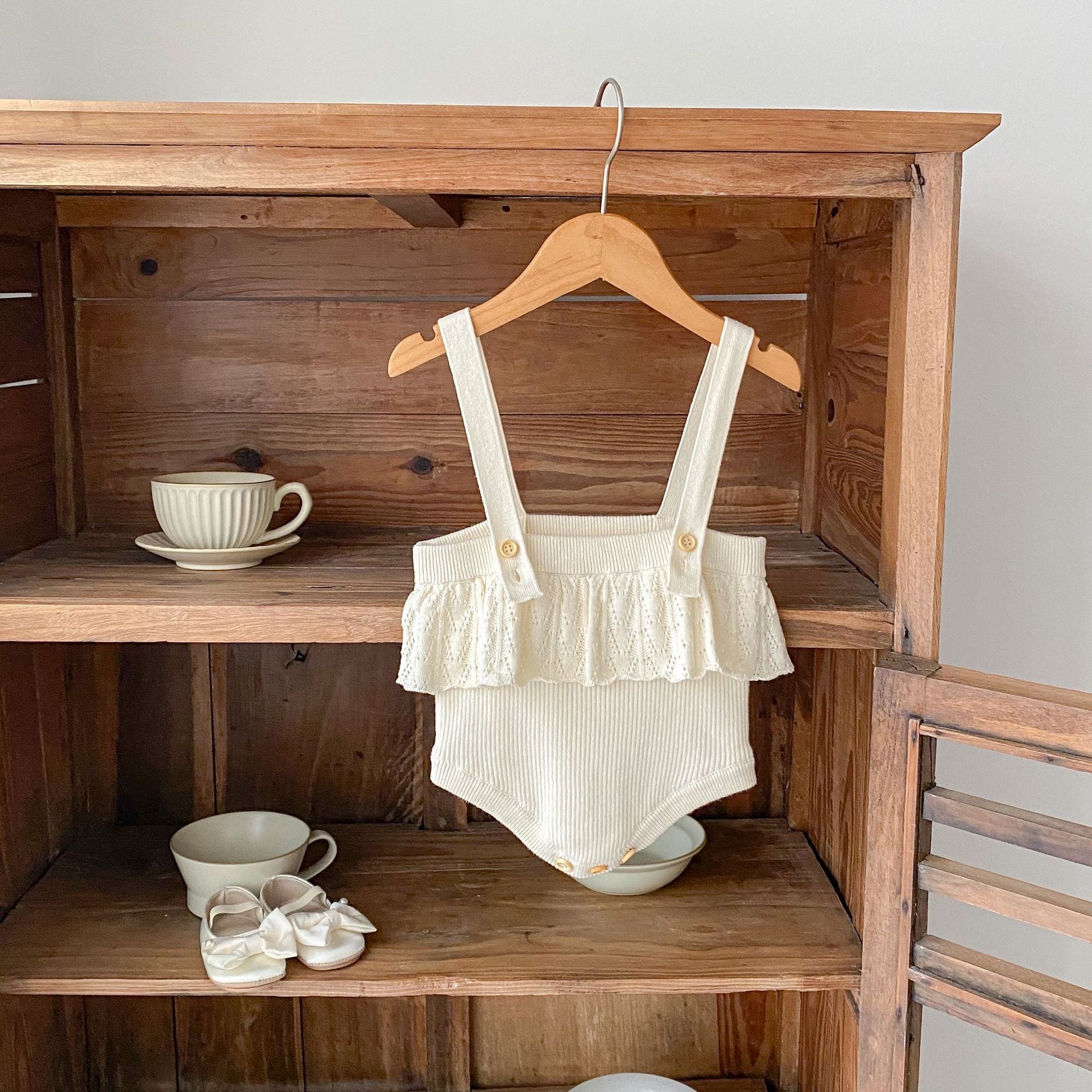 【BABY】フラワーニットクリームサロペットSK061007