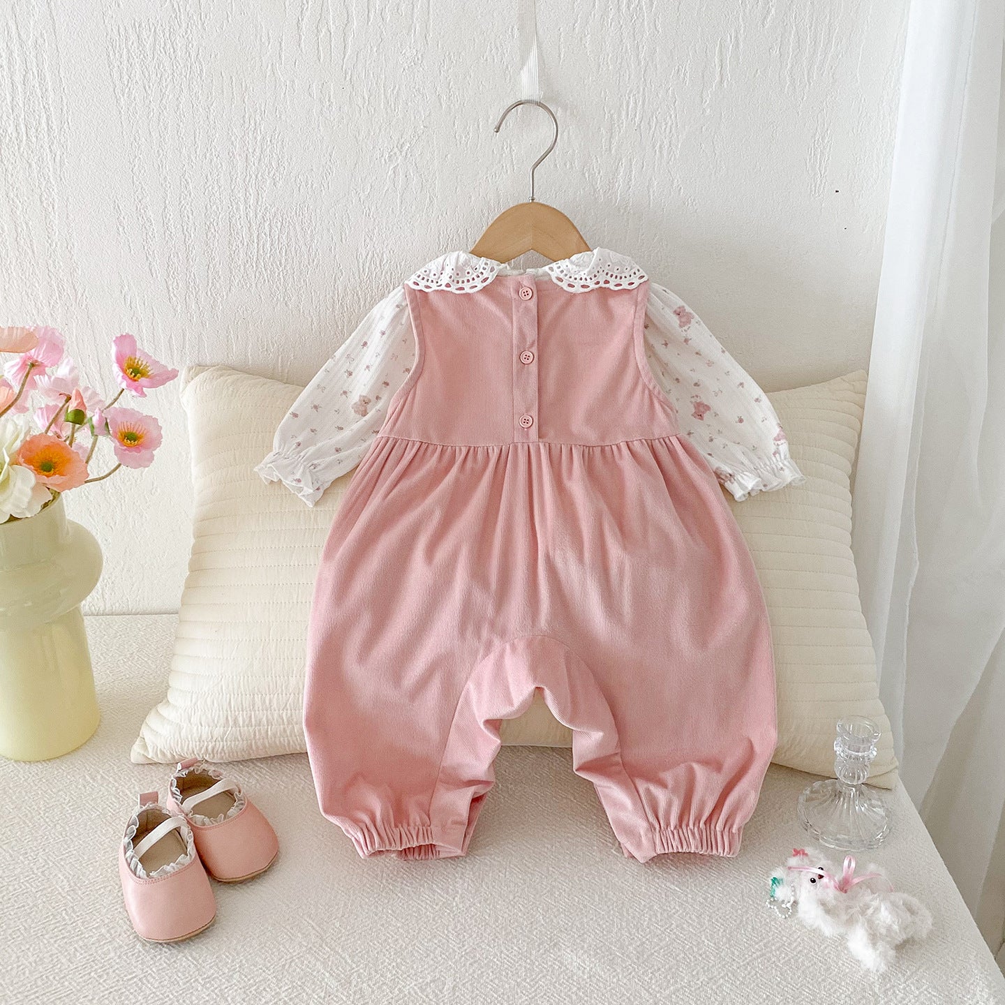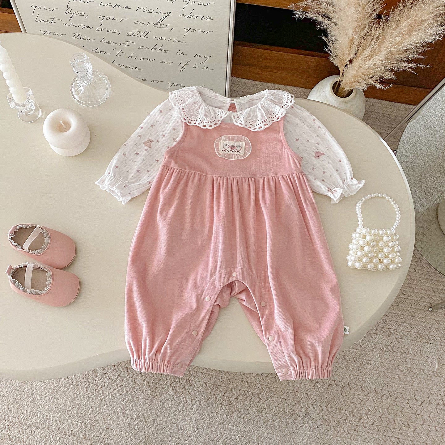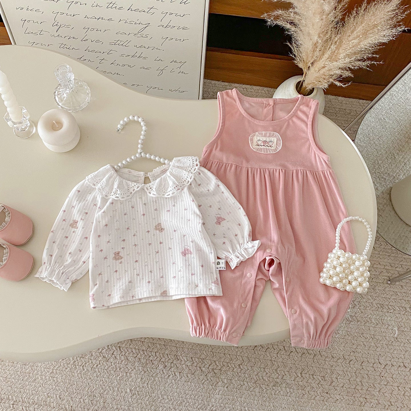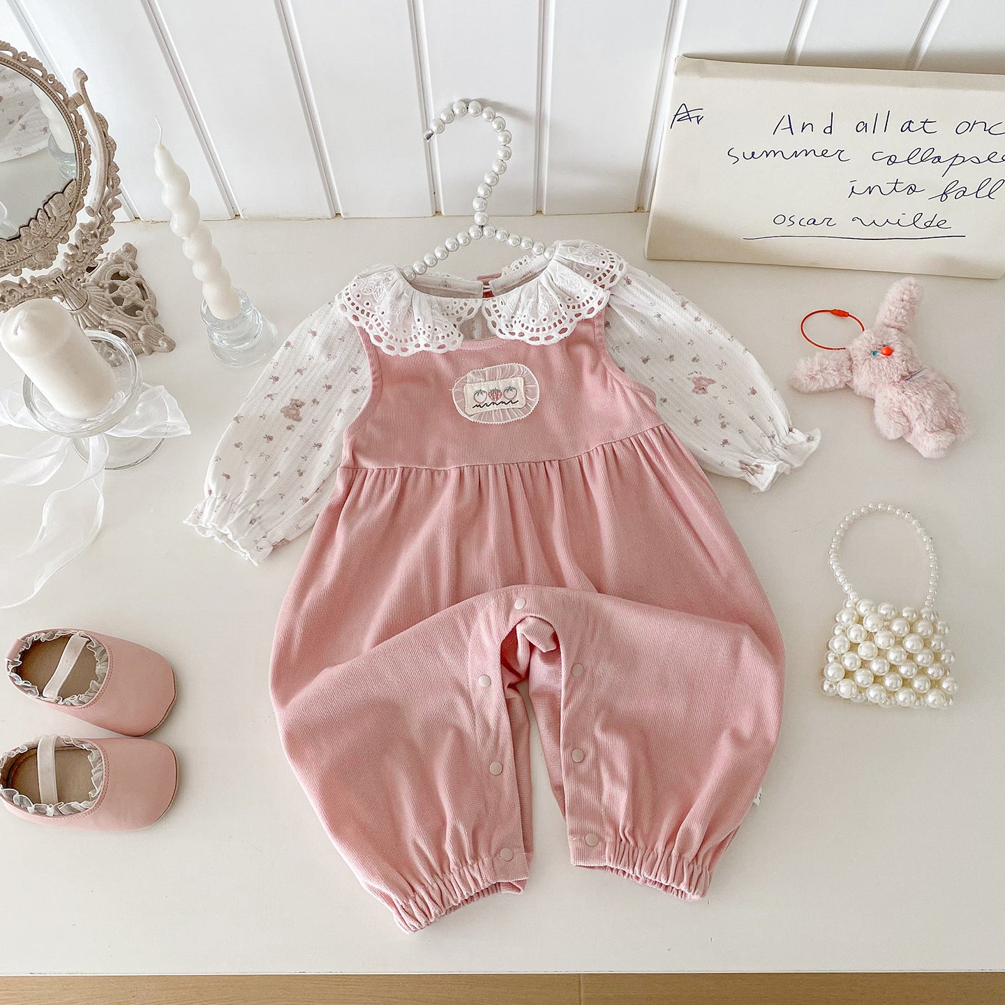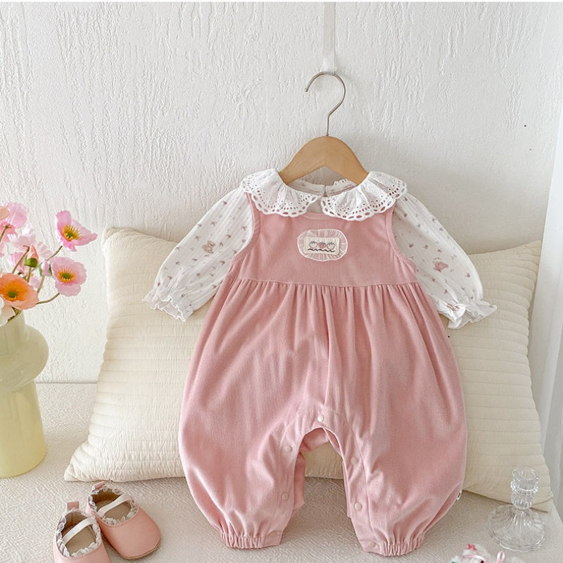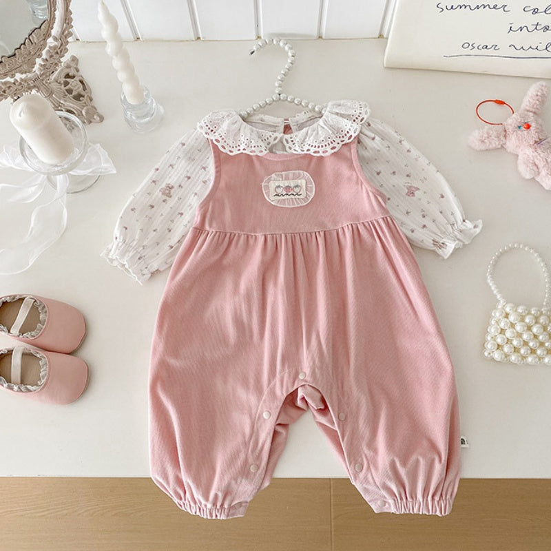 【BABY】フリルトップス&ピンクサロペットパンツSK100441