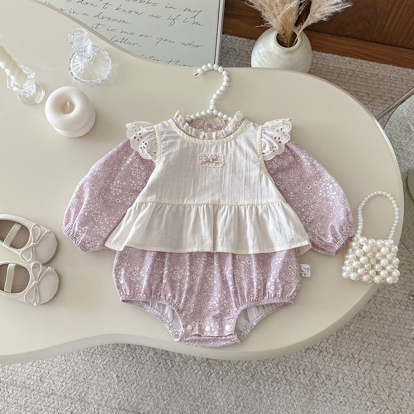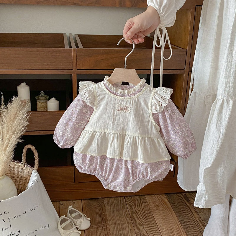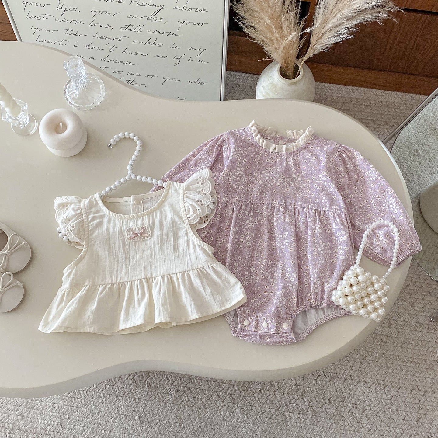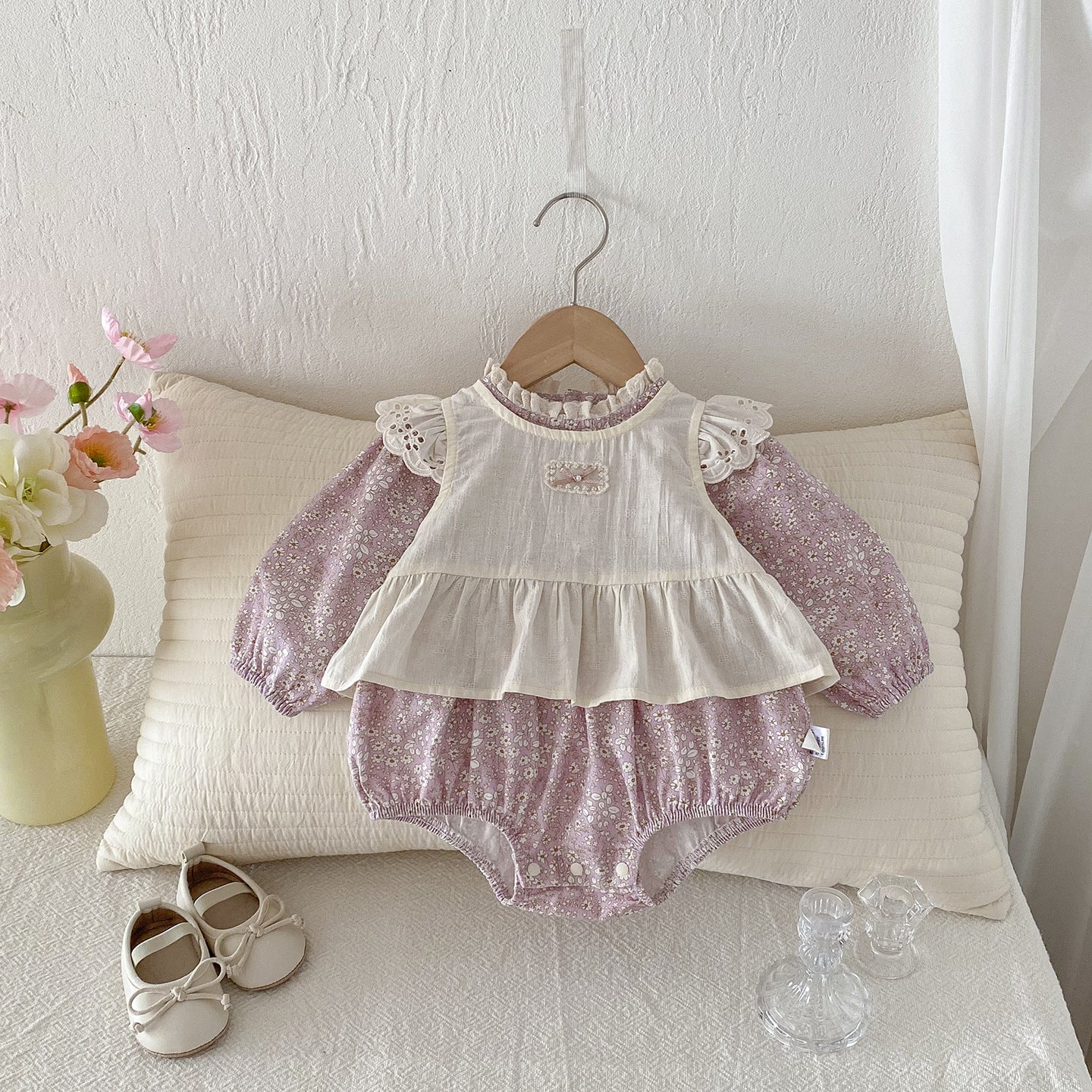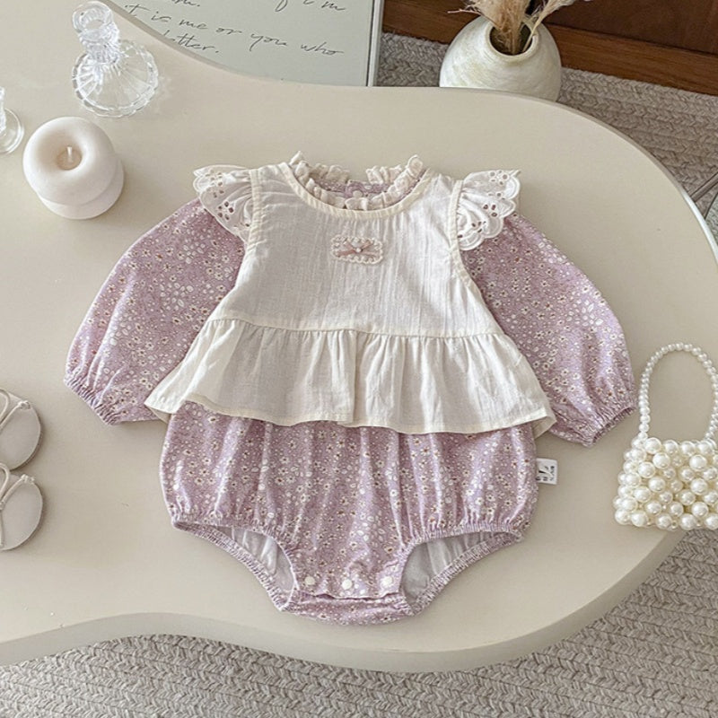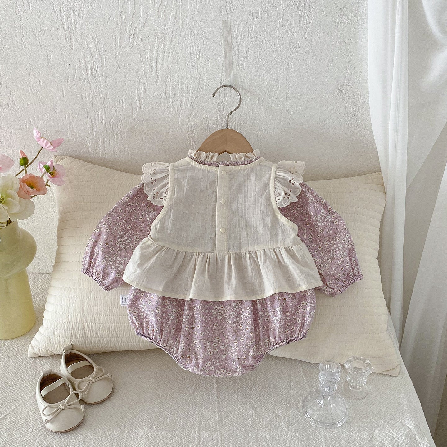 【BABY】フリルベスト&小花柄ロンパース2点セットSK100408