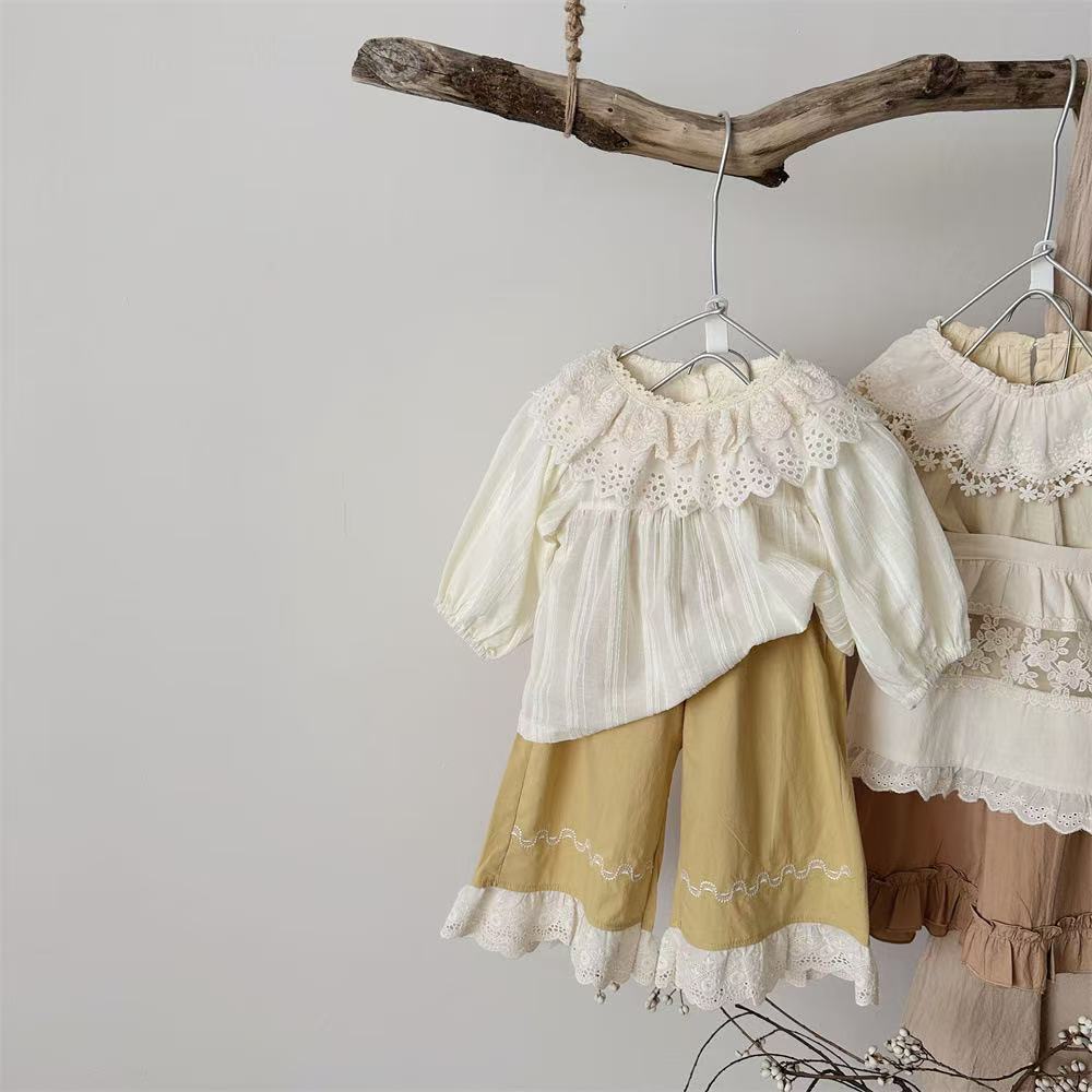 【BABY】フリルレースブラウス、キイロボトムスSK031607