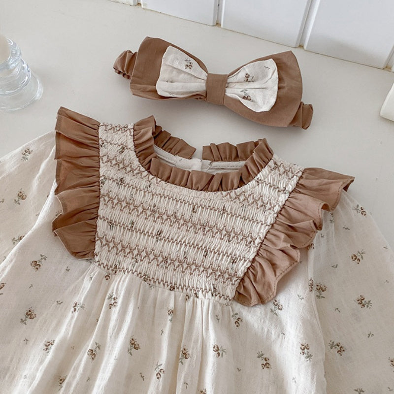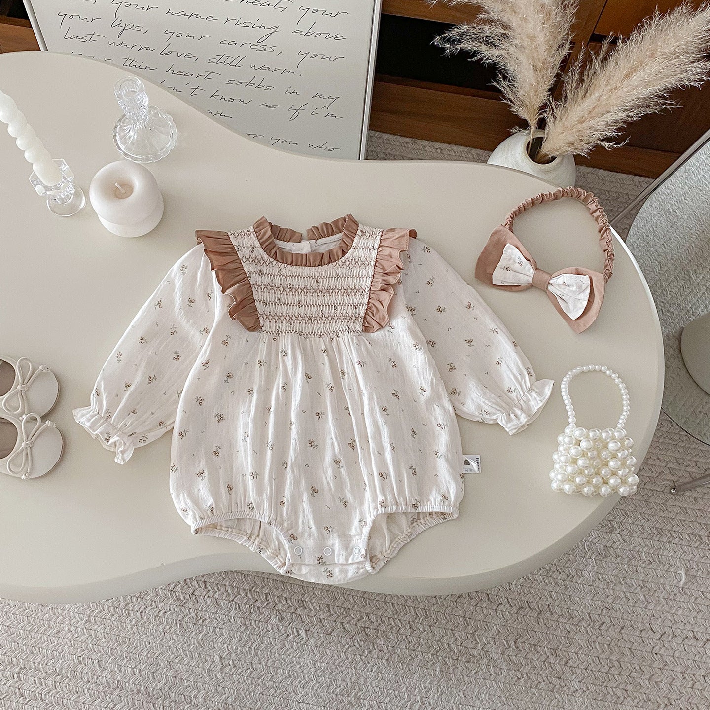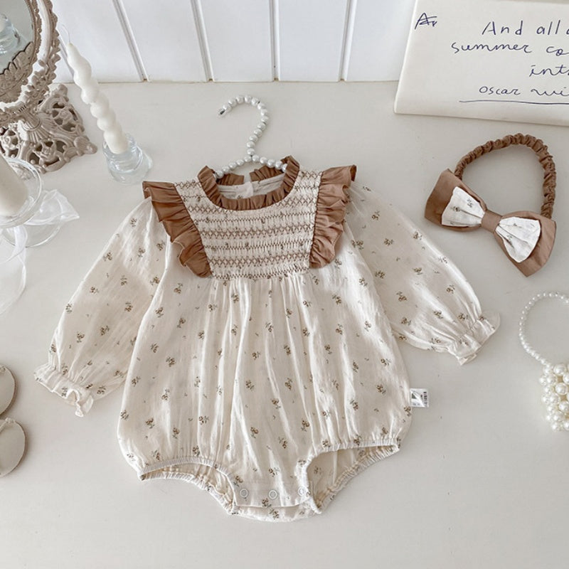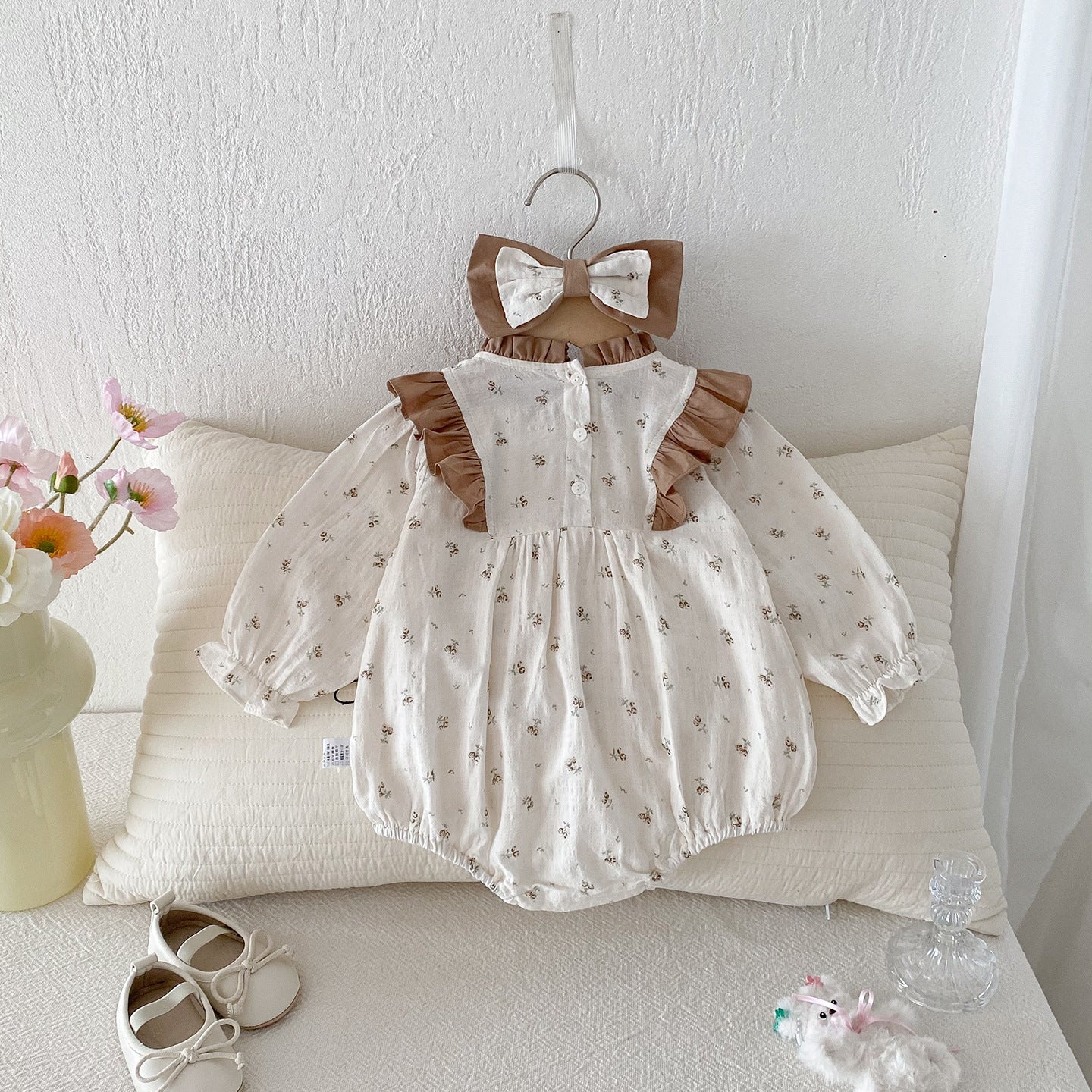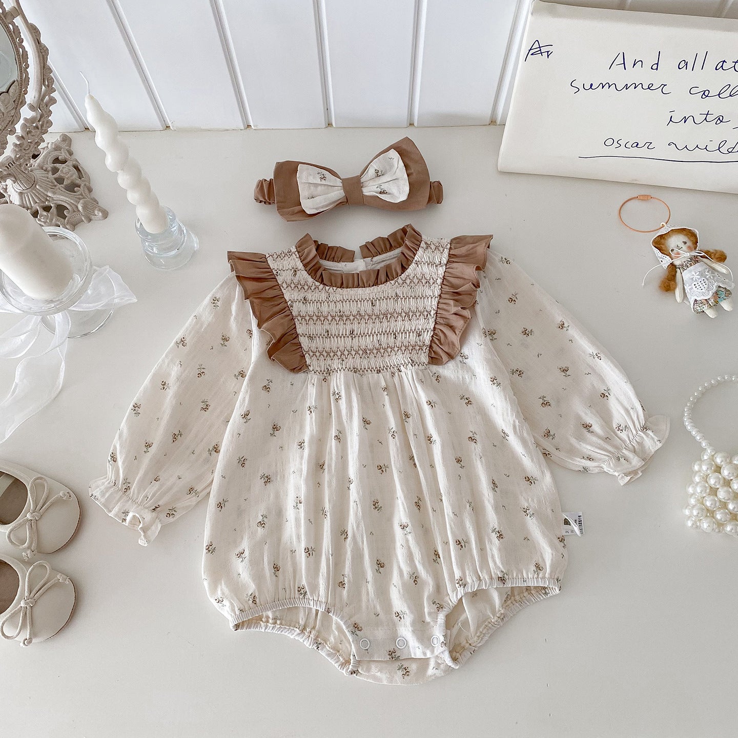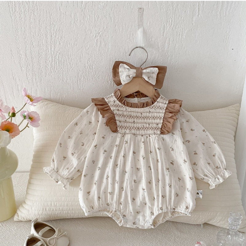 【BABY】フリル小花柄ロンパース&ヘアバンドSK100438
