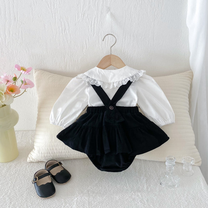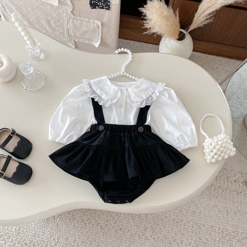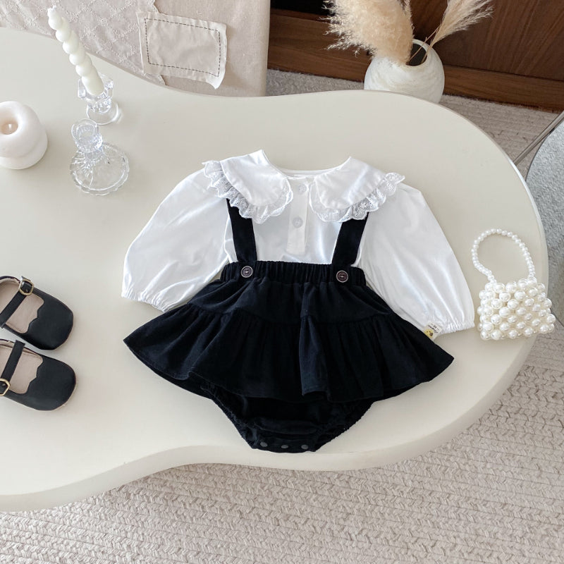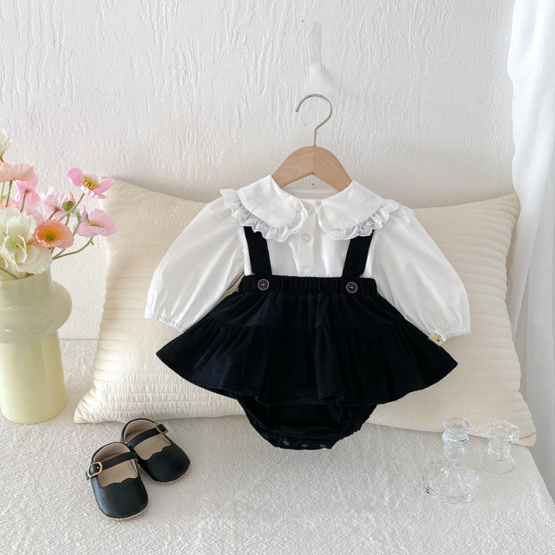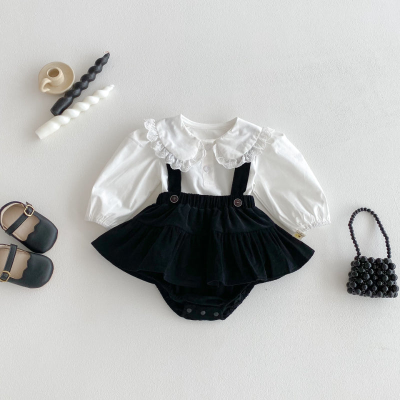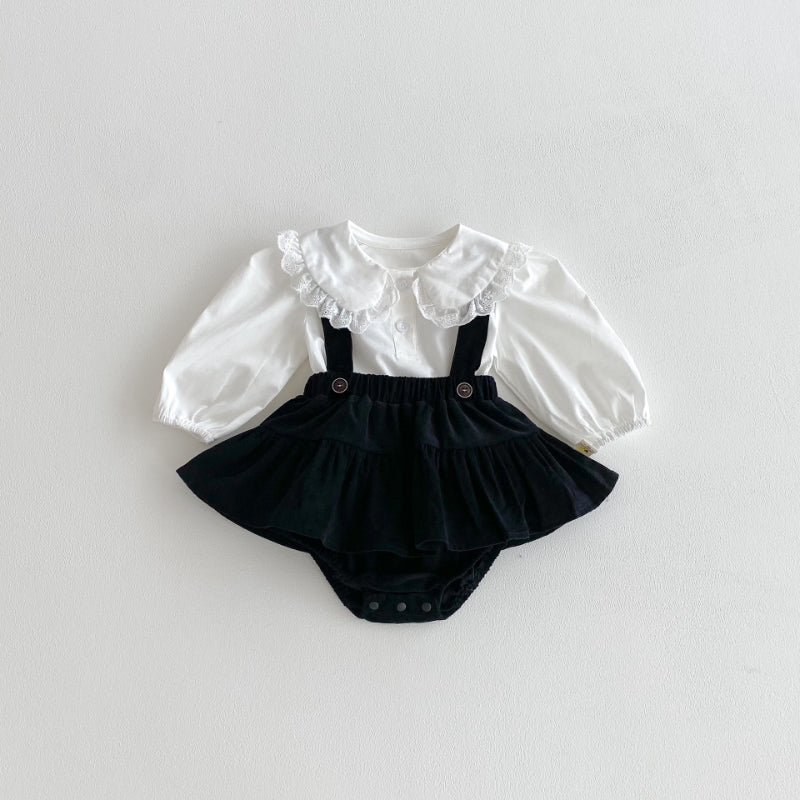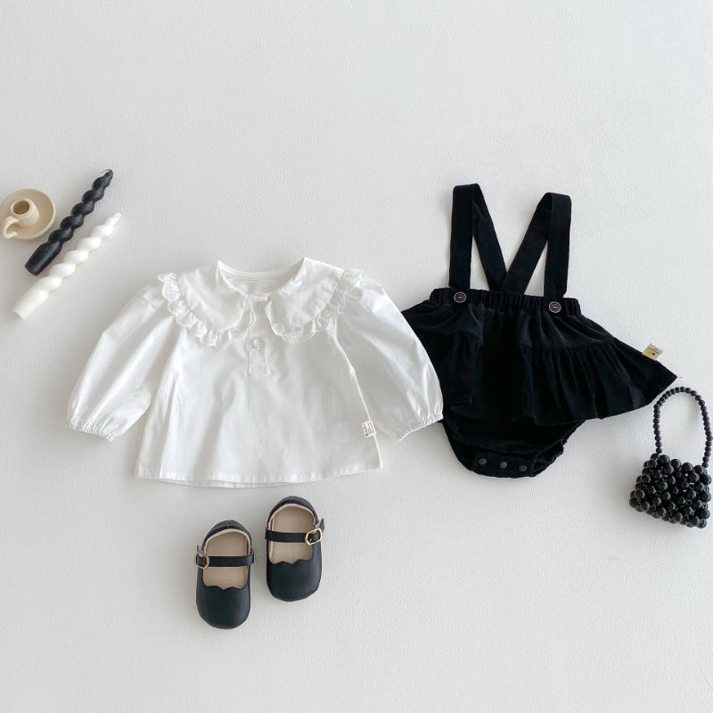 【BABY】フリル襟ベビーブラウス&サロペットロンパースSK100310