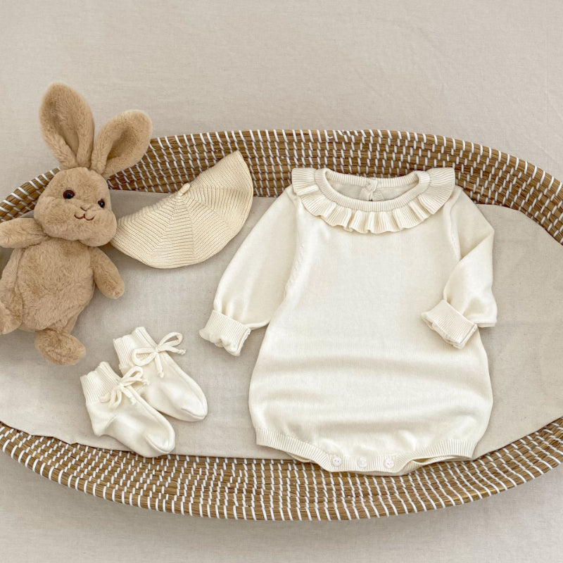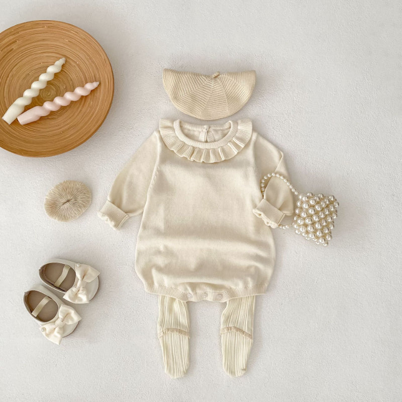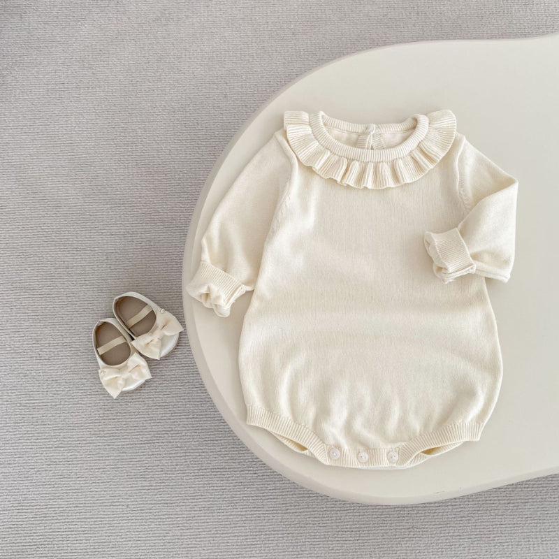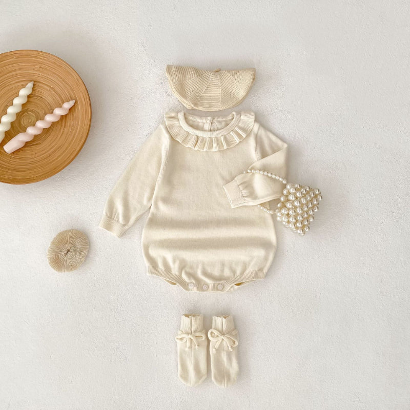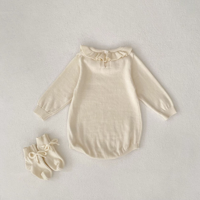 【BABY】フリル襟長袖ニットロンパース、ソックスSK100725