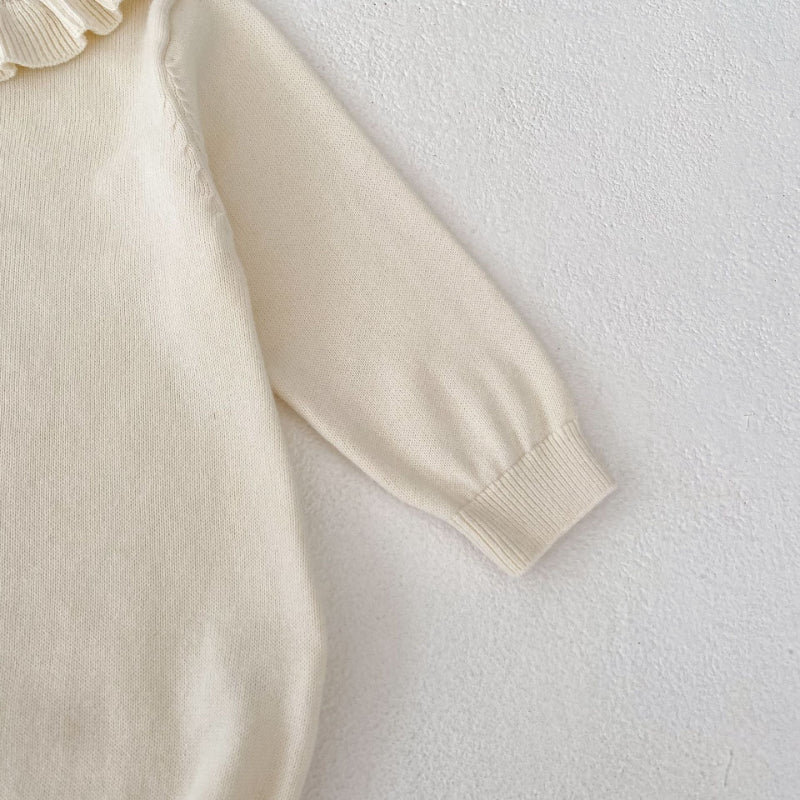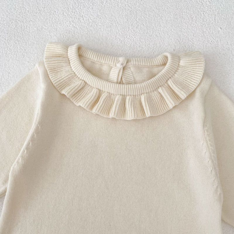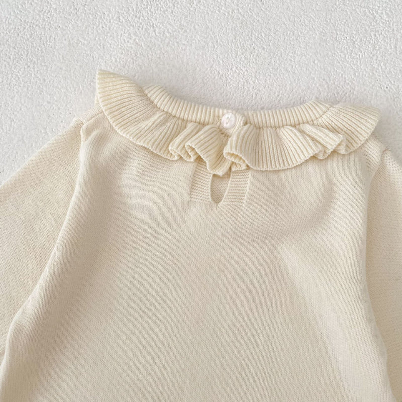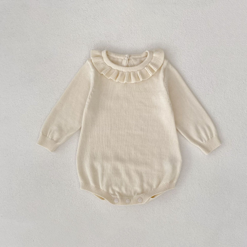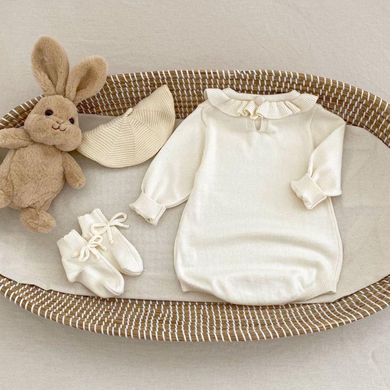 【BABY】フリル襟長袖ニットロンパース、ソックスSK100725