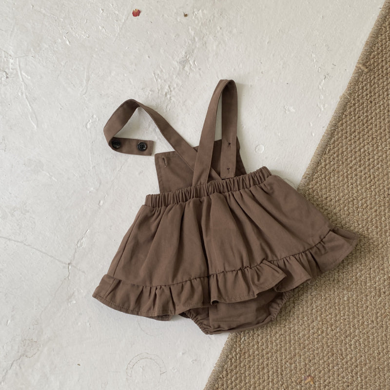 【BABY】ブラウンサロペットロンパース&シャツセットSK092823