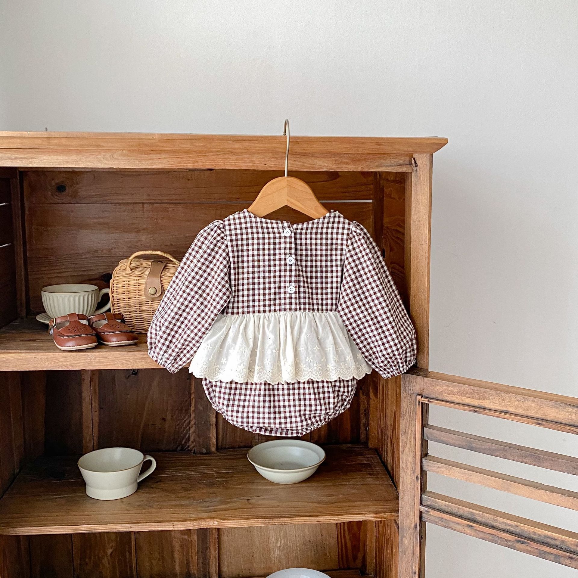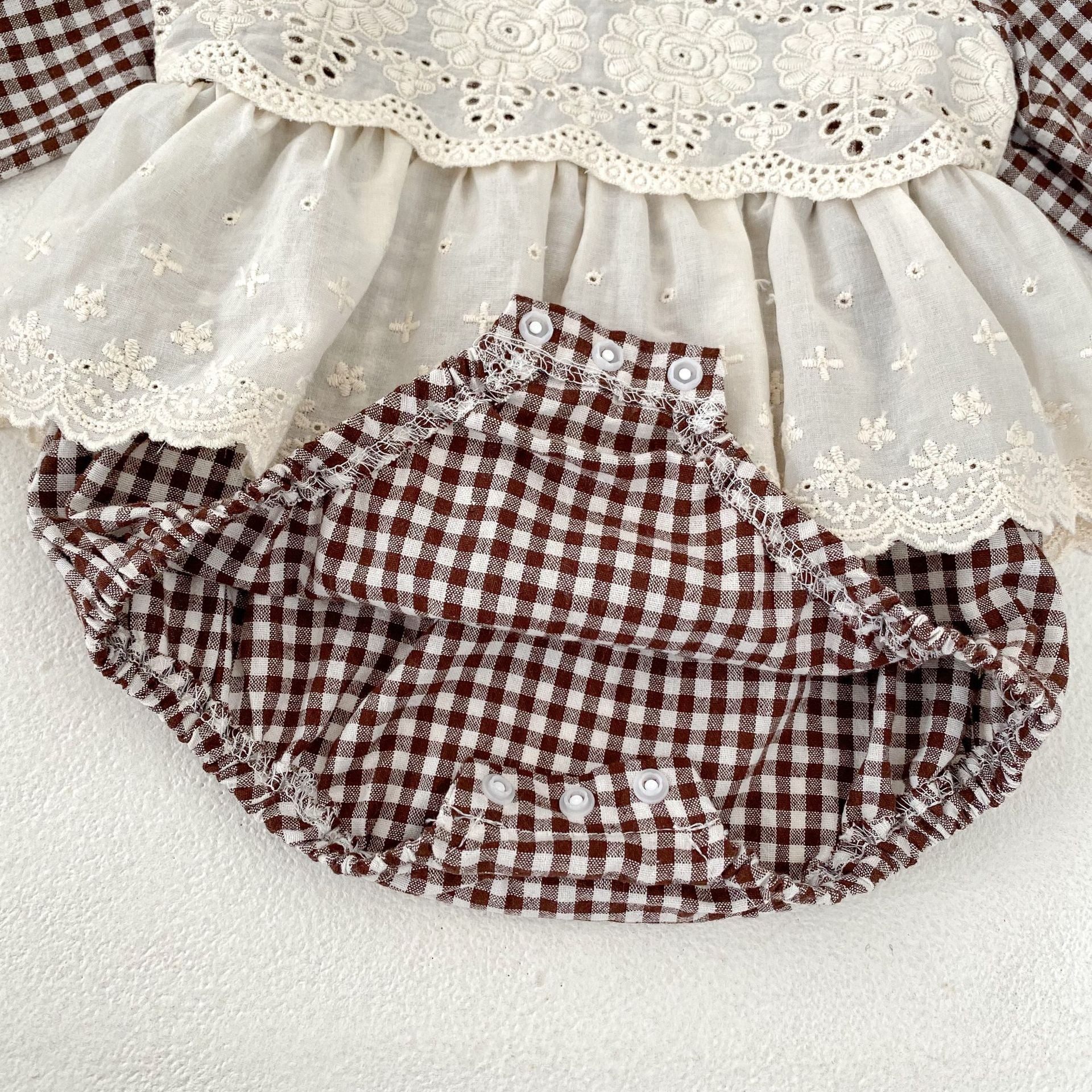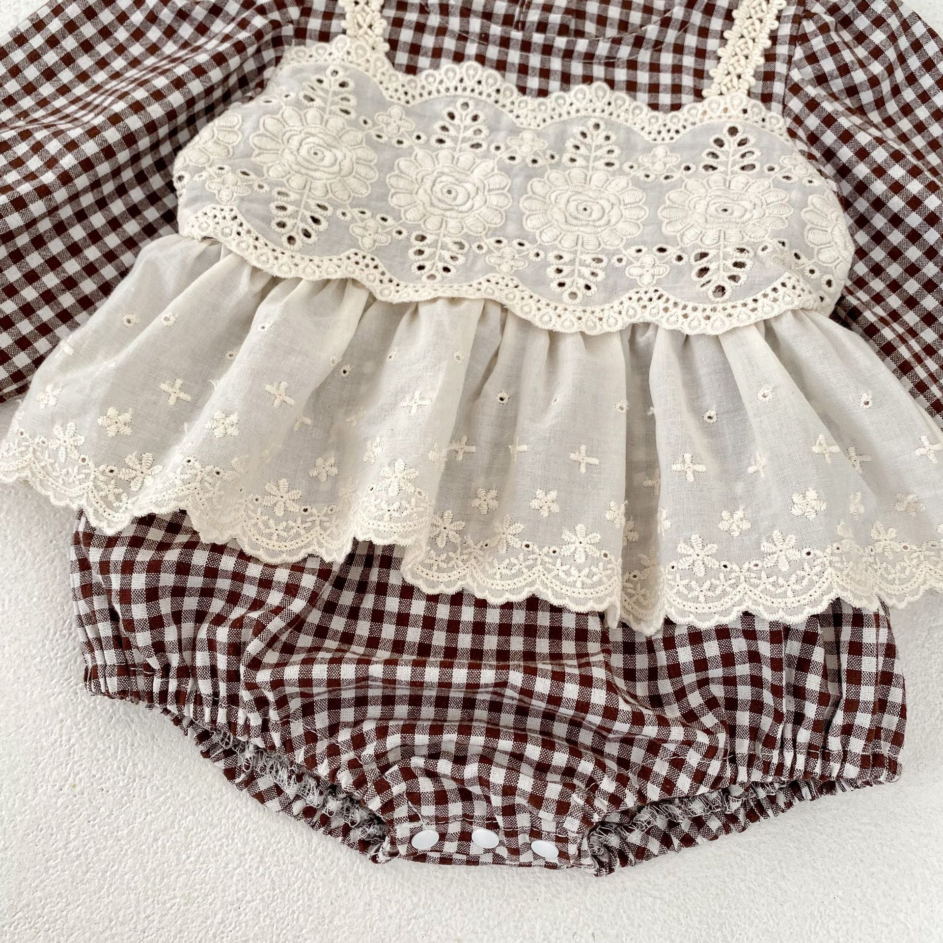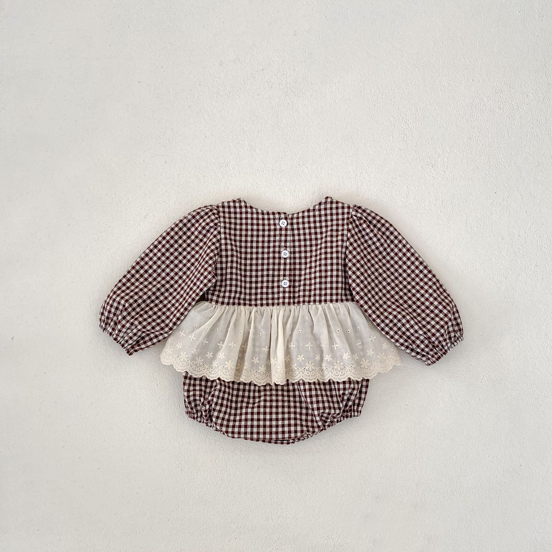 【BABY】ブラウンチェックレイヤードロンパースSK031008