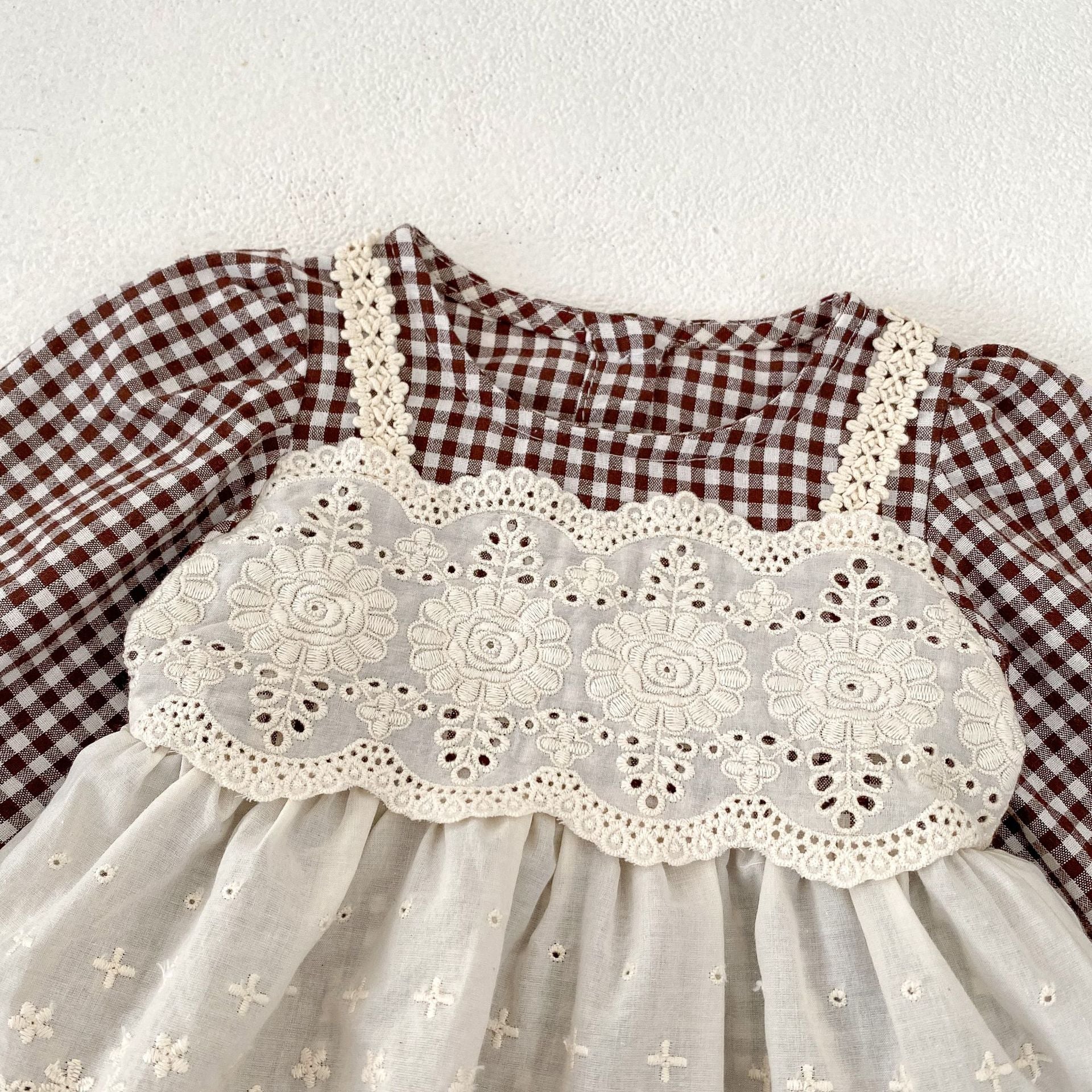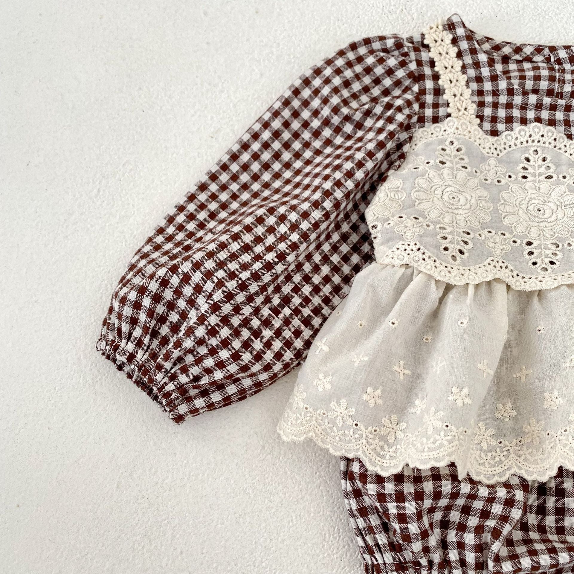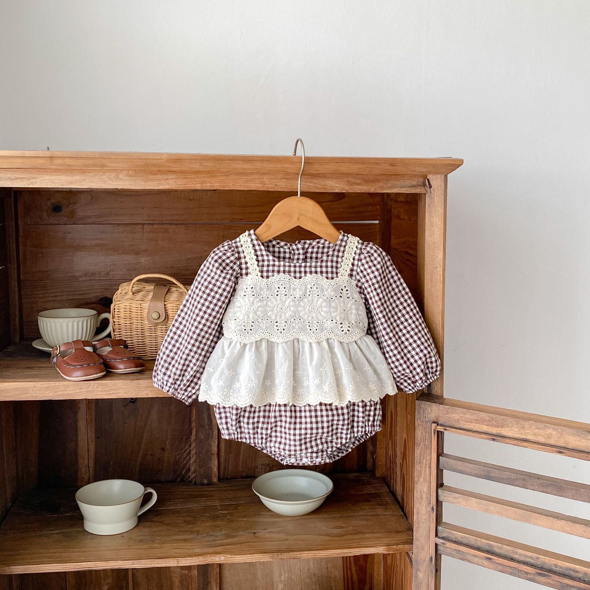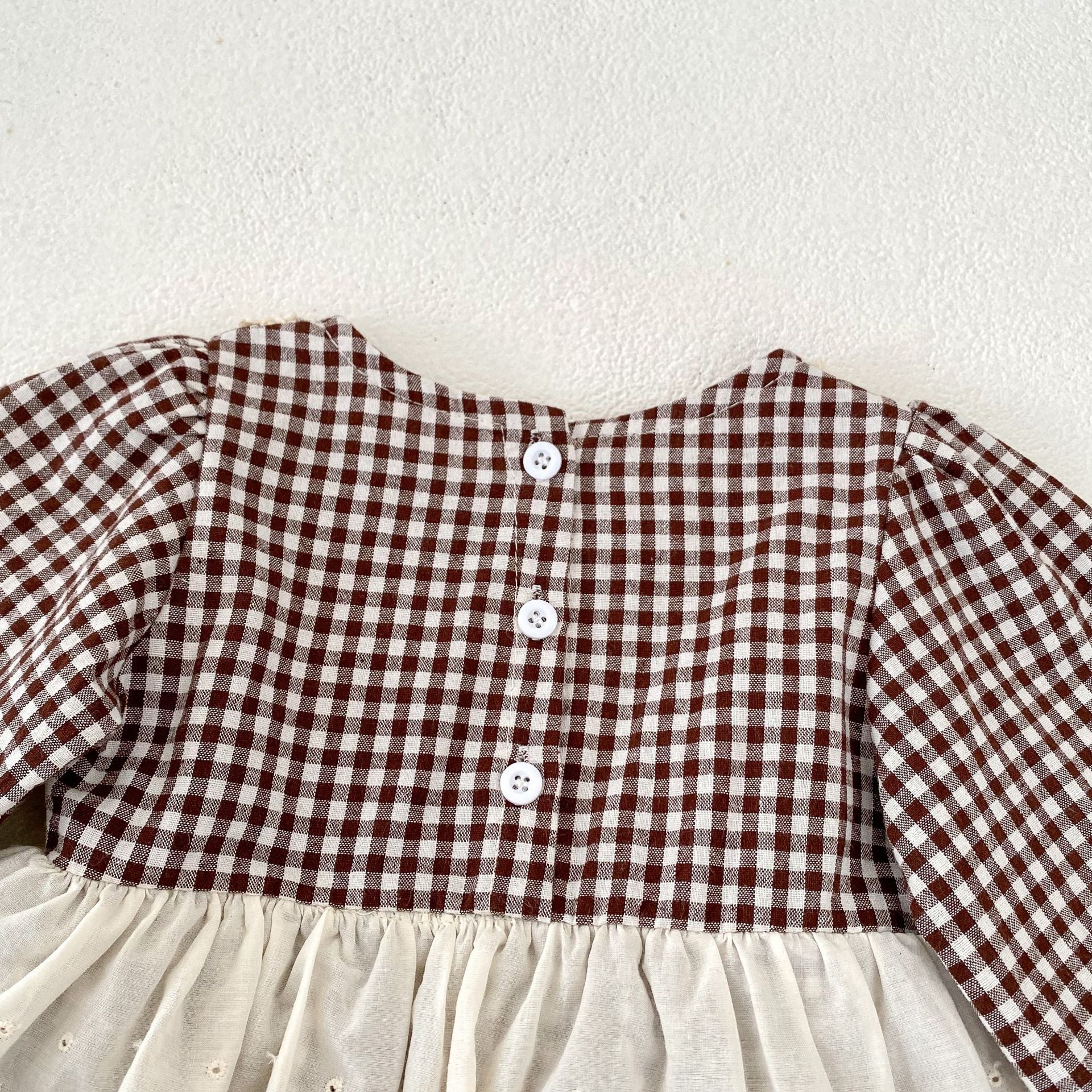 【BABY】ブラウンチェックレイヤードロンパースSK031008