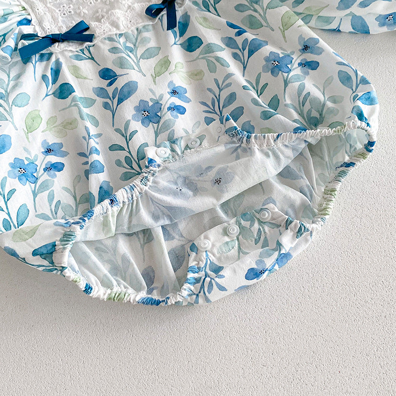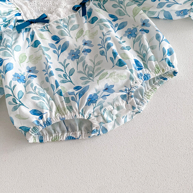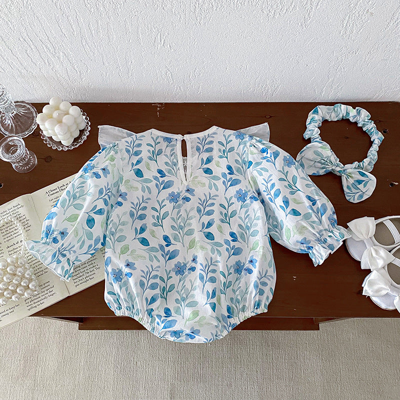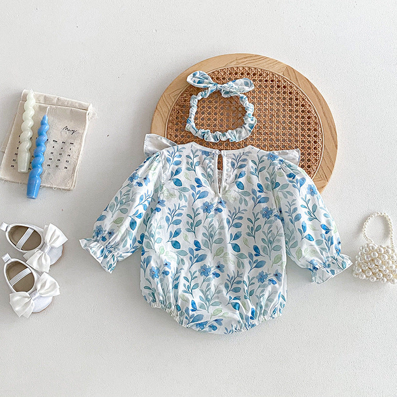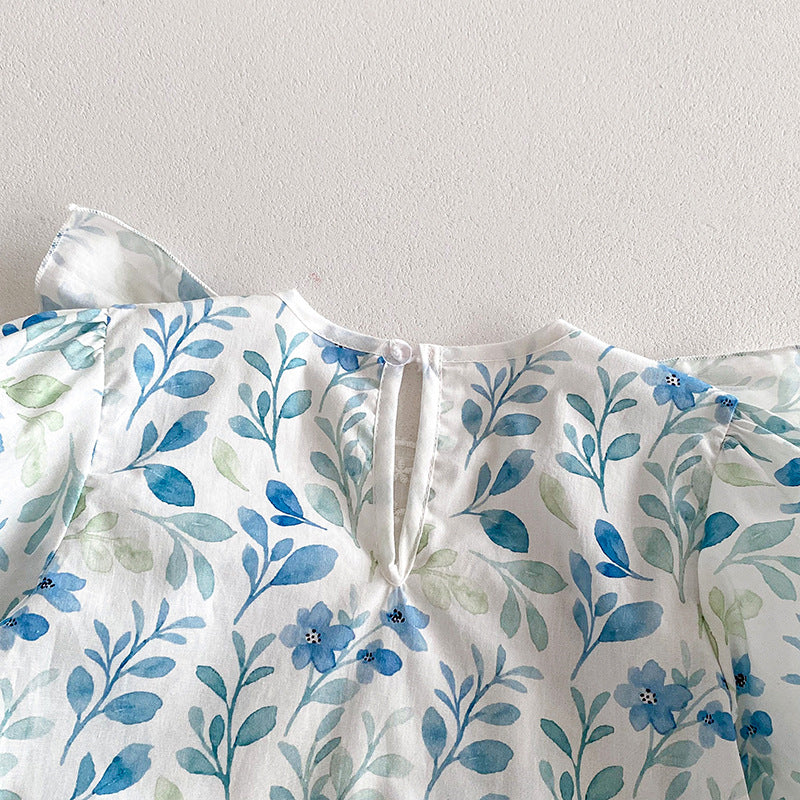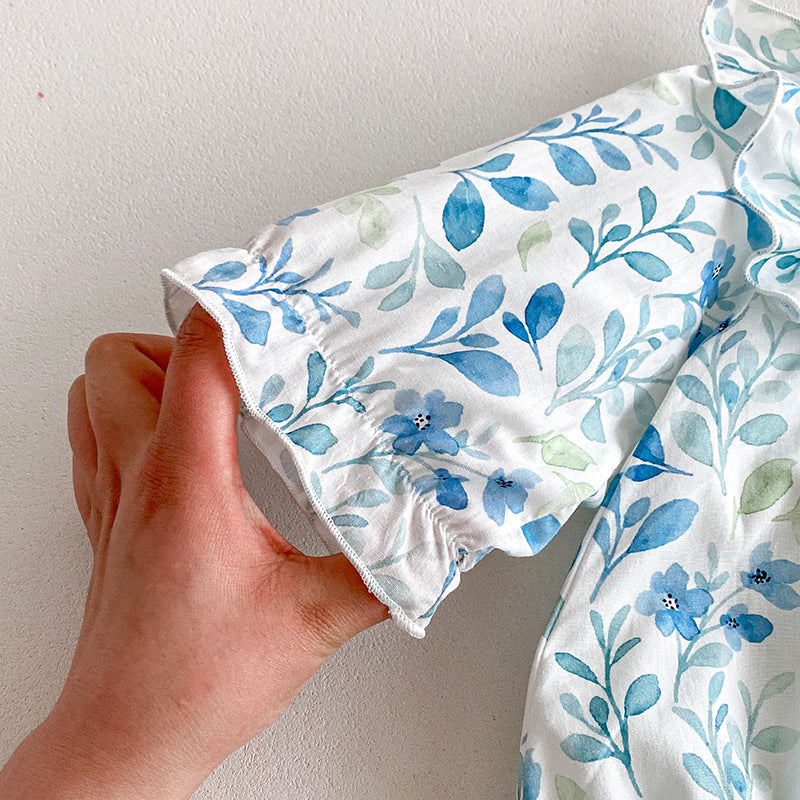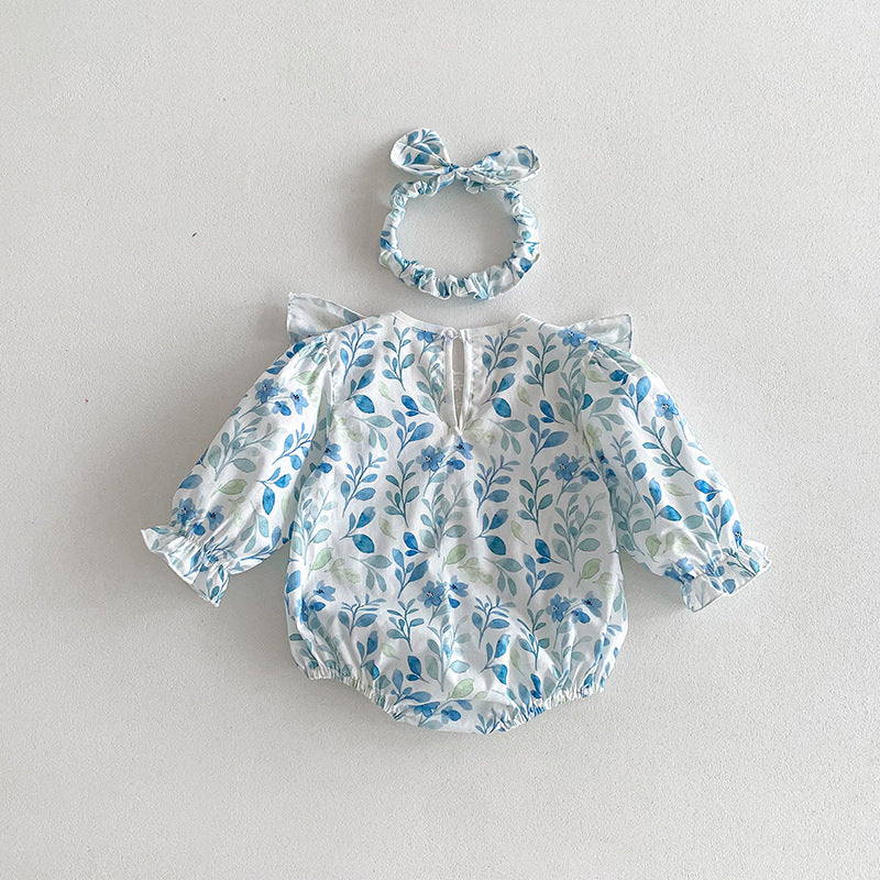 【BABY】ブルーフラワーフリル袖ロンパースSK101101