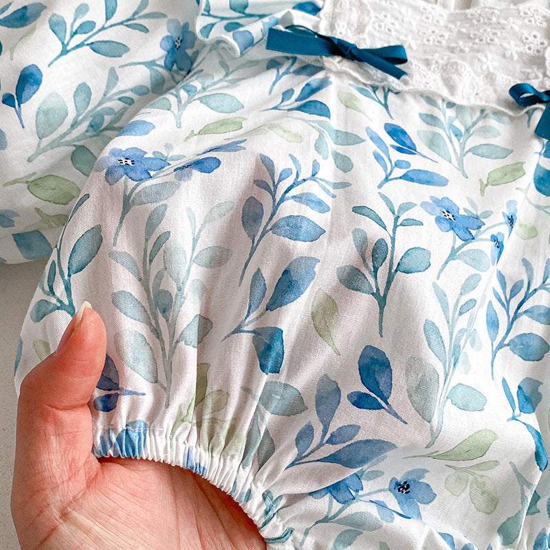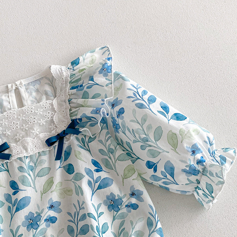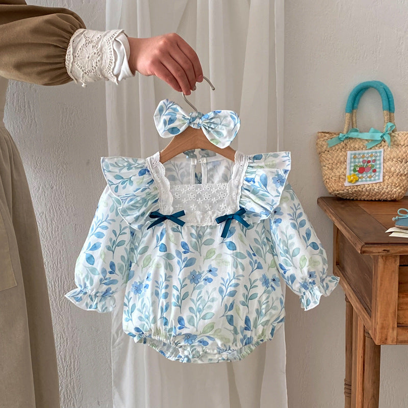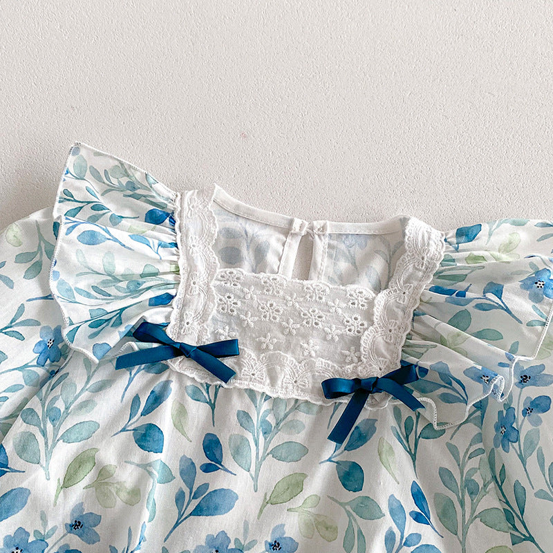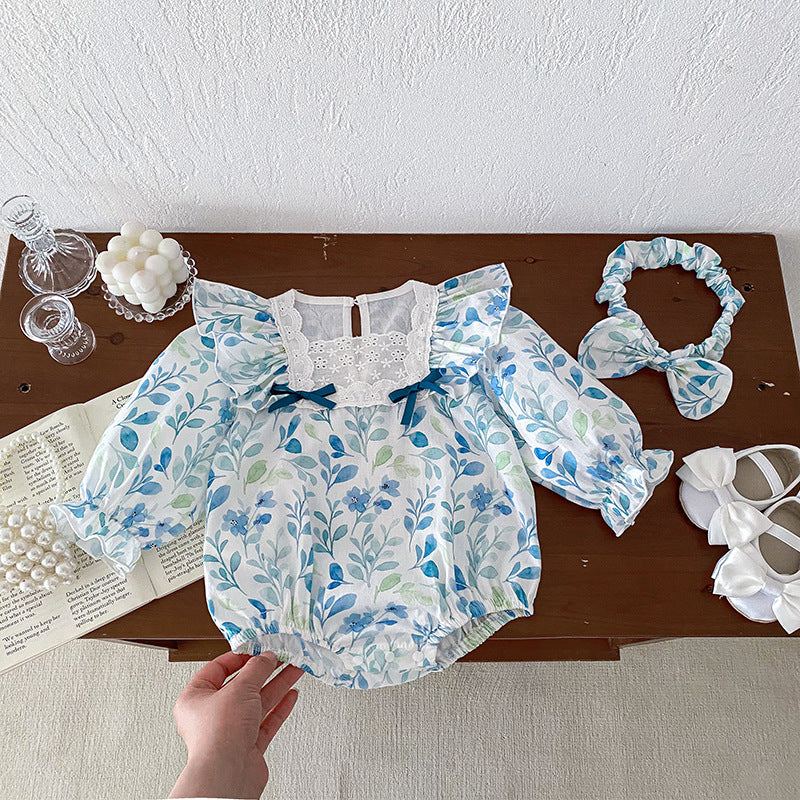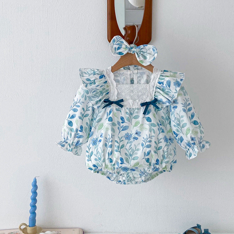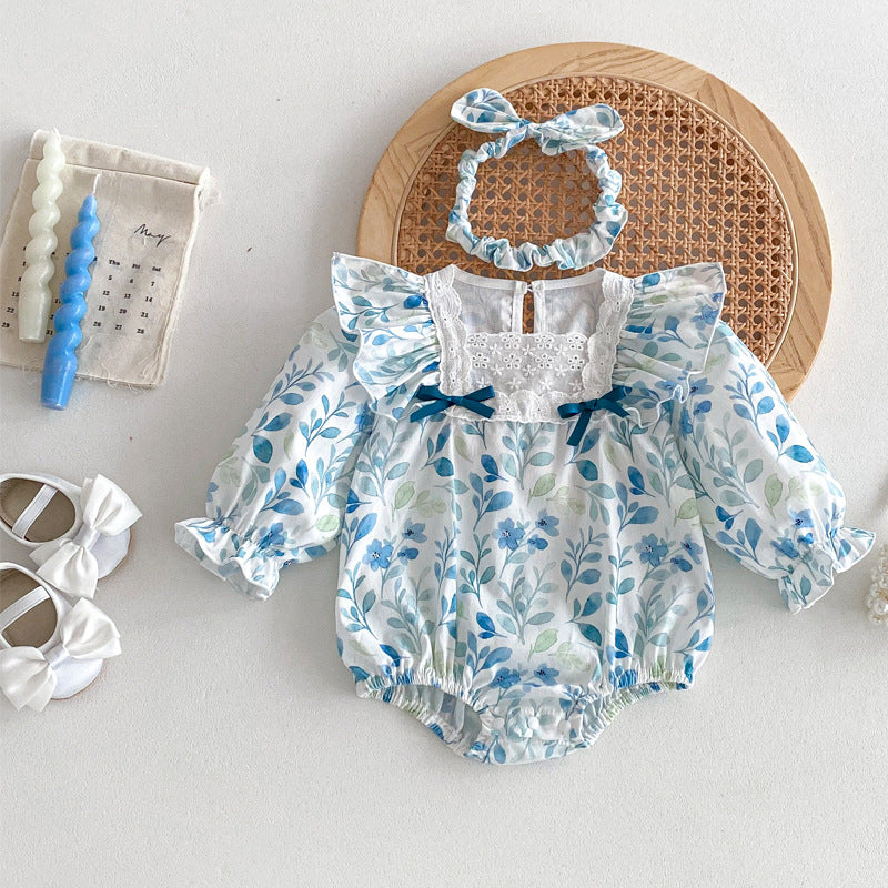 【BABY】ブルーフラワーフリル袖ロンパースSK101101