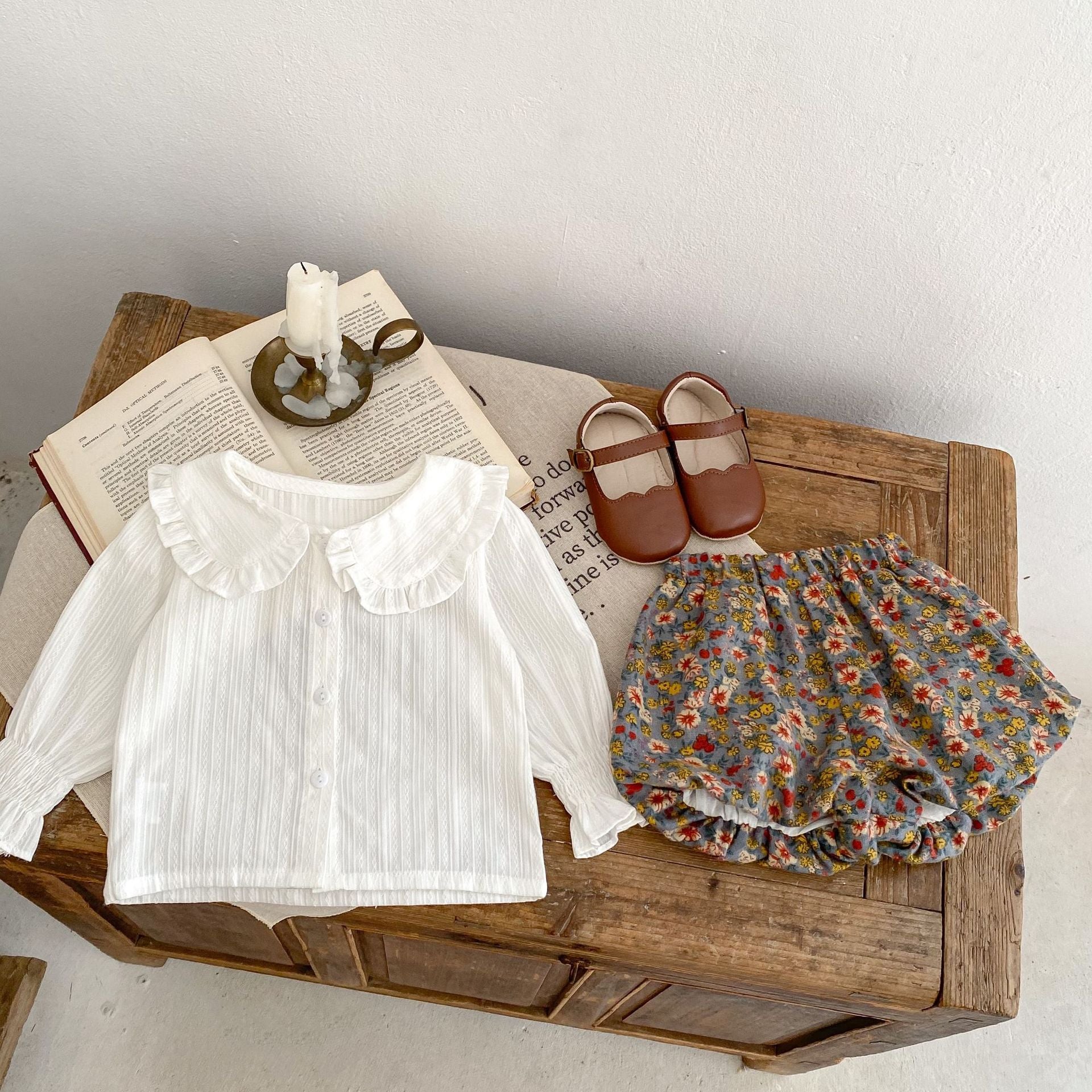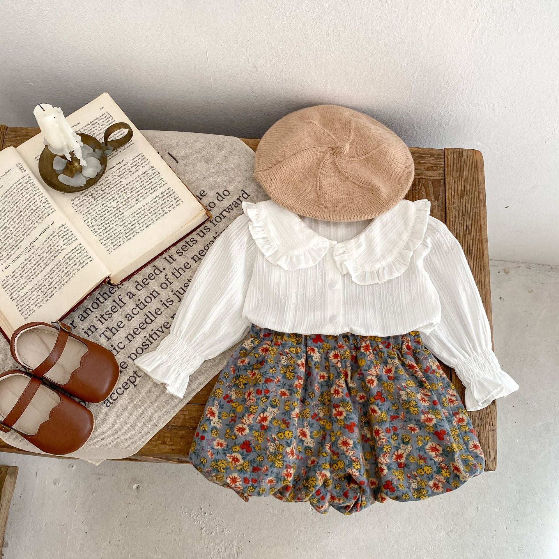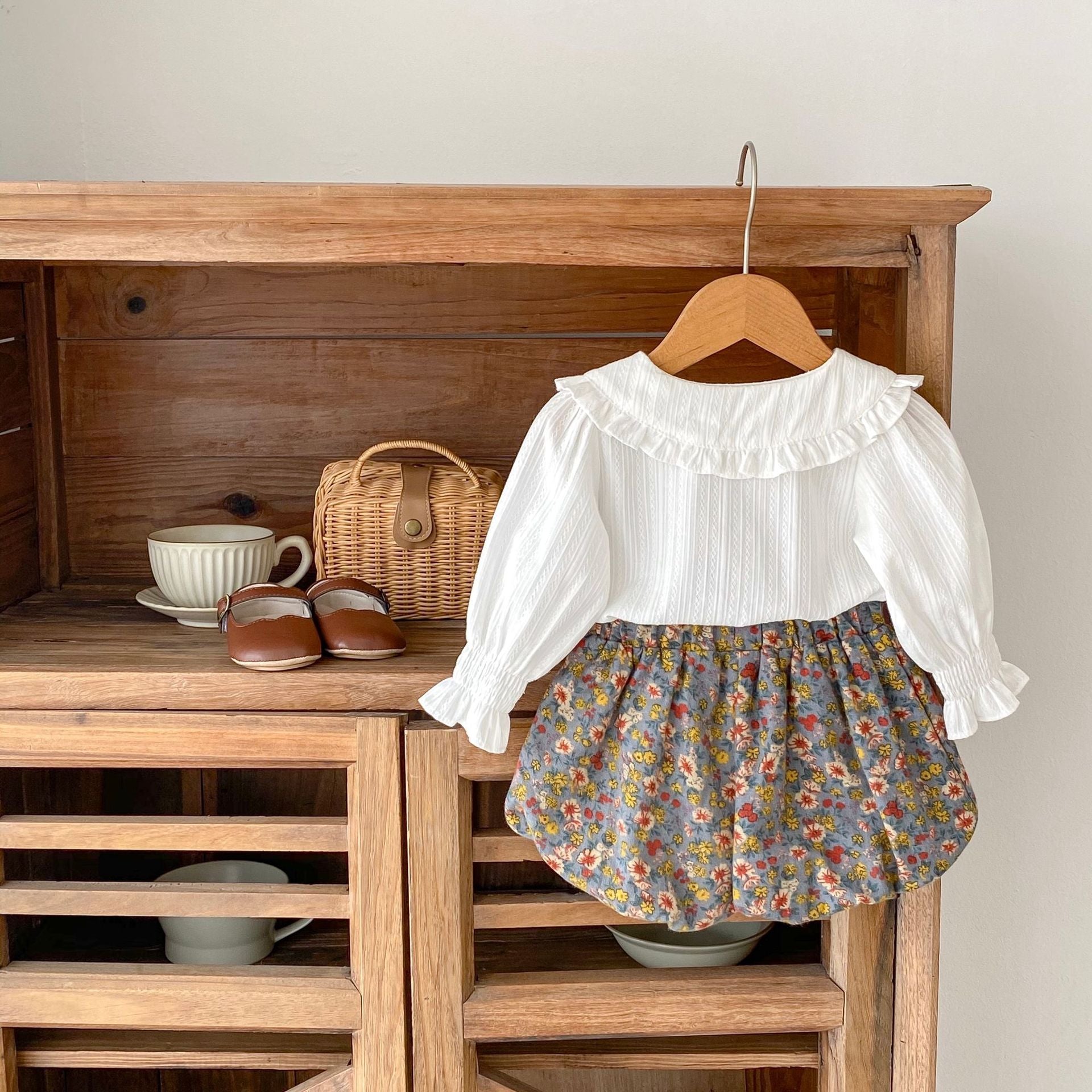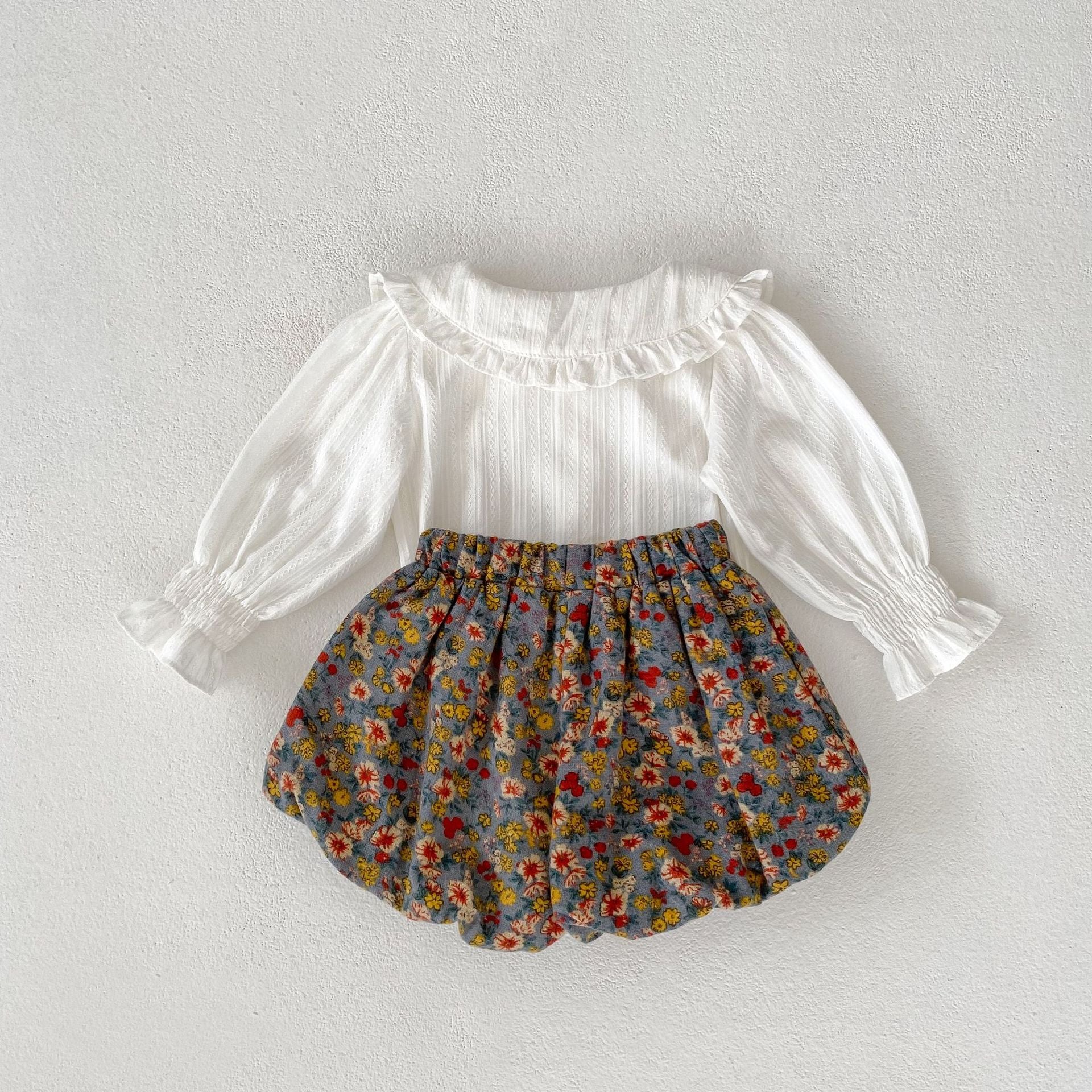 【BABY】ホワイトブラウス&花柄ブルマセットSK061701