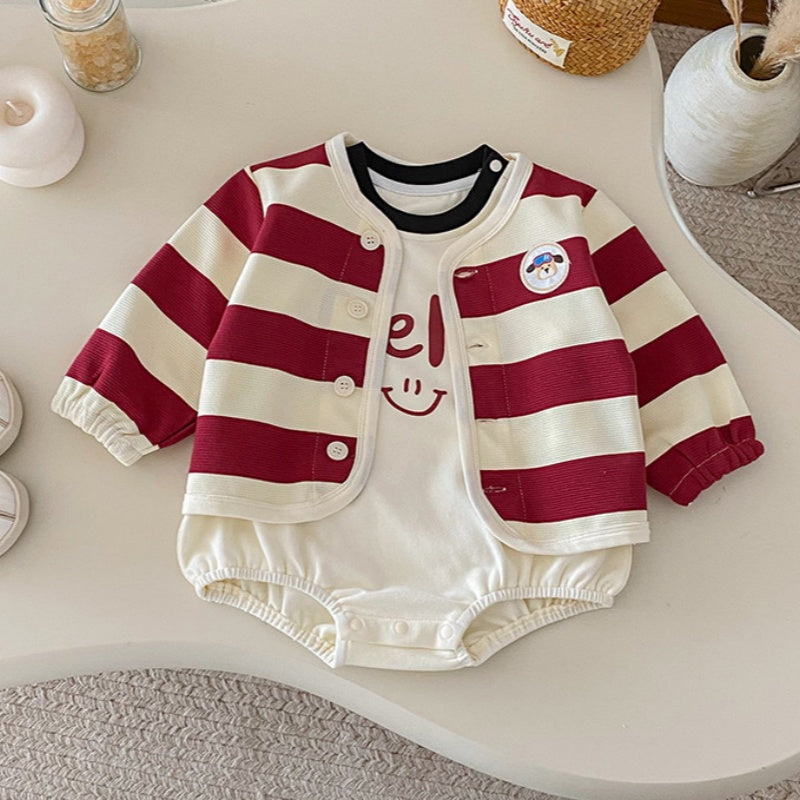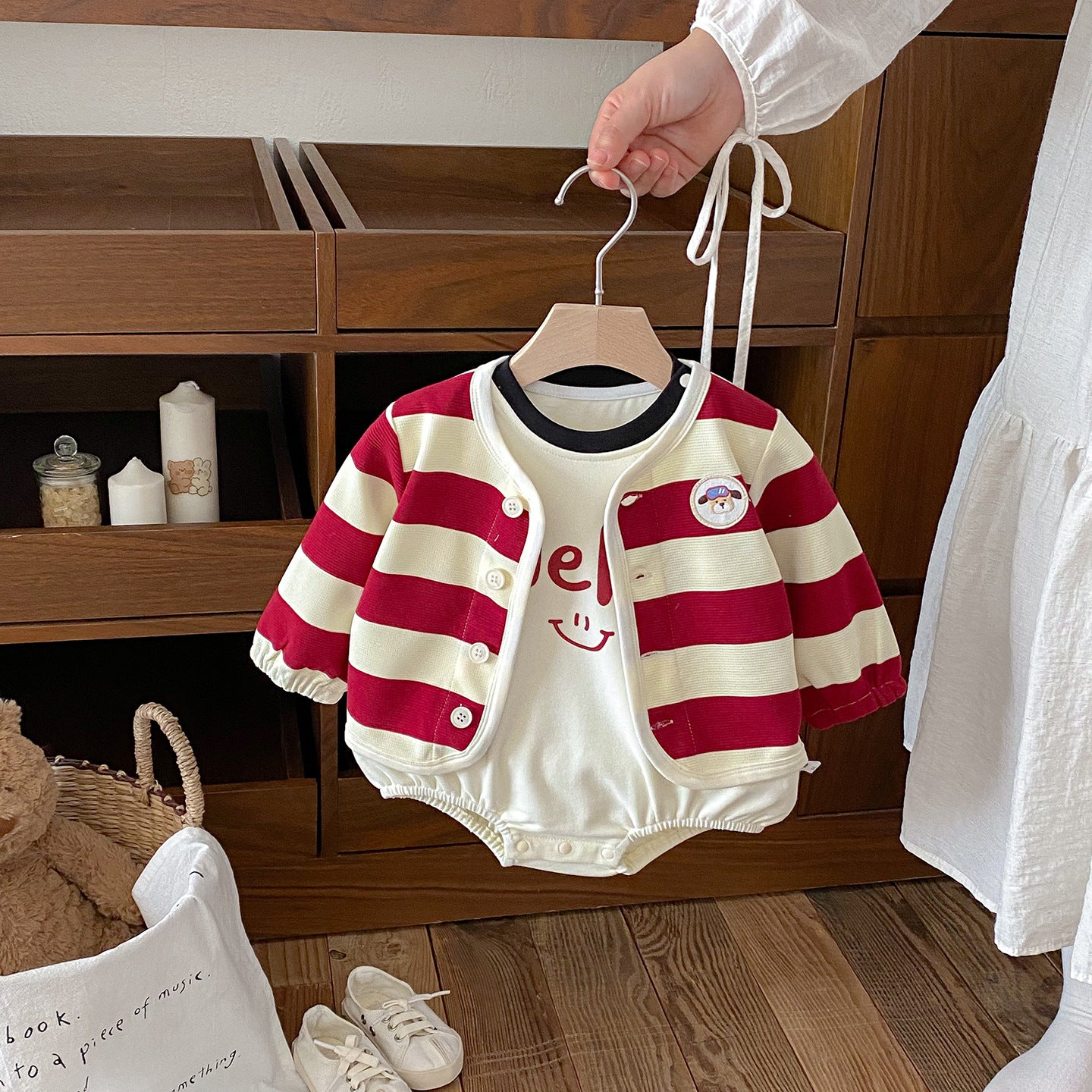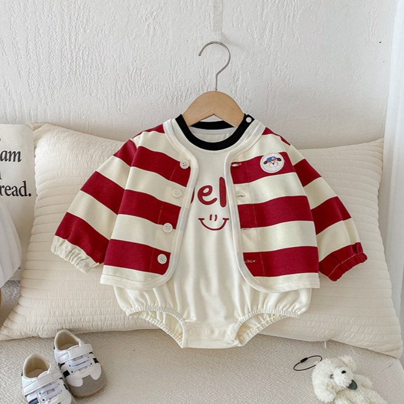 【BABY】ボーダーカーディガン&スマイルロンパースSK100420