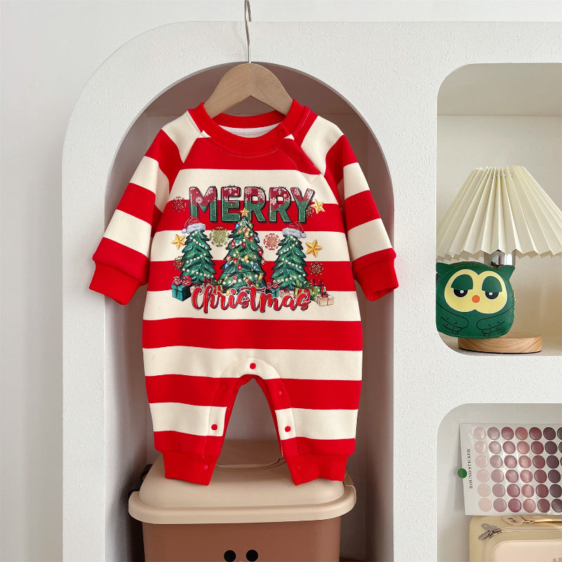 【BABY】ボーダークリスマスツリーあったかカバーオールSK103204