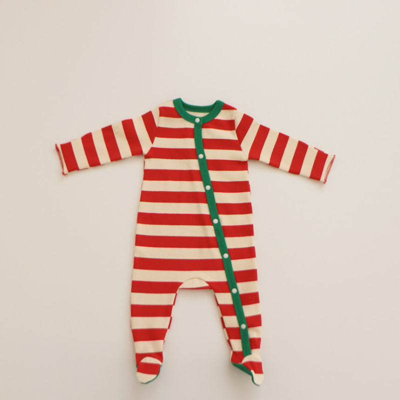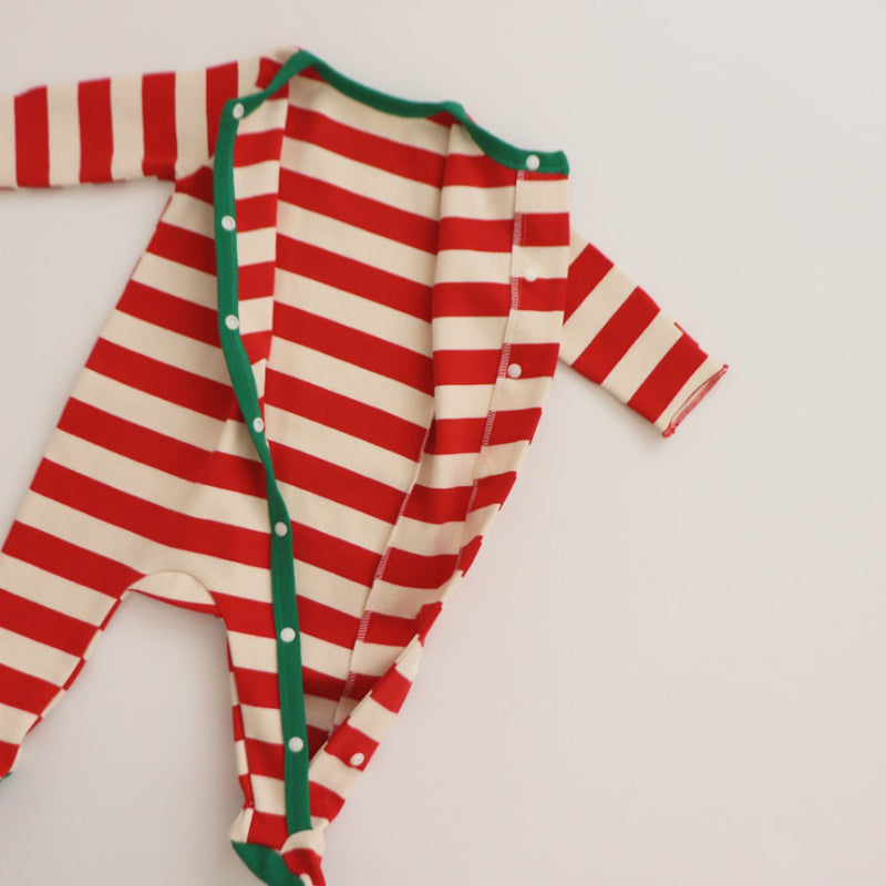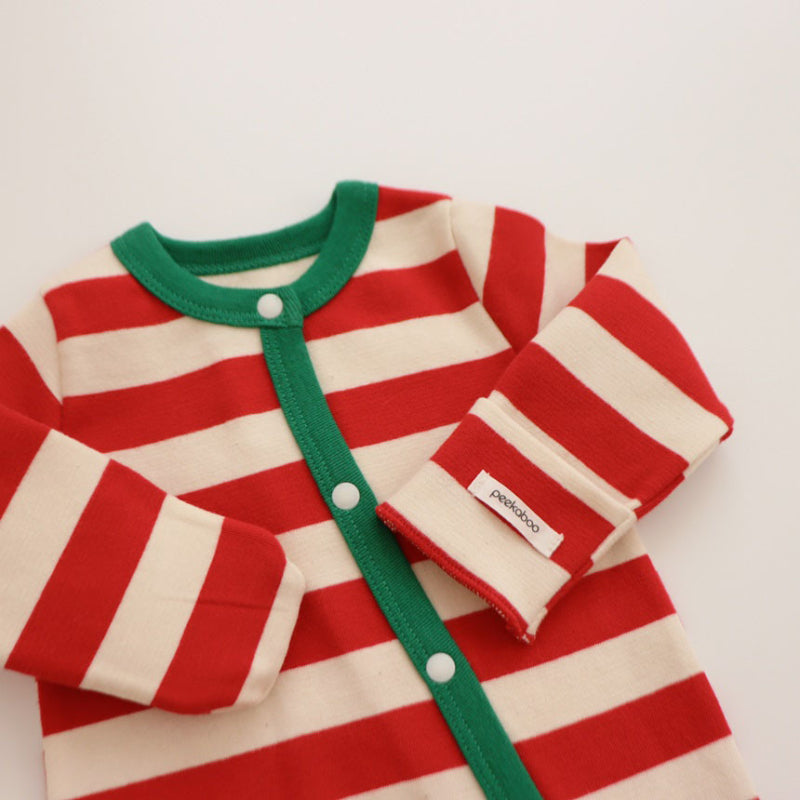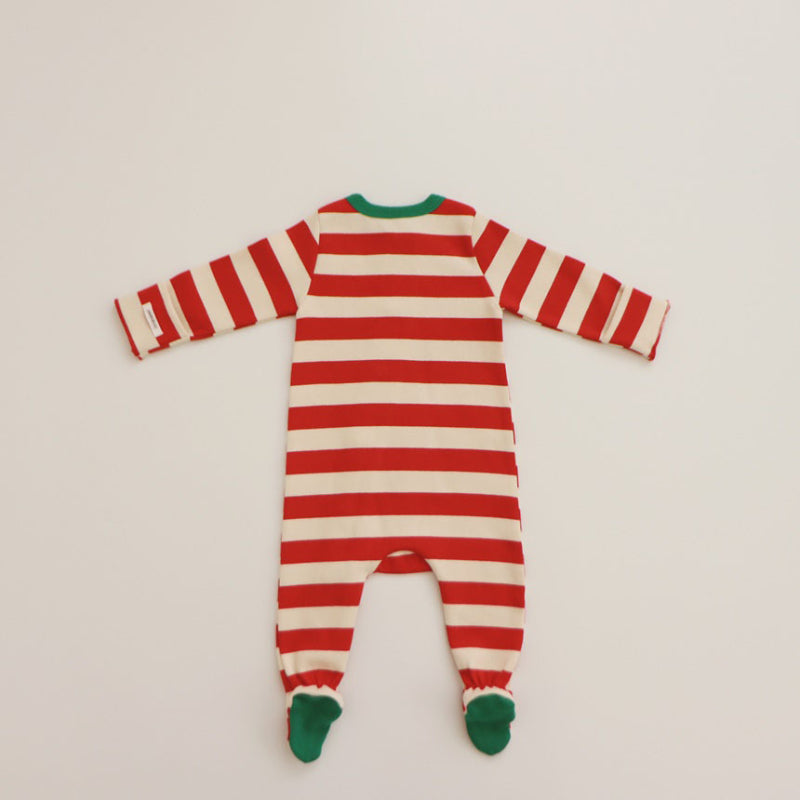 【BABY】ボーダークリスマス風カバーオール&帽子セットSK102810