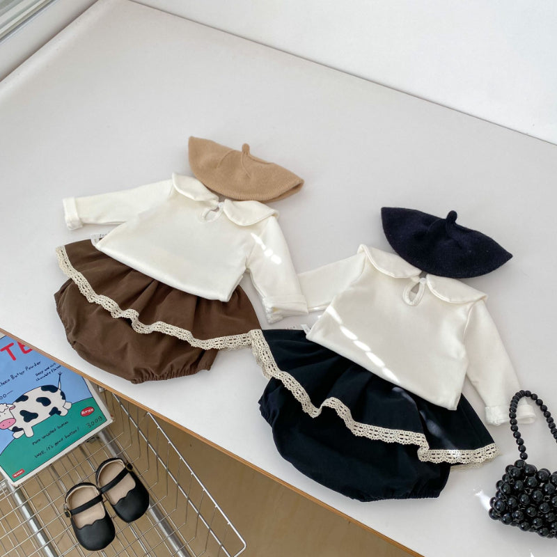 【BABY】リボンカラー長袖ブラウス、フリルブルマSK100737