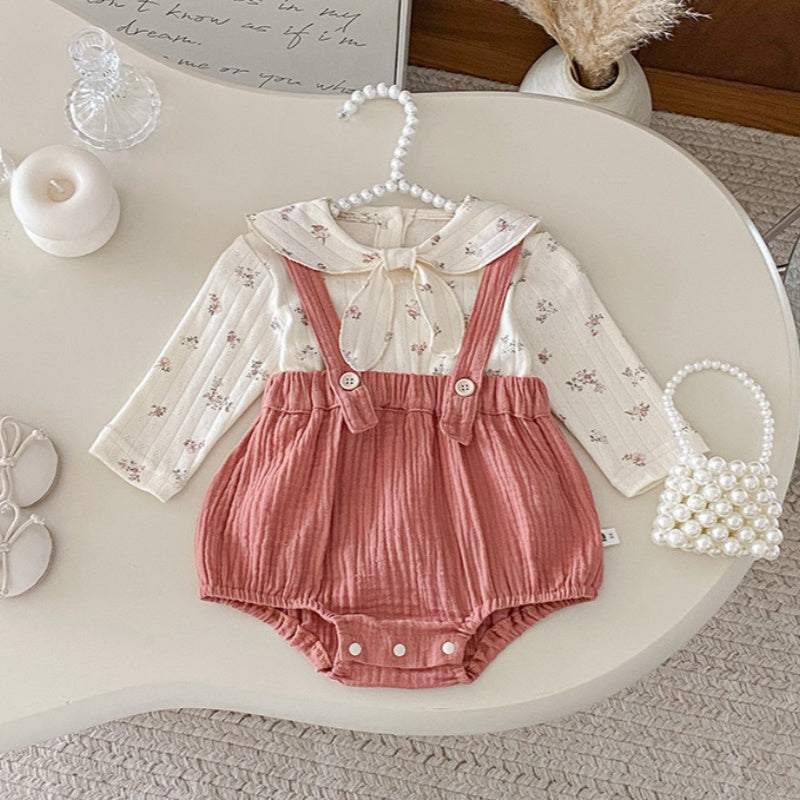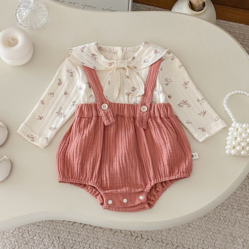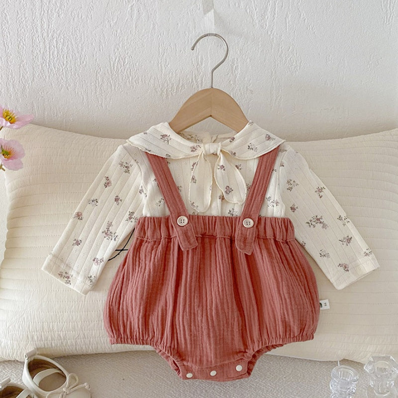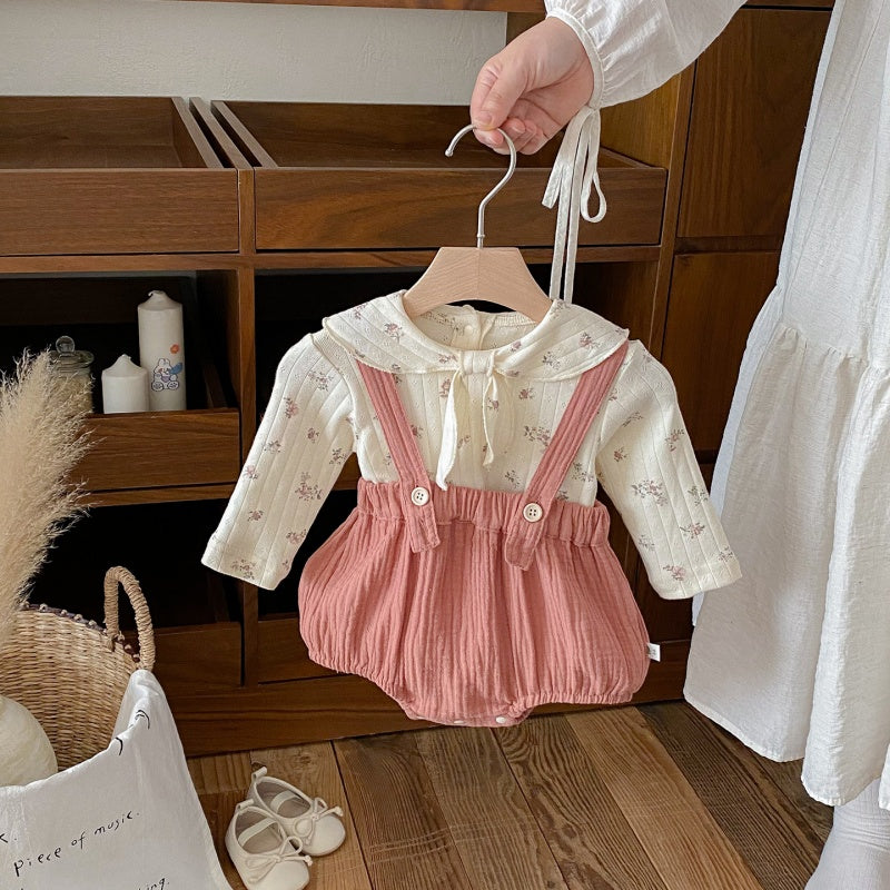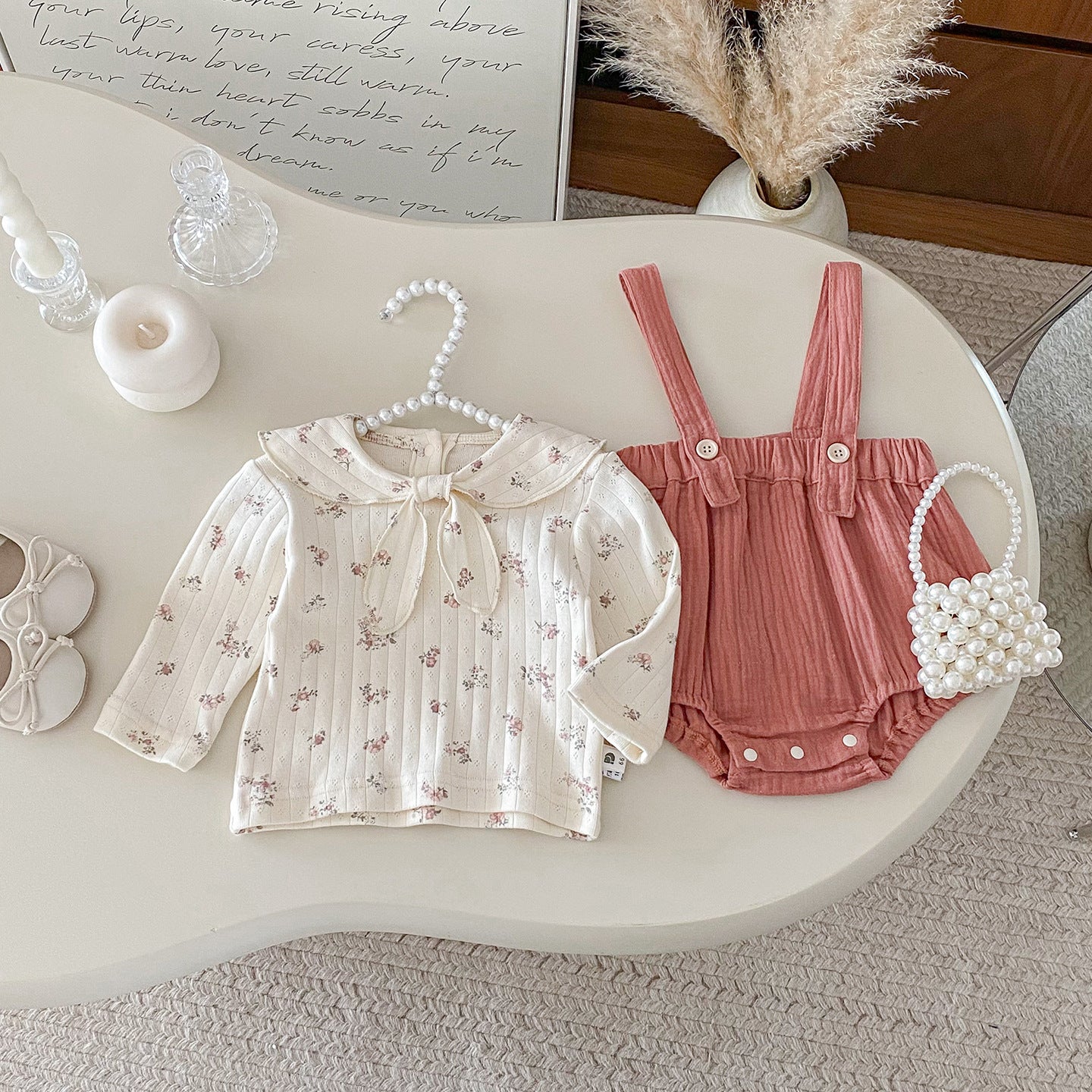 【BABY】リボン結び小花柄トップス&サロペットロンパースSK100440