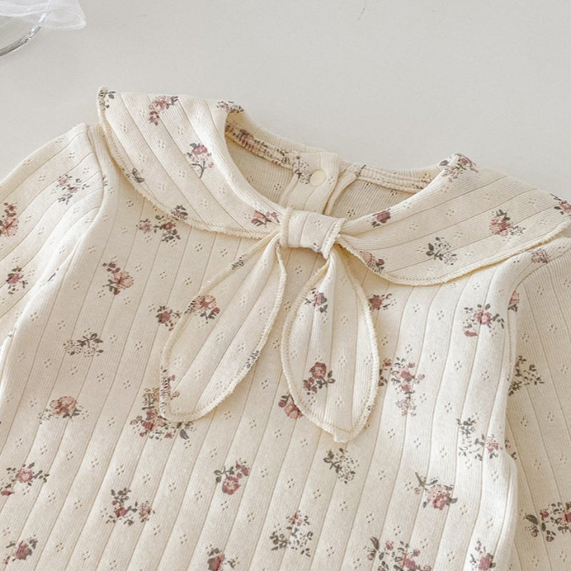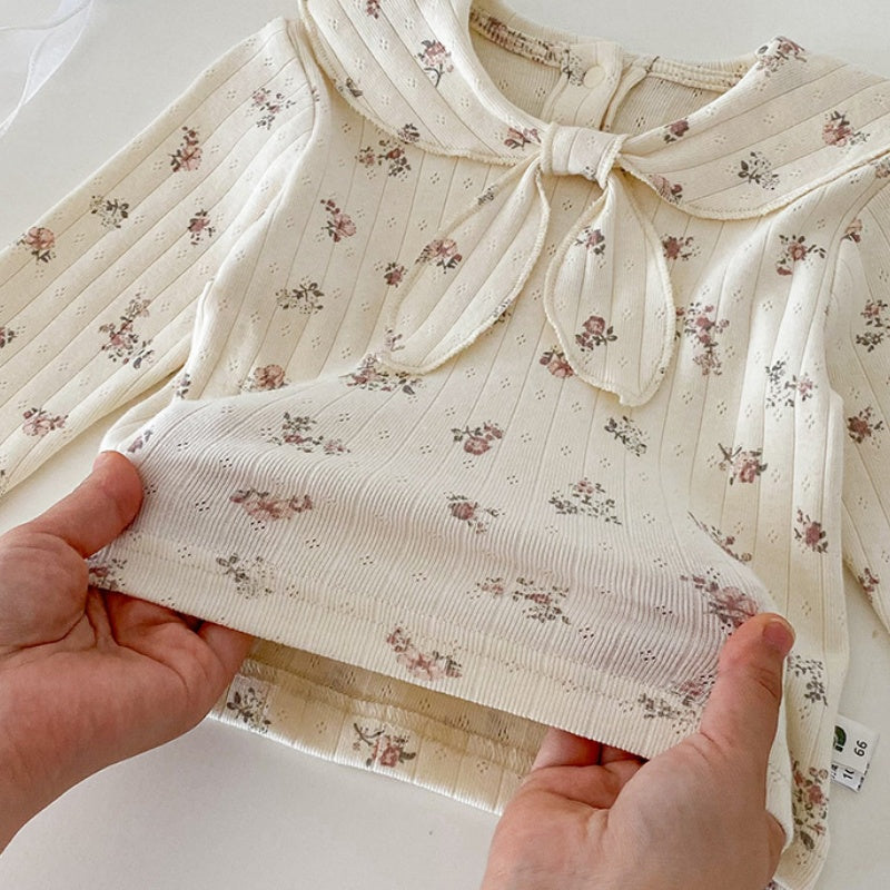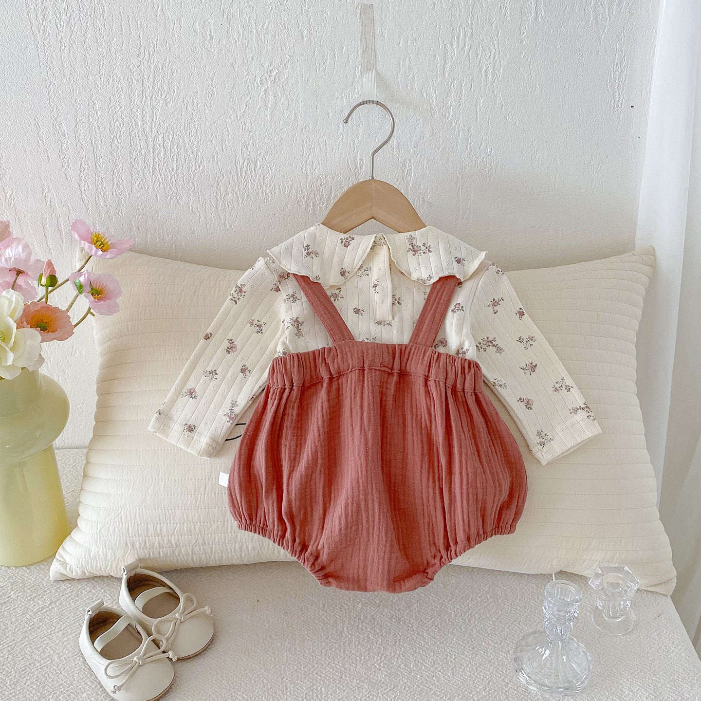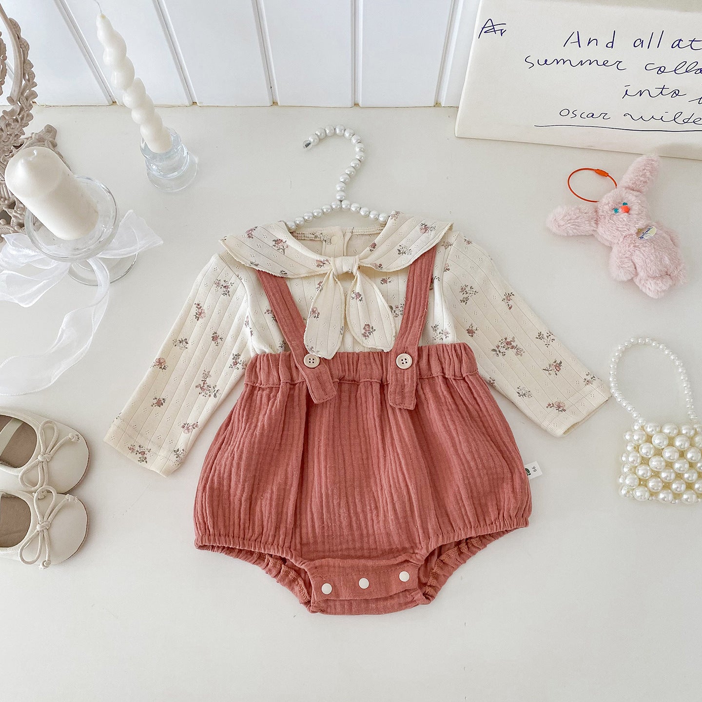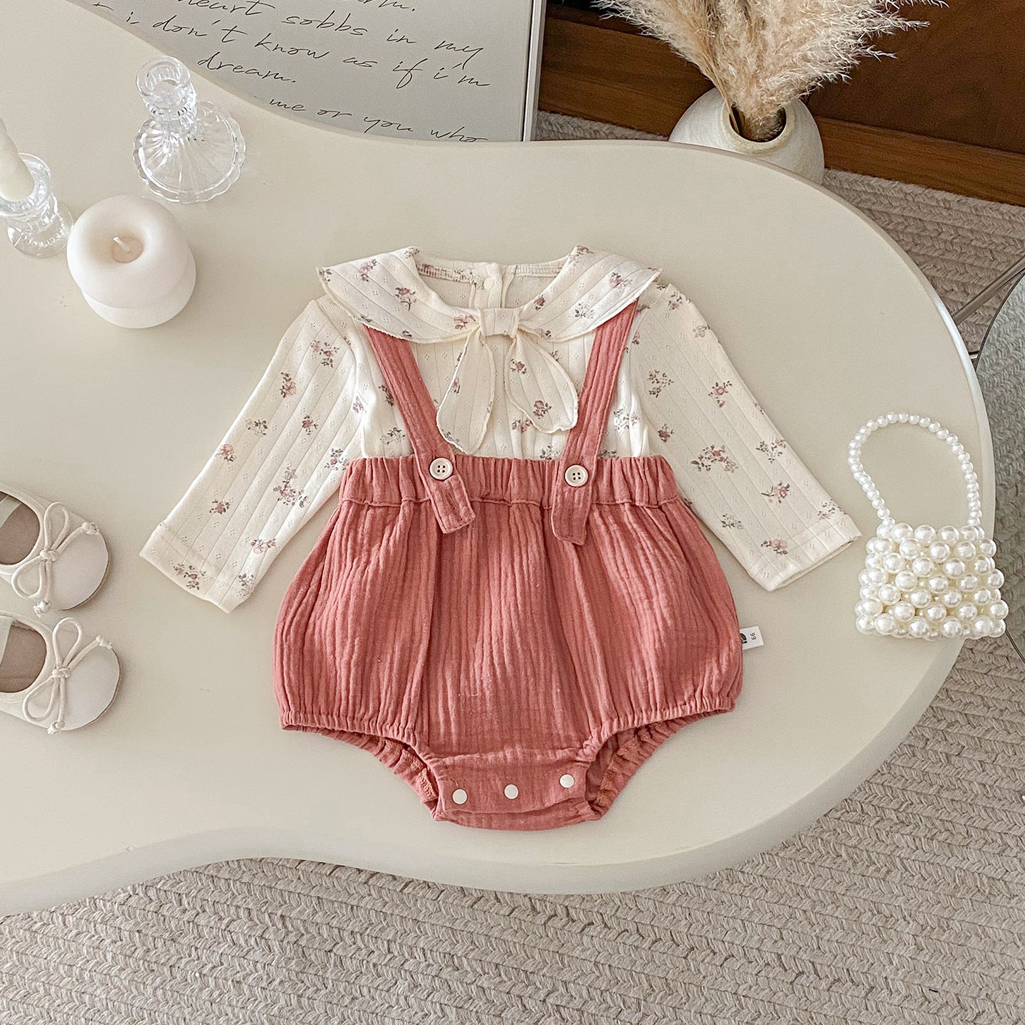 【BABY】リボン結び小花柄トップス&サロペットロンパースSK100440