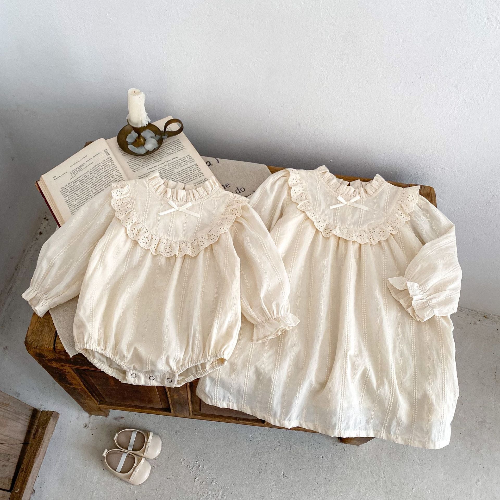 【BABY】レースクリームプリンセスロンパース、ワンピースSK030611