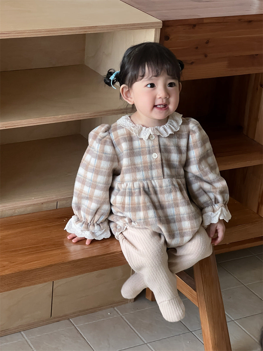 【BABY】レースチェック柄ロンパースSK11522