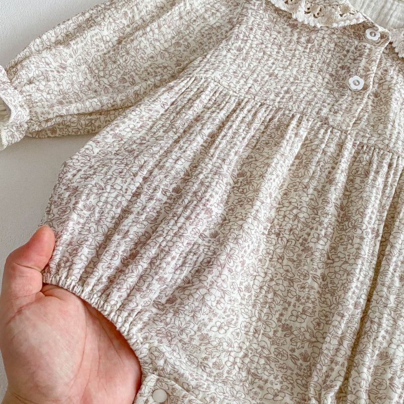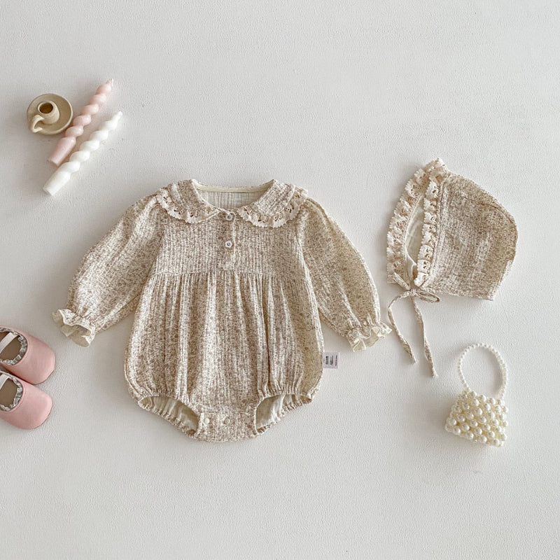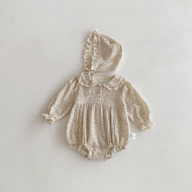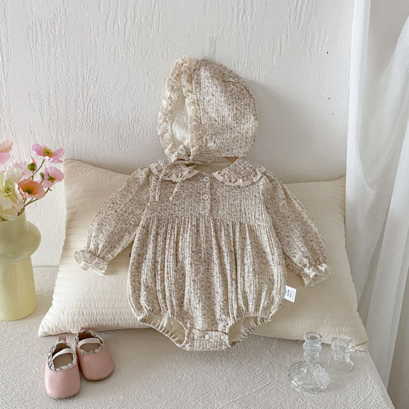 【BABY】丸襟小花柄ロンパース&帽子SK102313