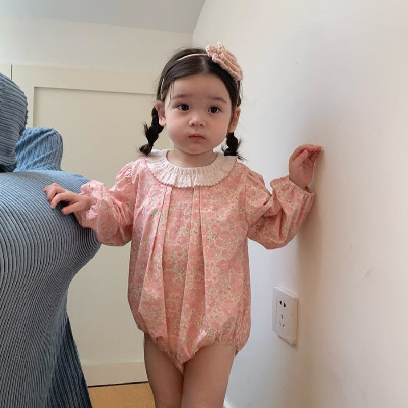 【BABY-予約限定】おしゃれラウンドカラー小花柄ロンパースSK101214