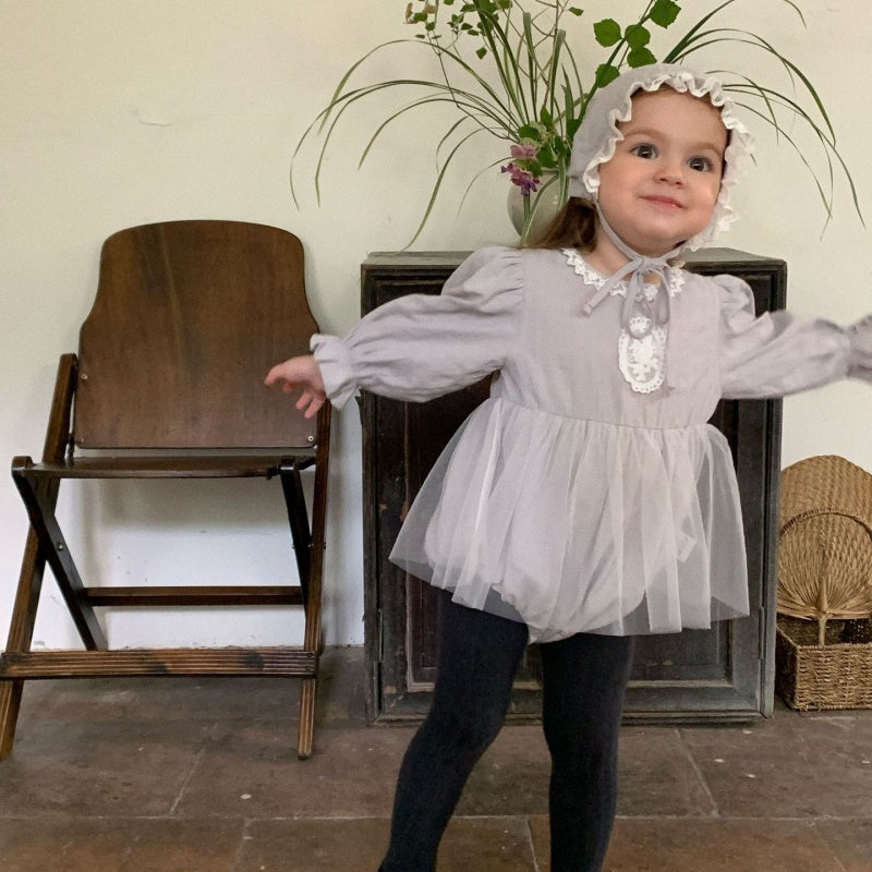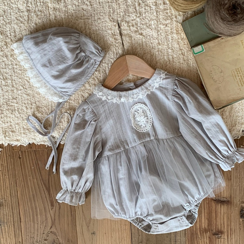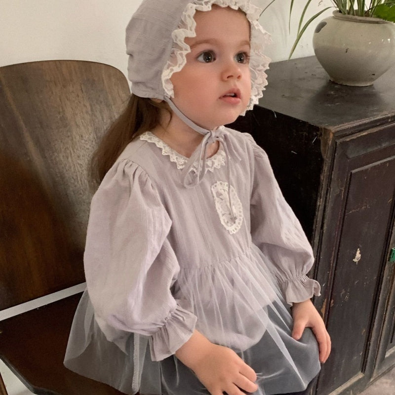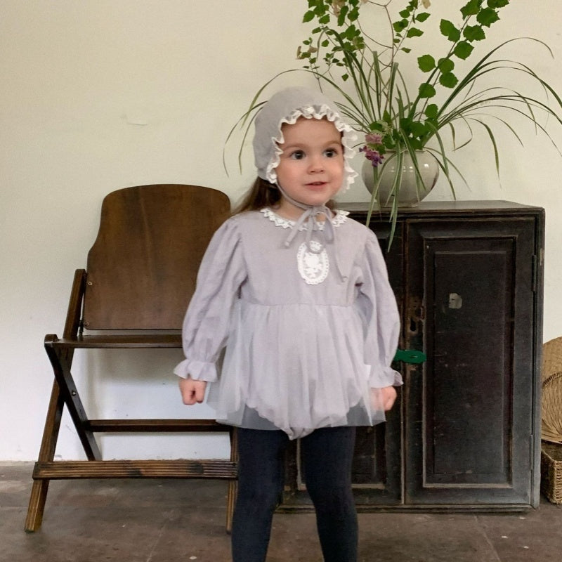 【BABY-予約限定】韓国風チュール切替えロンパース&帽子SK101205
