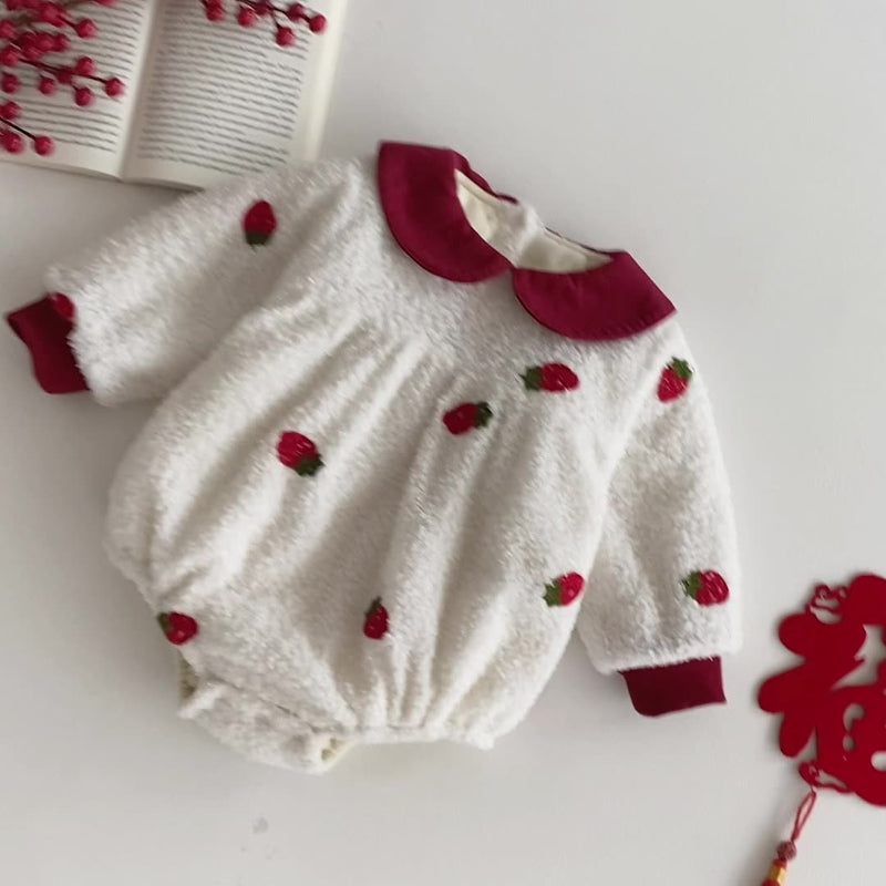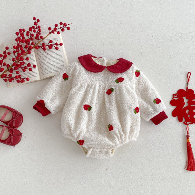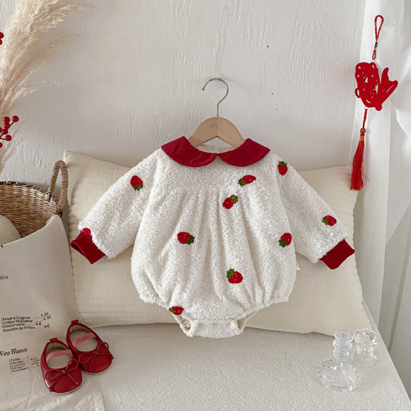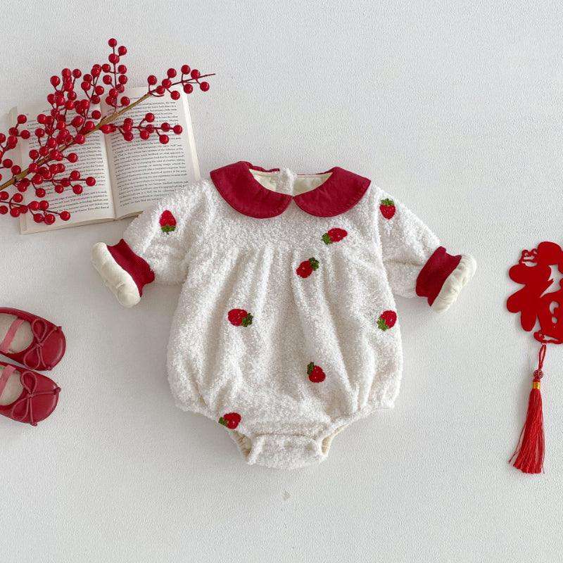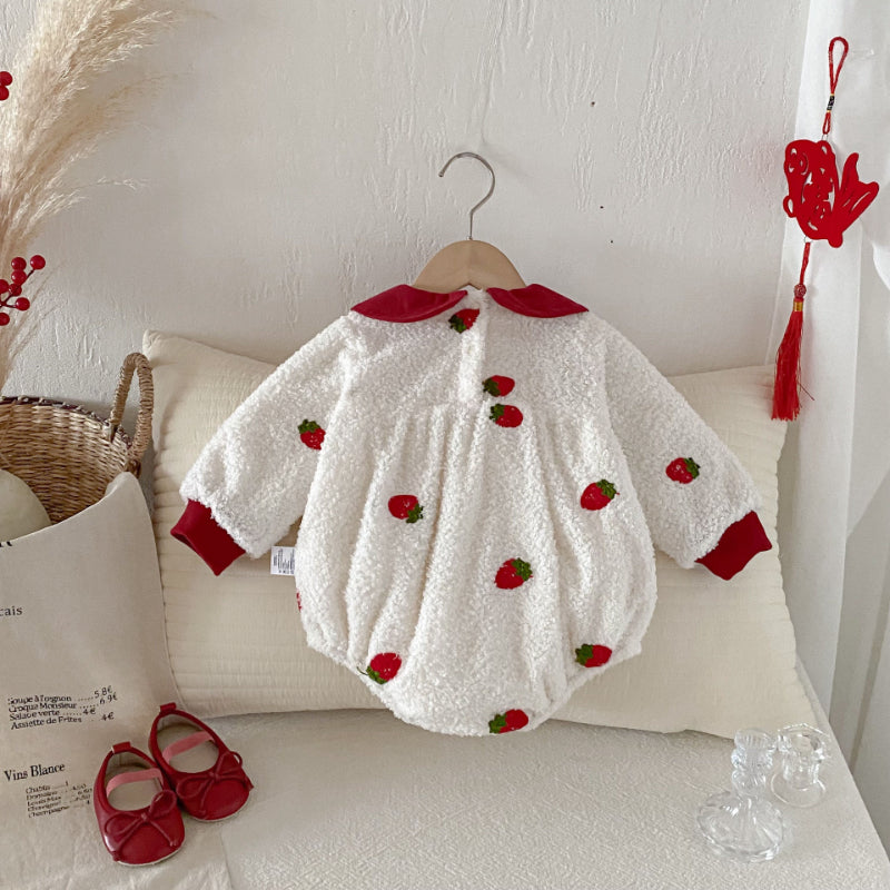 【BABY】冬新作いちご裏起毛カバーオールSK102707