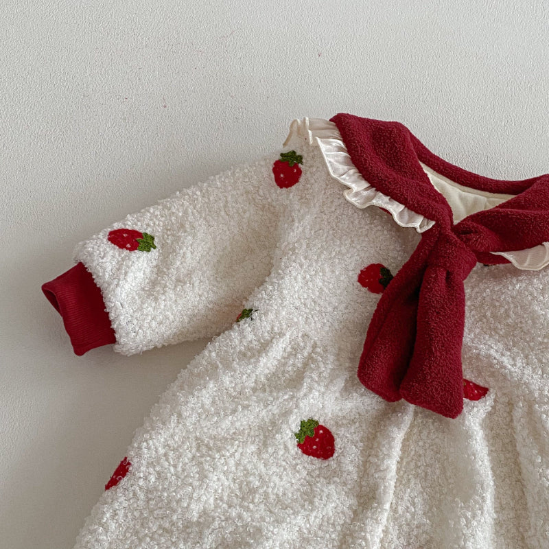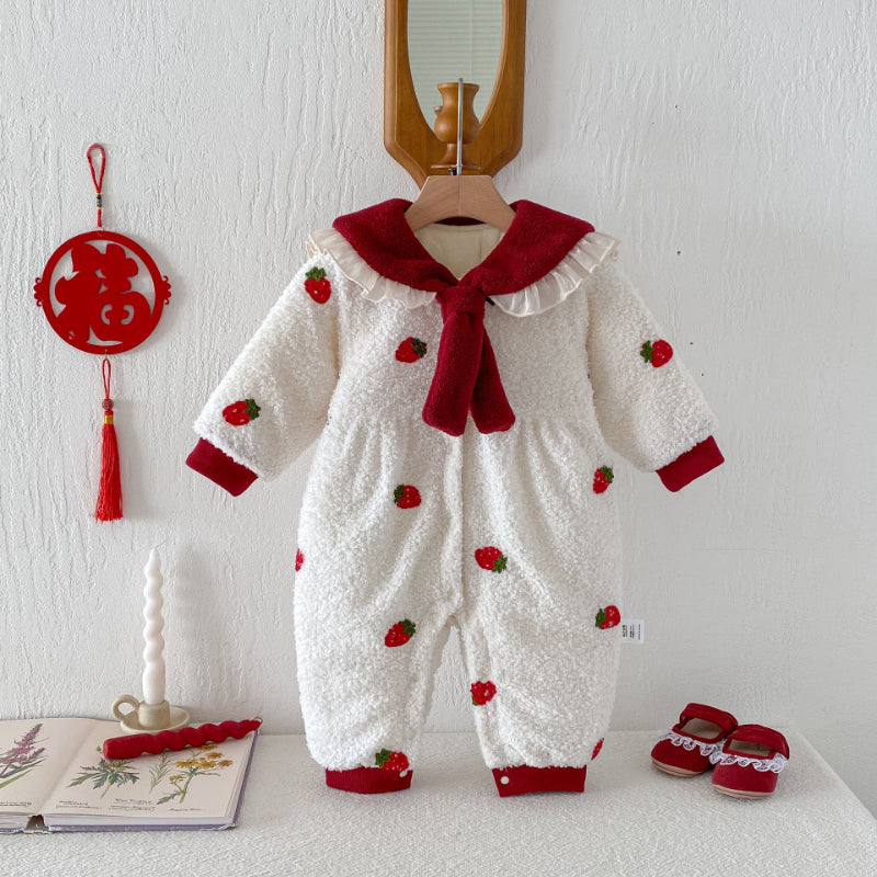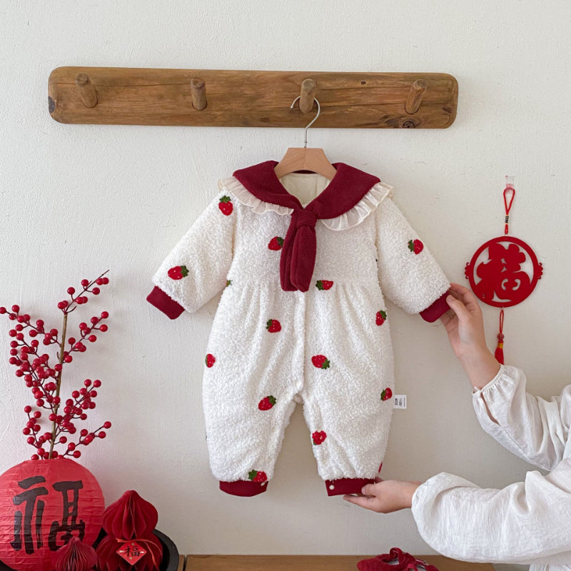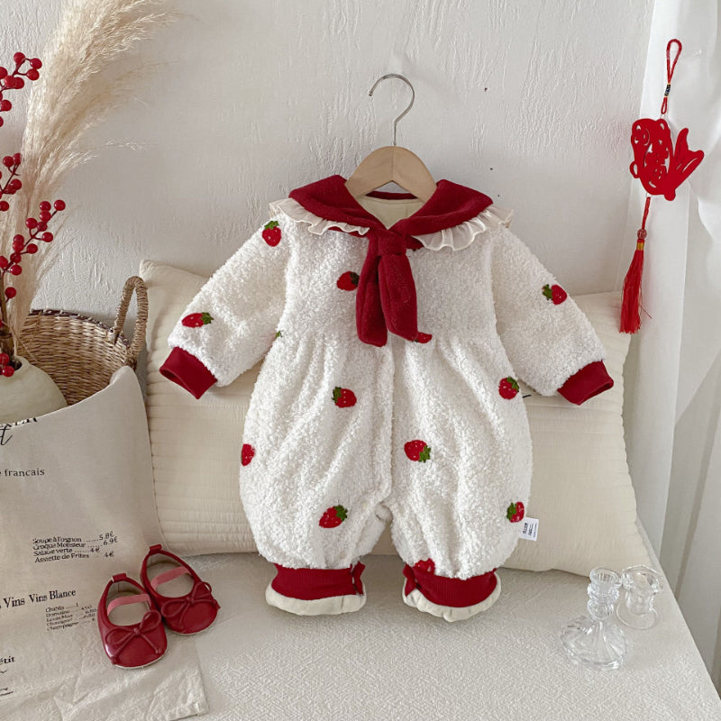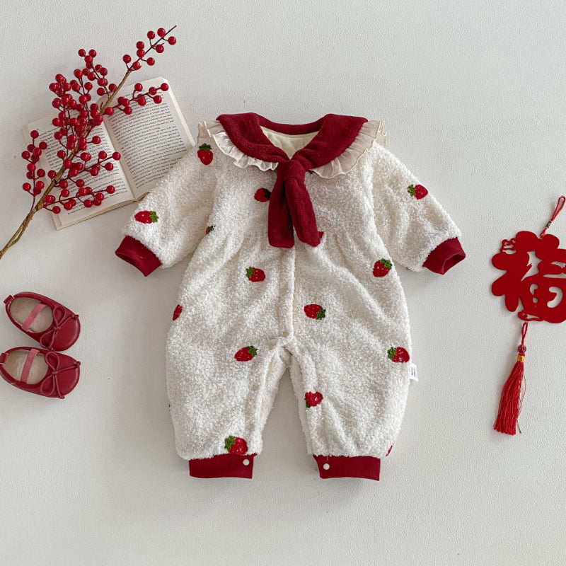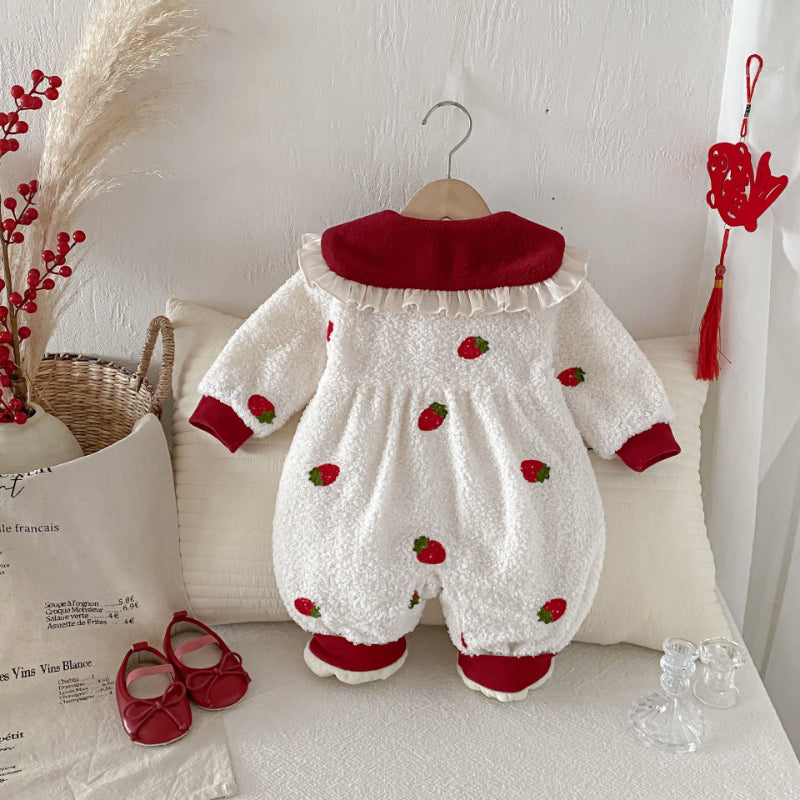 【BABY】冬新作いちご裏起毛カバーオールSK102709