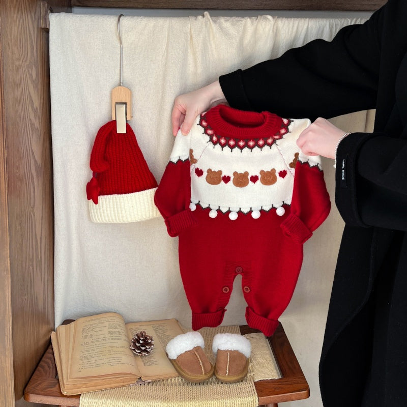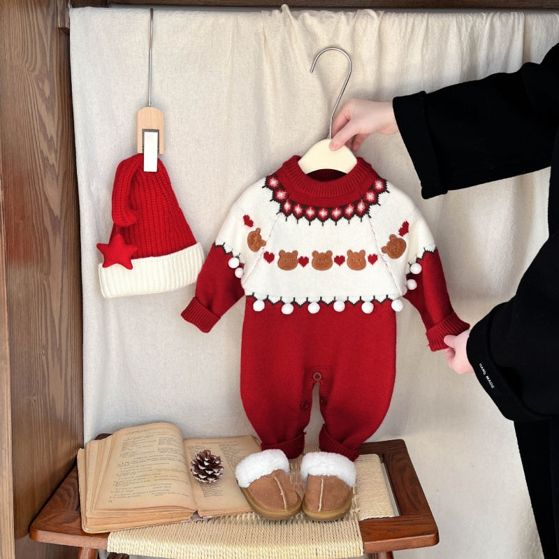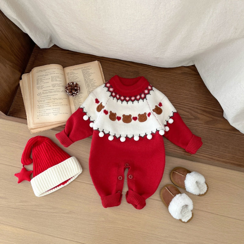 【BABY】冬新作くまハート柄ニットカバーオールSK103217