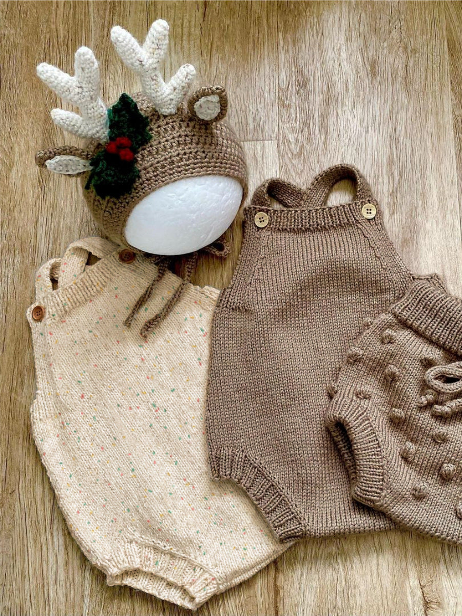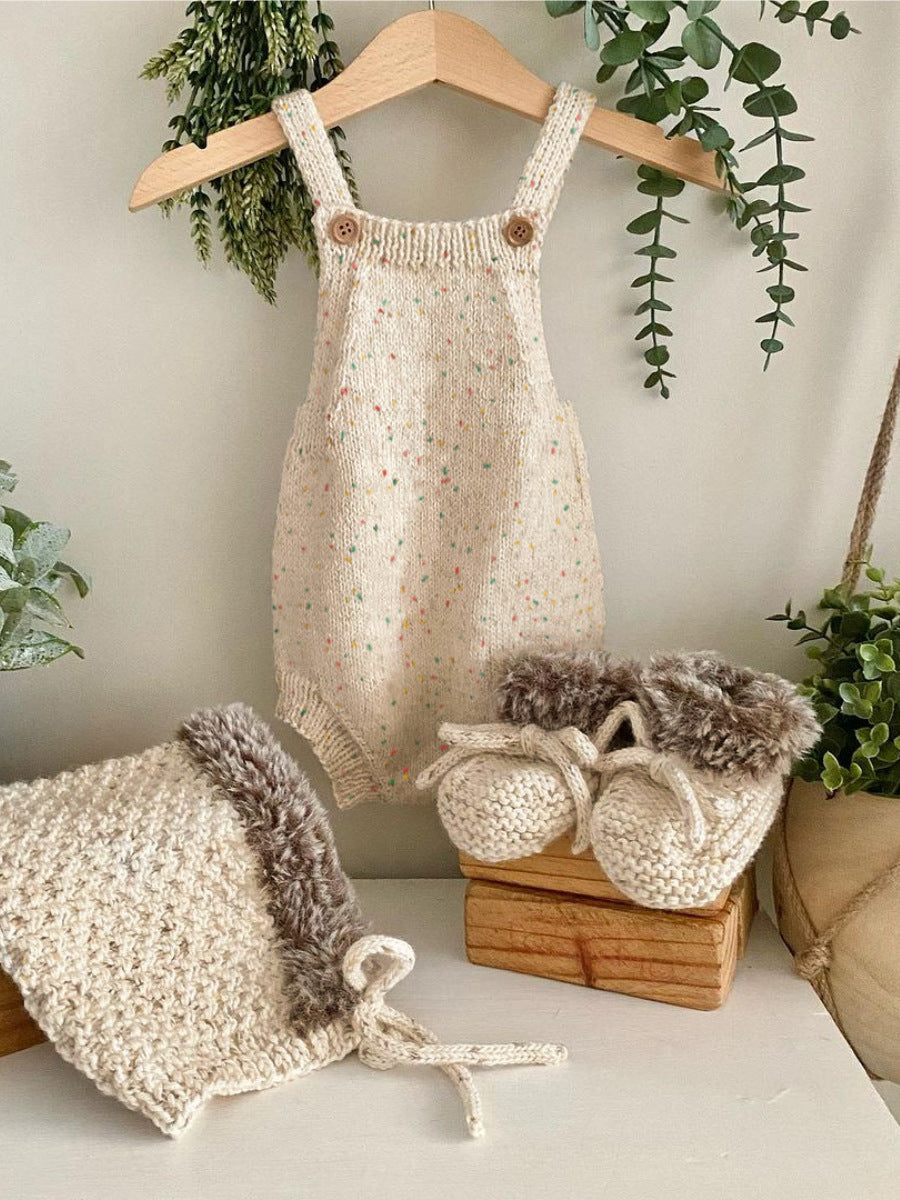 【BABY】冬新作オートミールカラードットガーターニットロンパースSK11314