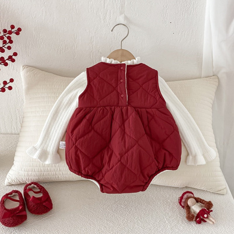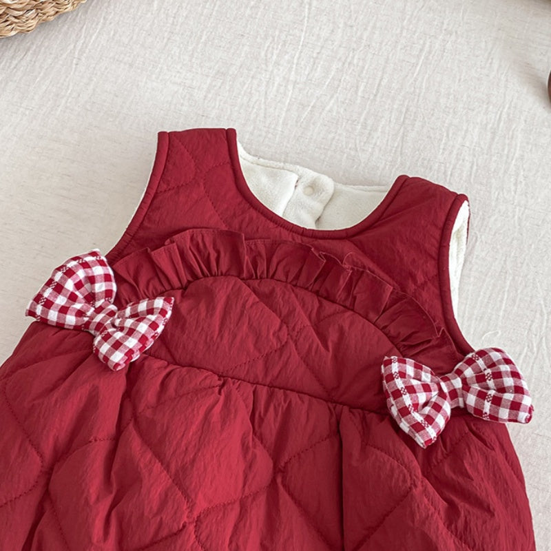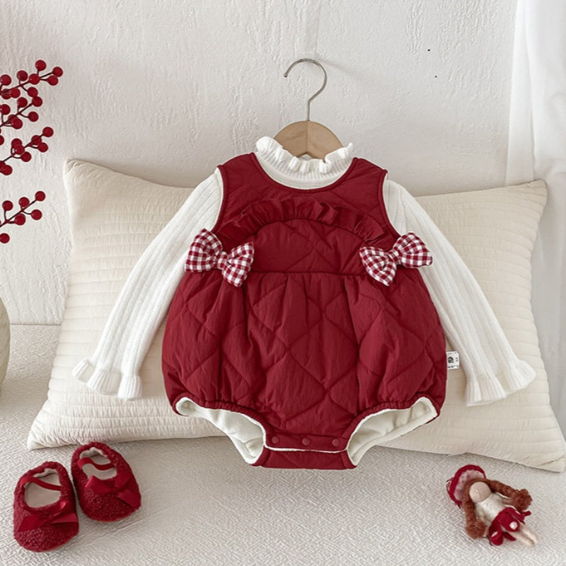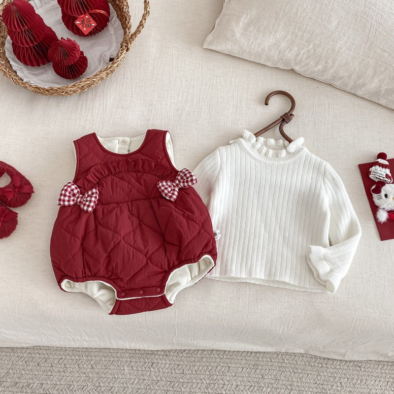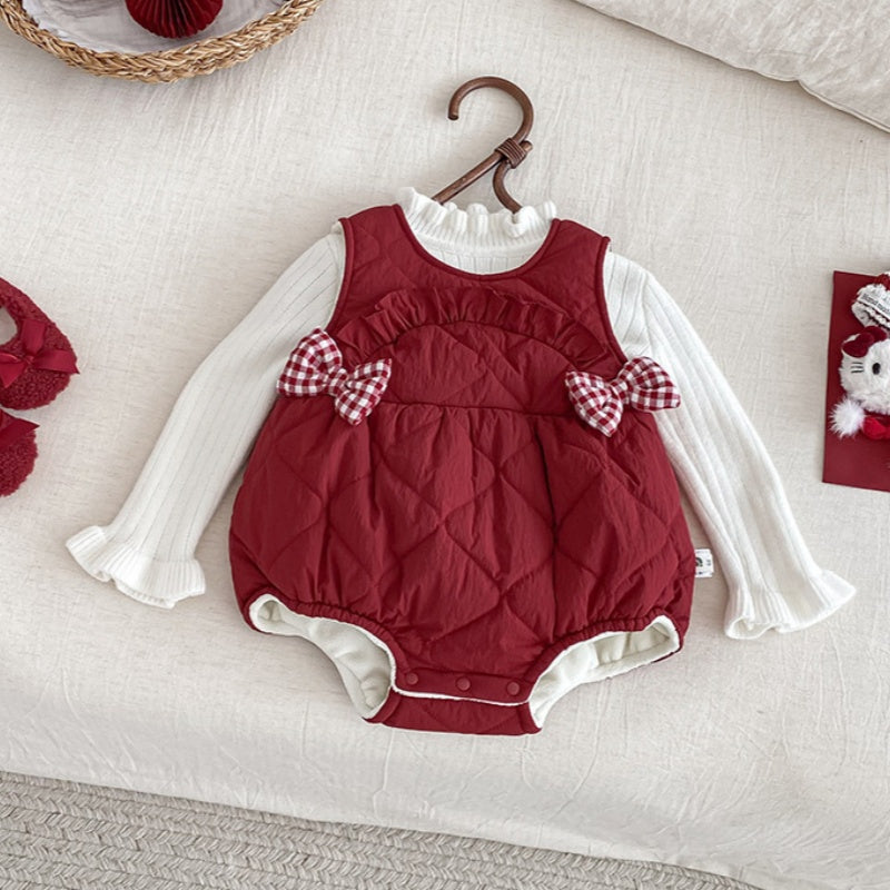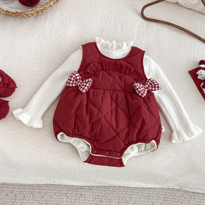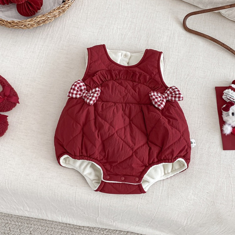 【BABY】冬新作キルティング蝶結びあったかロンパースSK103108