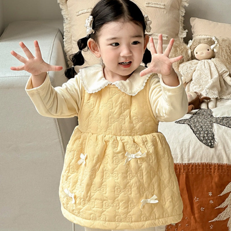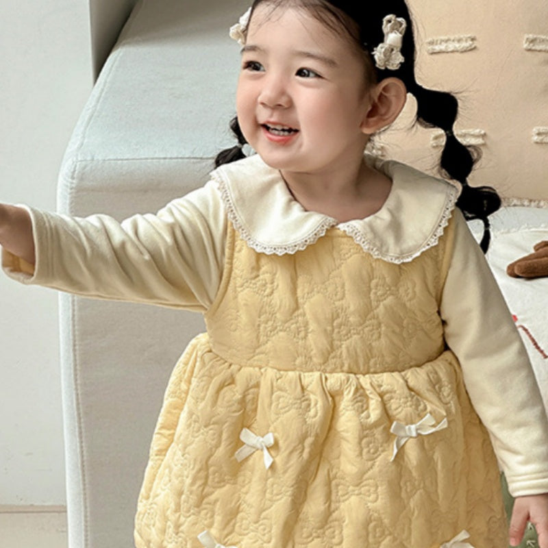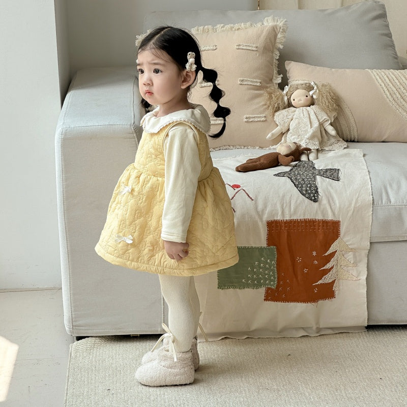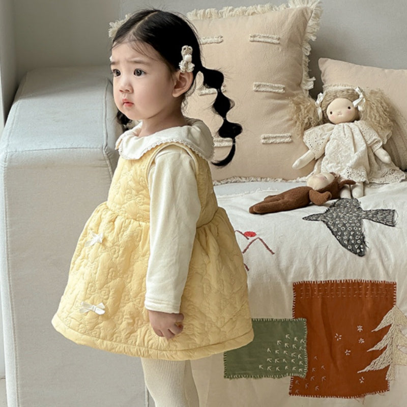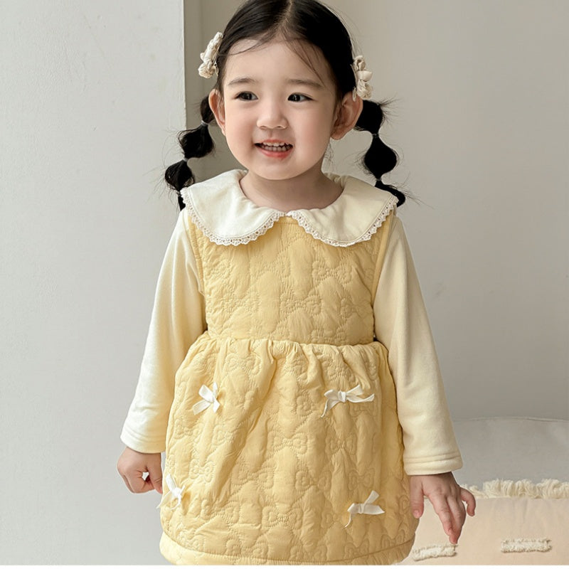 【BABY】冬新作キルティング蝶結びジャンパースカートSK103123