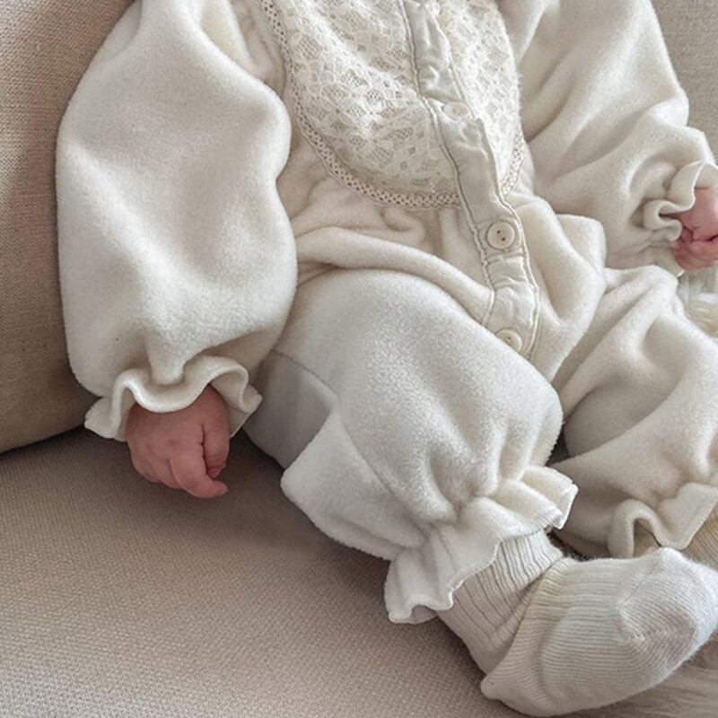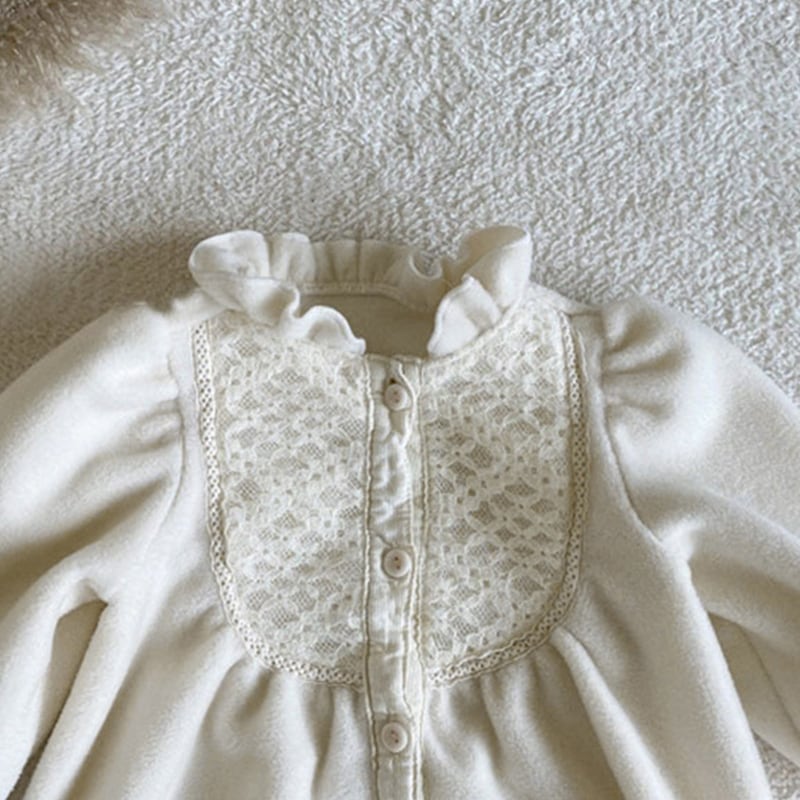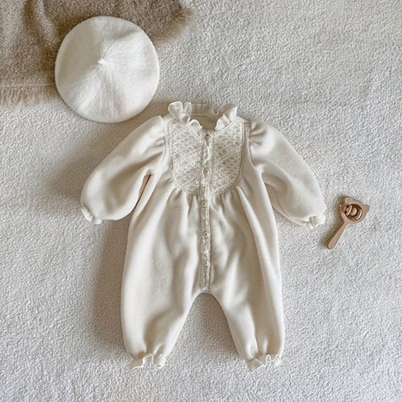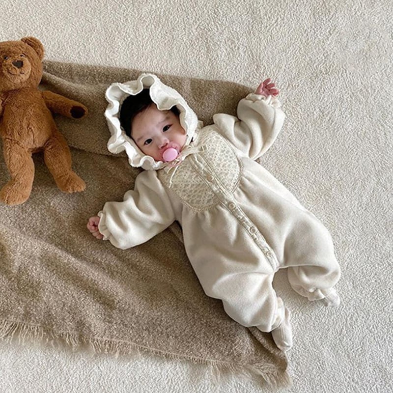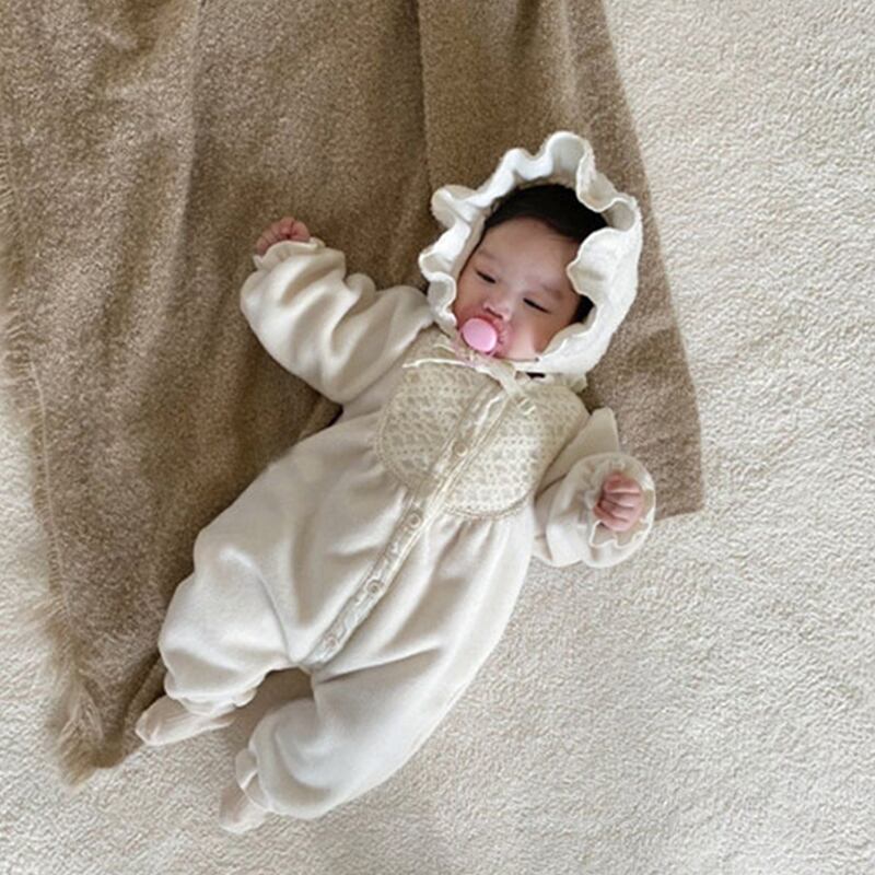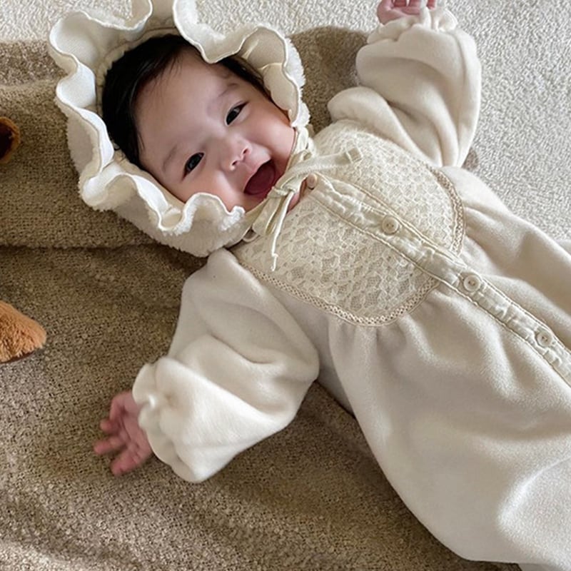 【BABY】冬新作ピュアカラーレースロンパース 帽子付きSK11390