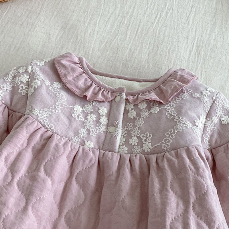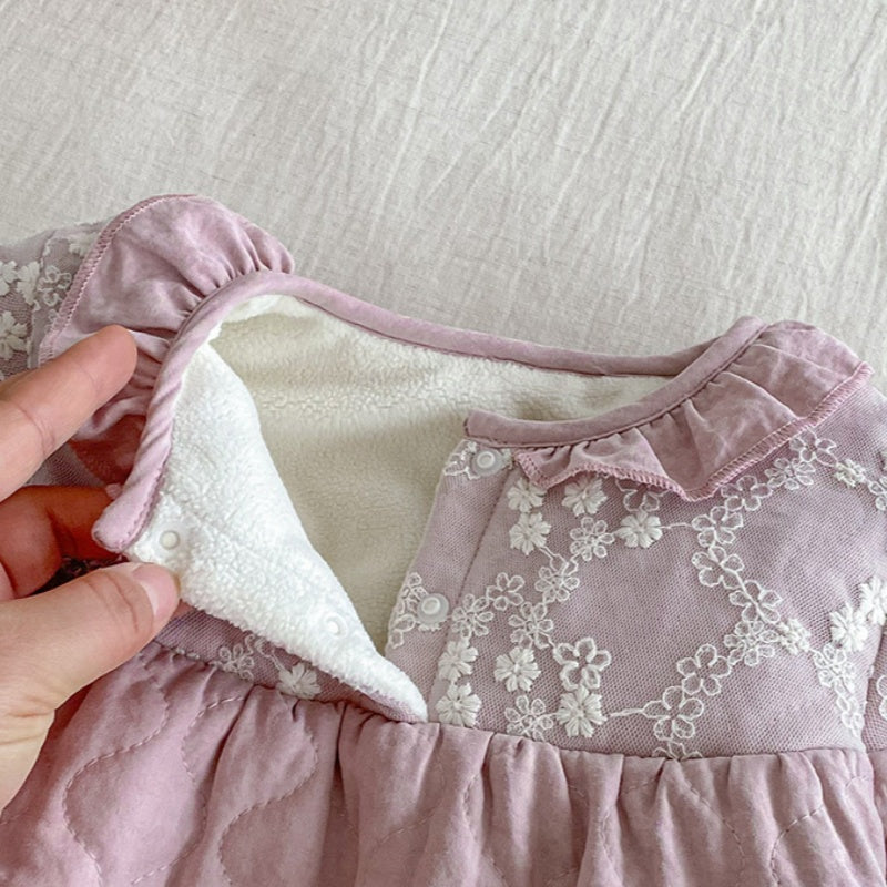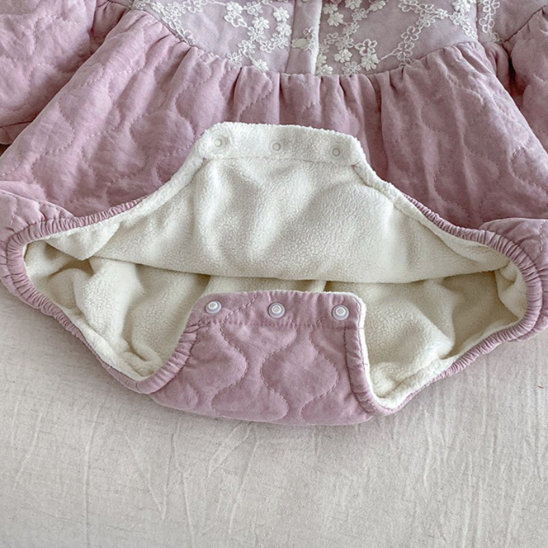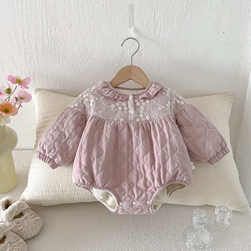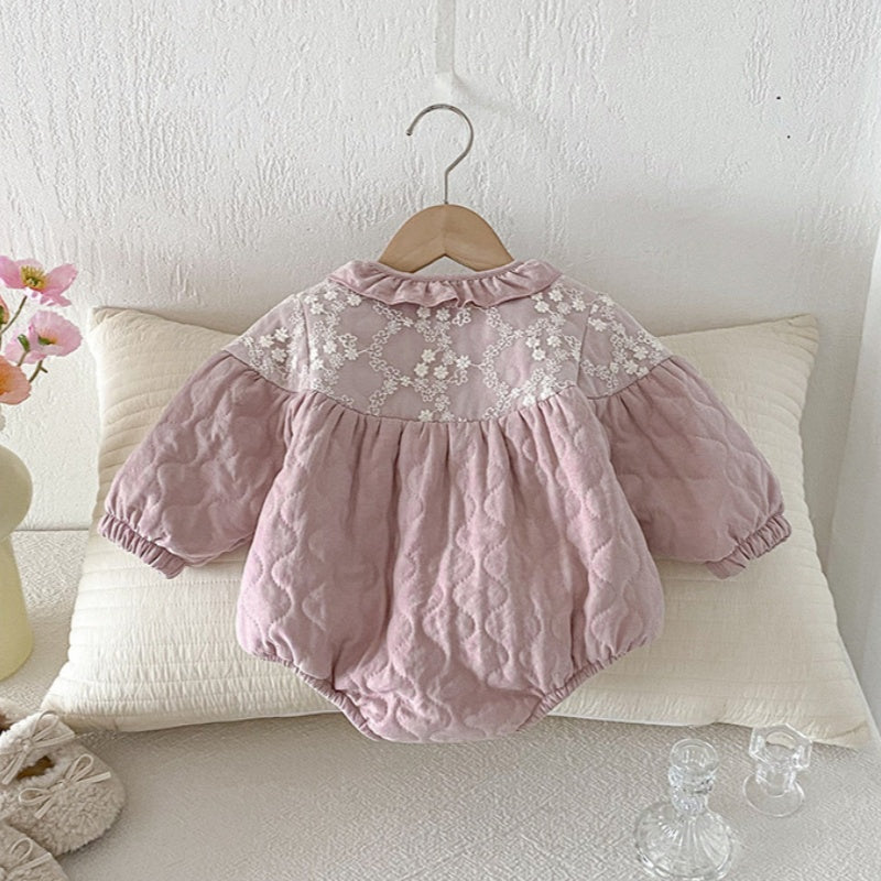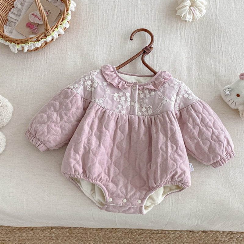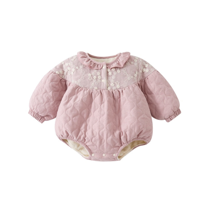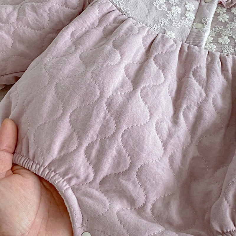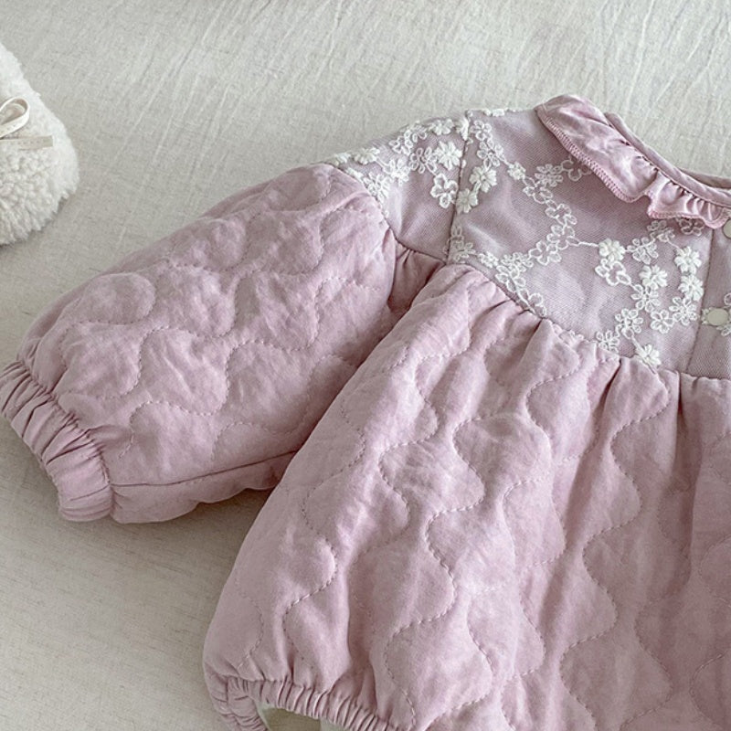 【BABY】冬新作フリル切り替えキルティング裏起毛カバーオールSK102719