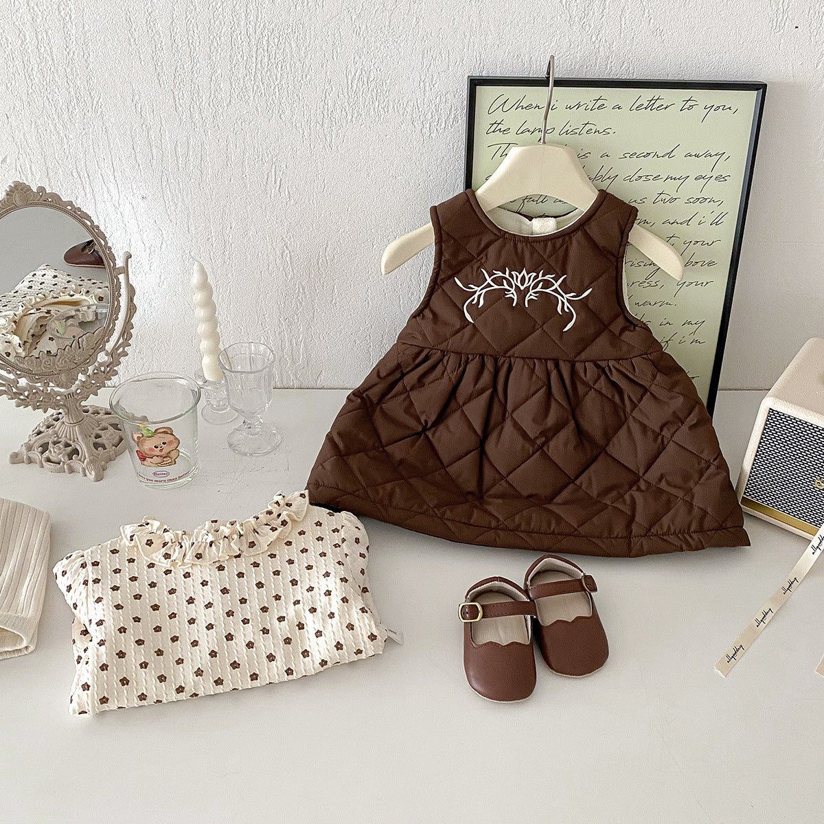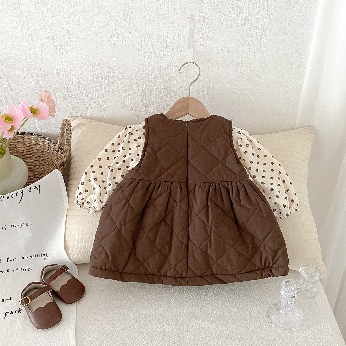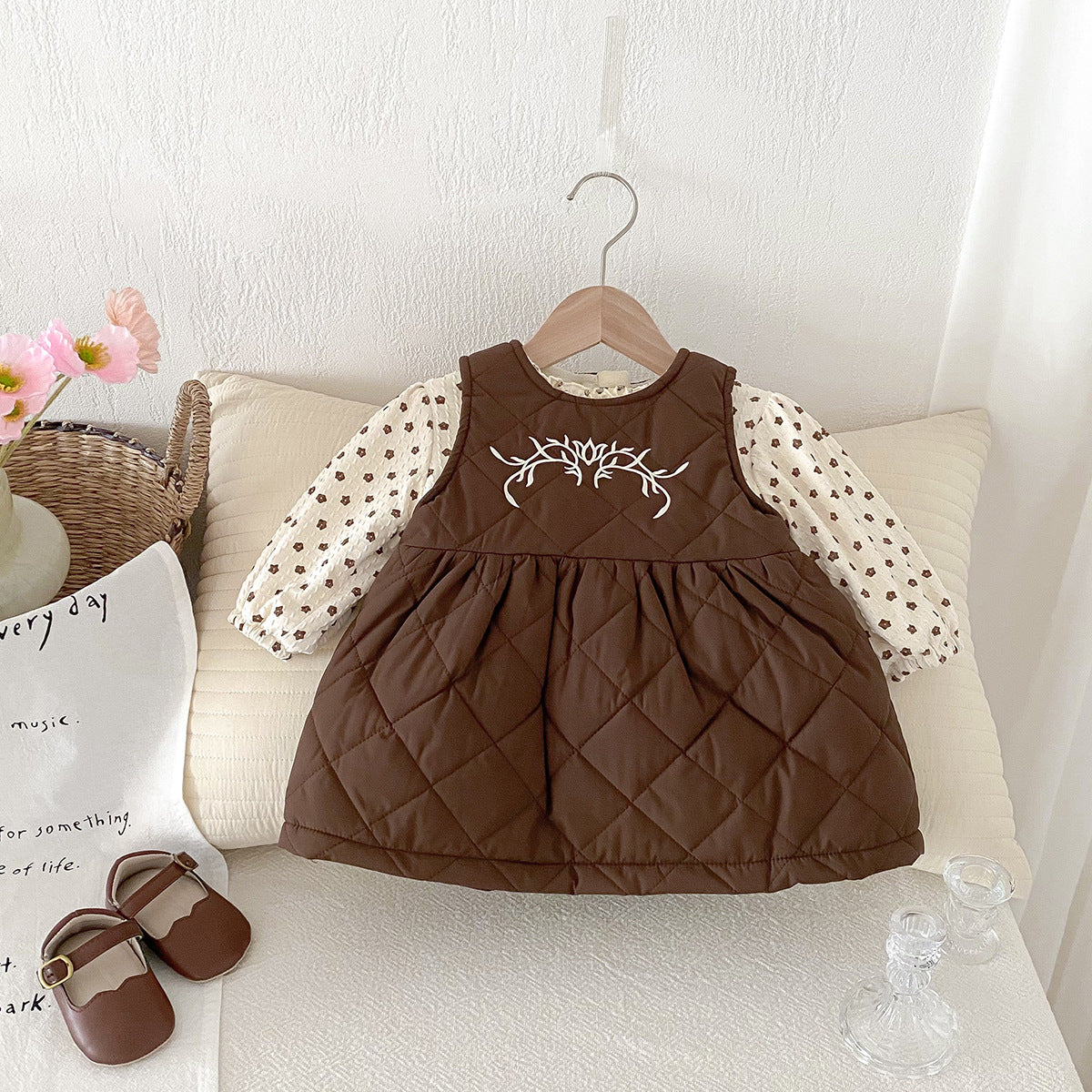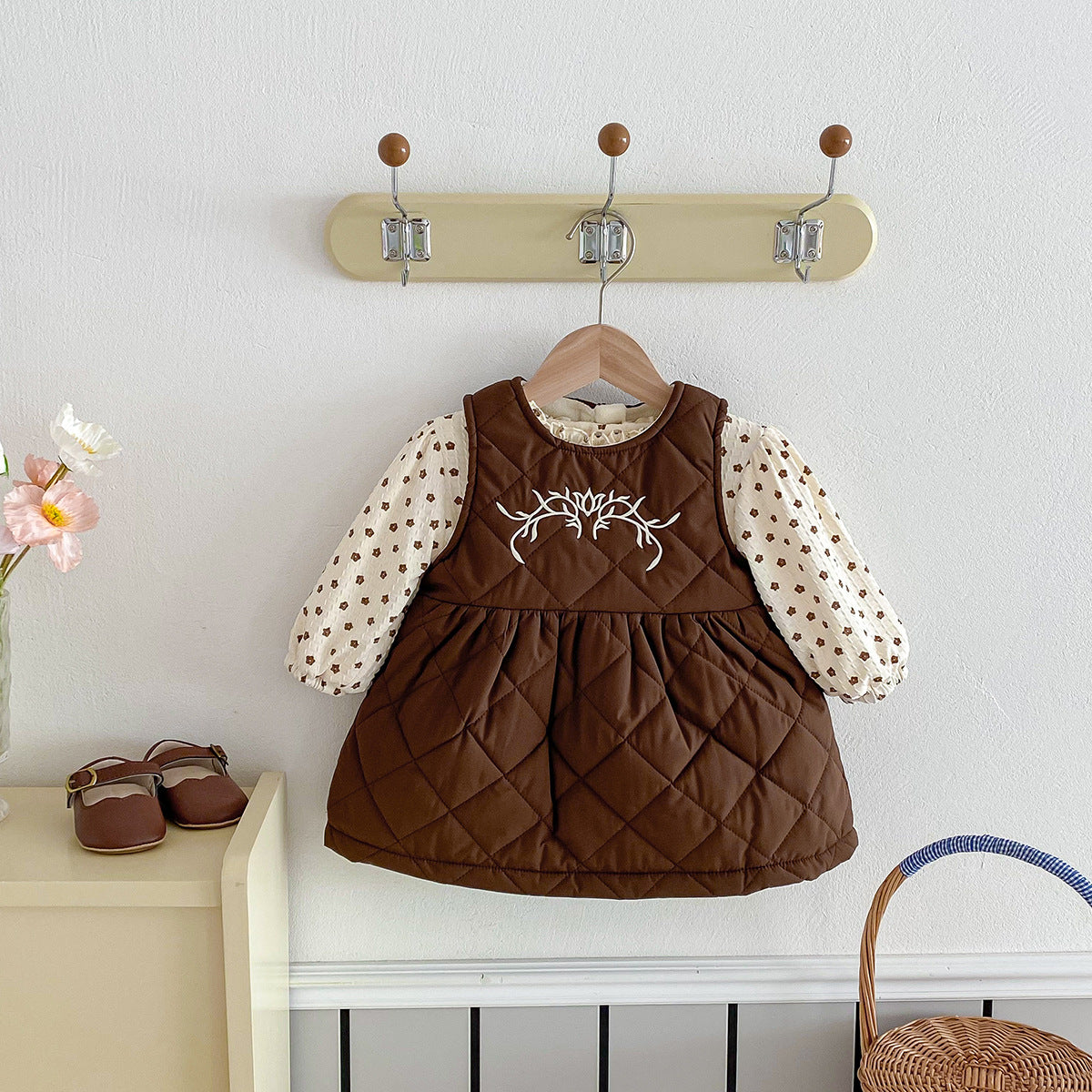 【BABY】冬新作ベルベットの花柄プリンセスドレス2点セットSK11422