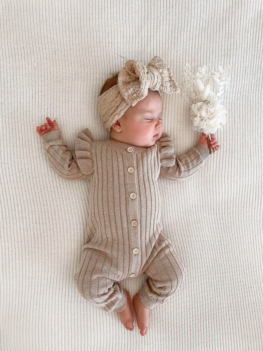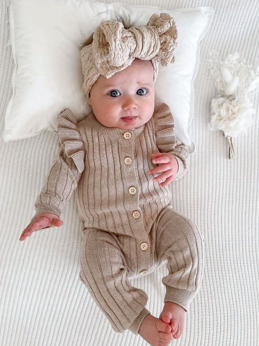 【BABY】冬新作ボタン付きロングロンパースSK11315