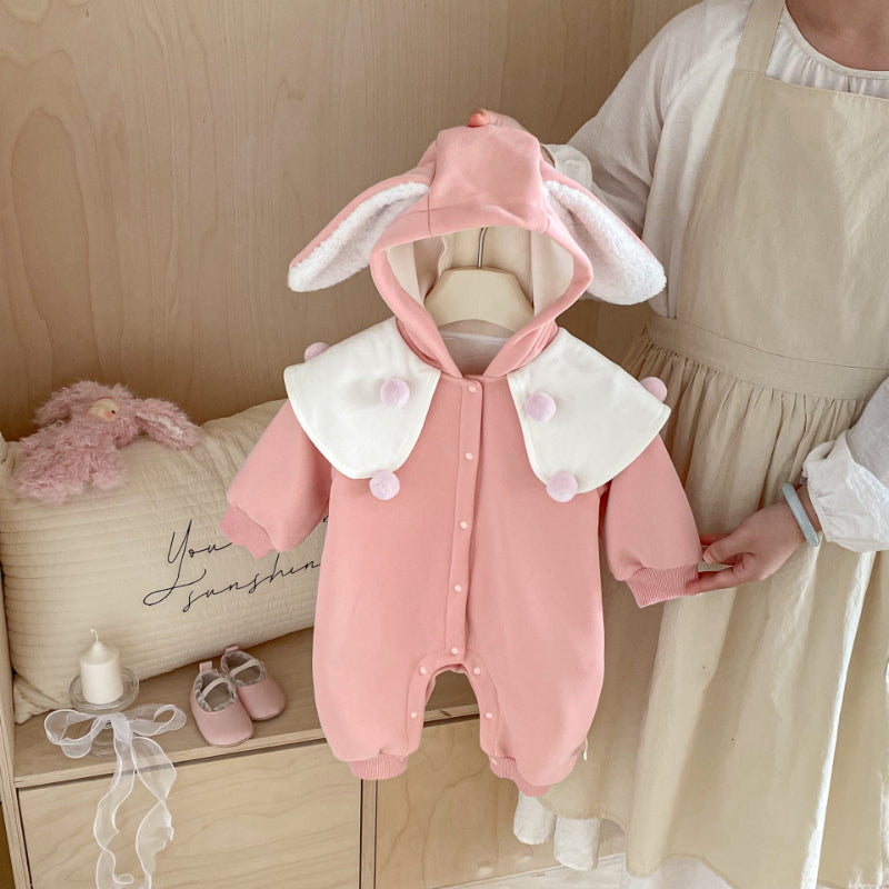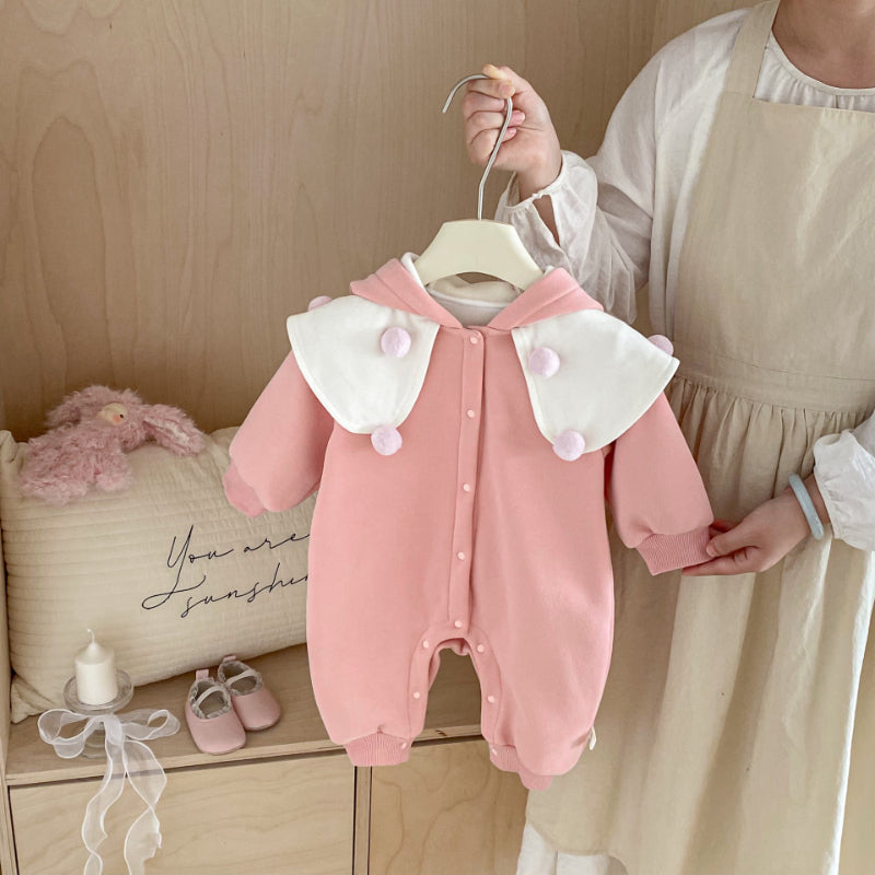 【BABY】冬新作ポンポン付きフードカバーオールSK102505